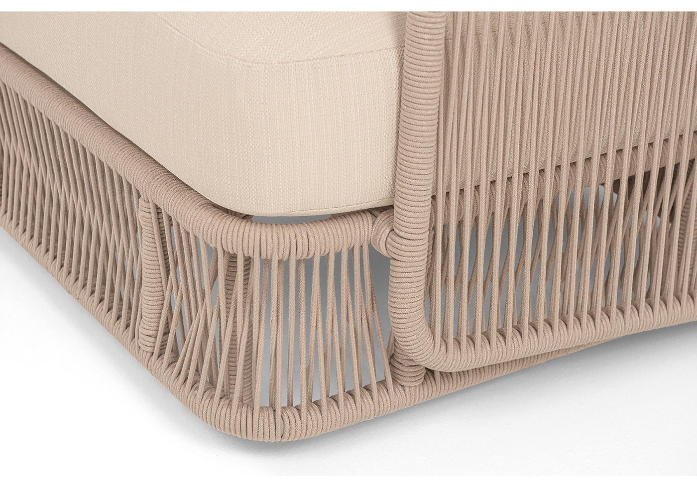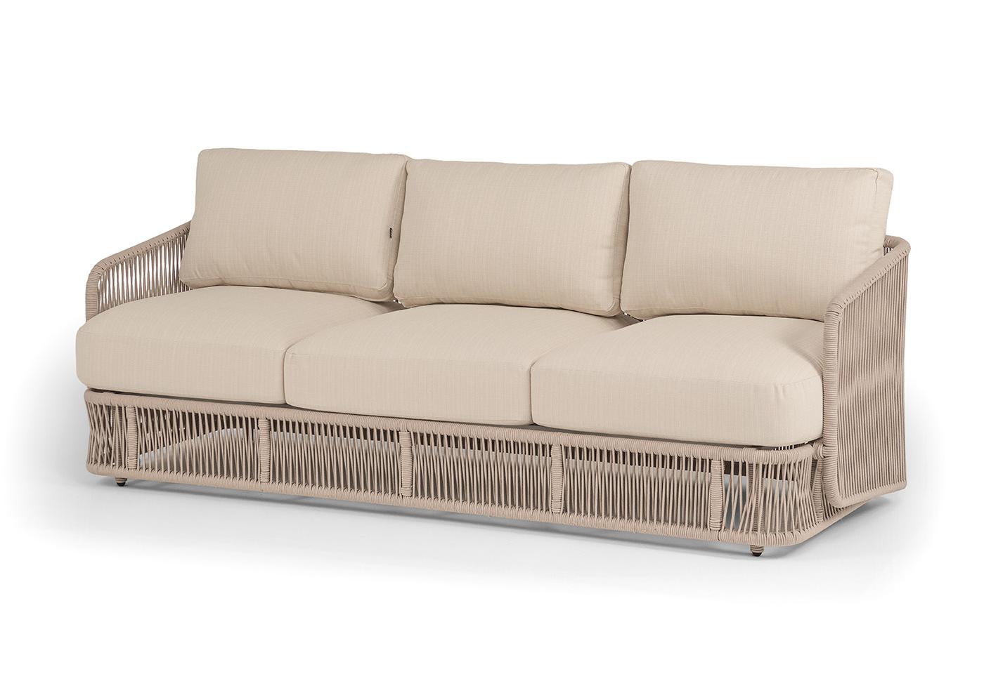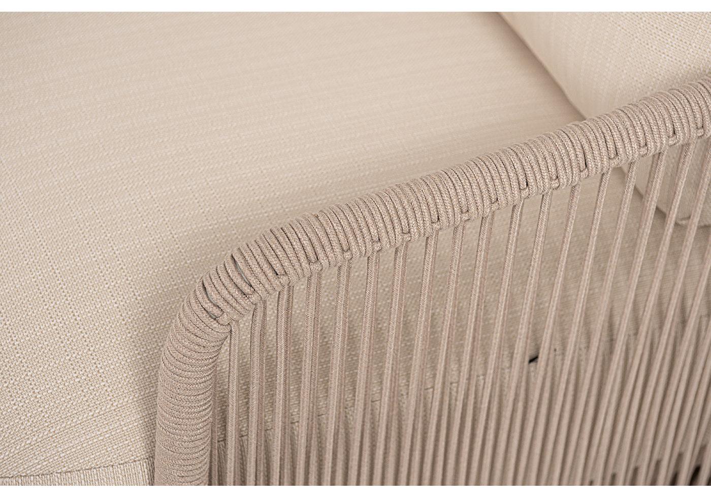 "Альбано" диван 3-местный плетеный из роупа, каркас алюминий светло-серый (RAL7035) муар, роуп бежевый круглый, ткань Mossle светло-бежевая