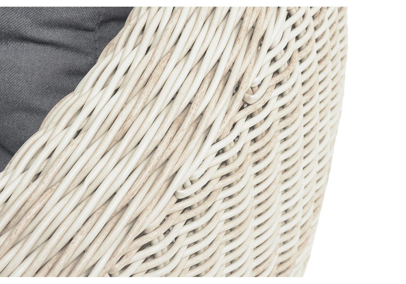 Для оплетки каркаса используется высококачественный искусственный ротанг. Мебель выполнена в бежевом цвете.