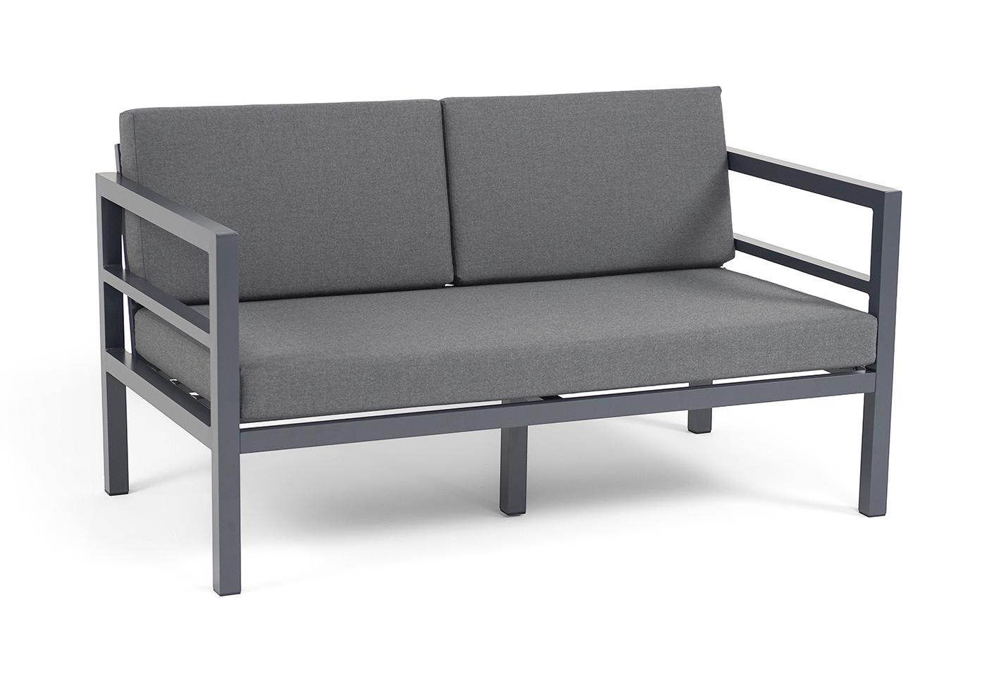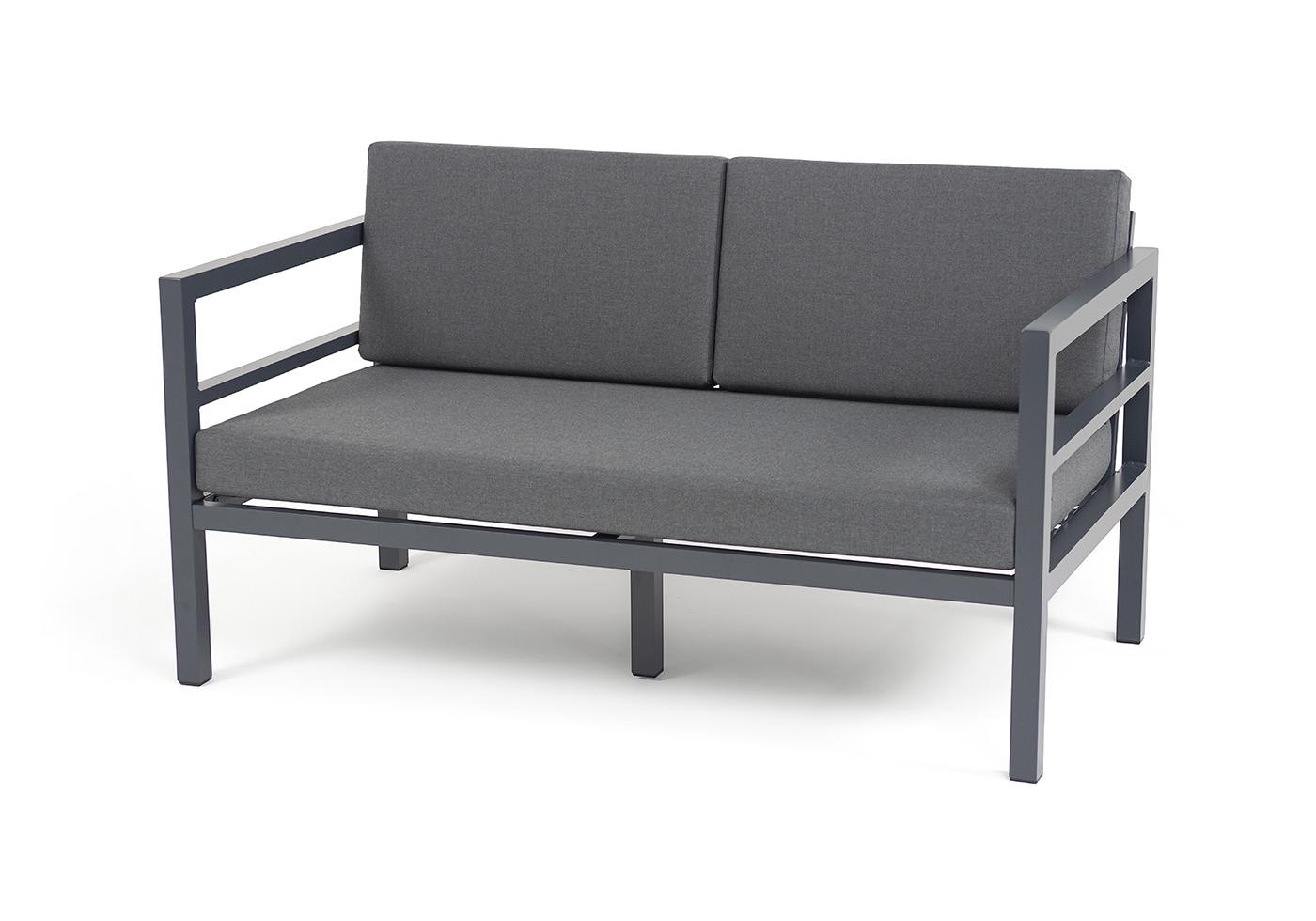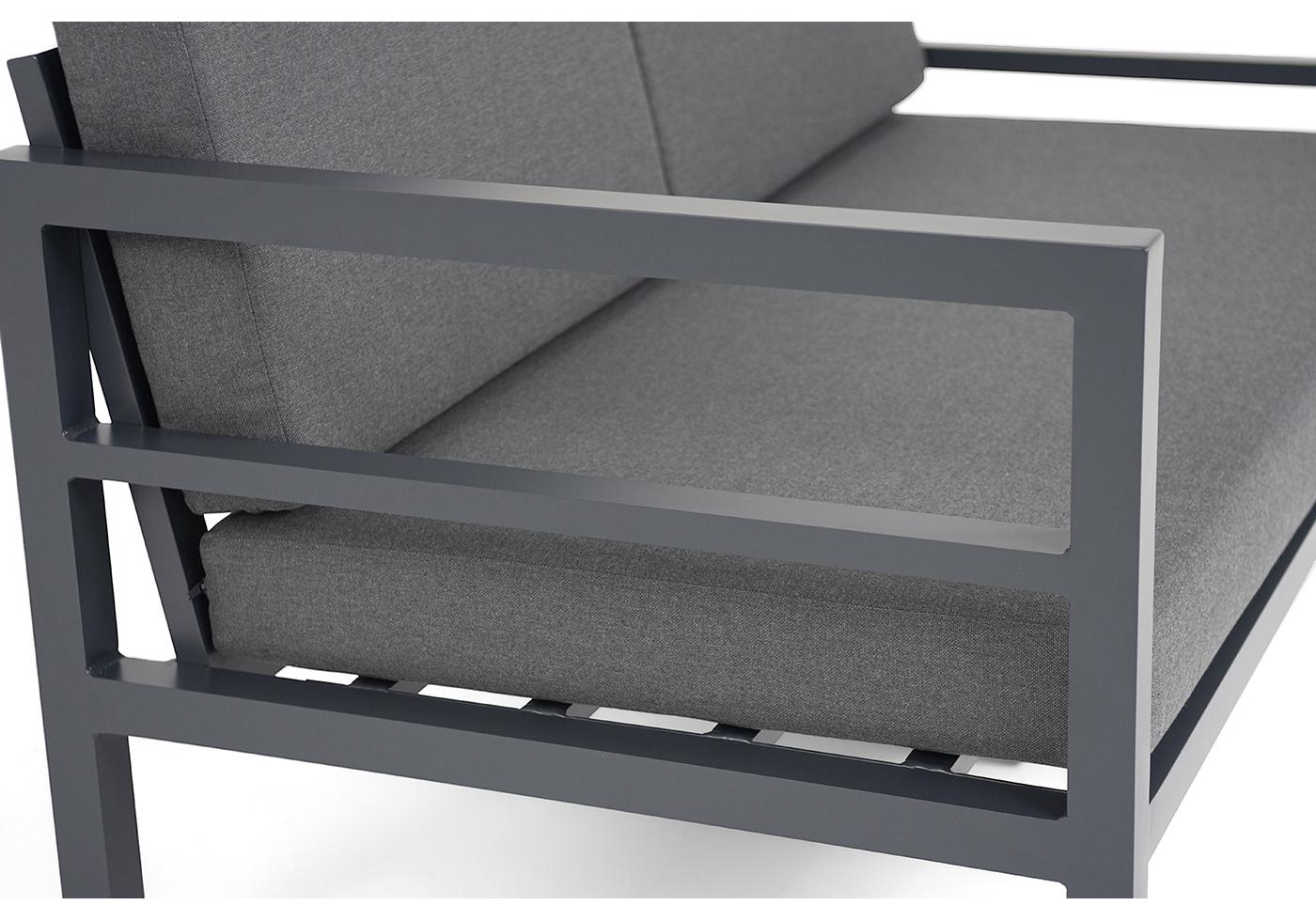 "Эстелья" диван 2-местный, каркас алюминий темно-серый (RAL7024) муар, ткань темно-серая 027