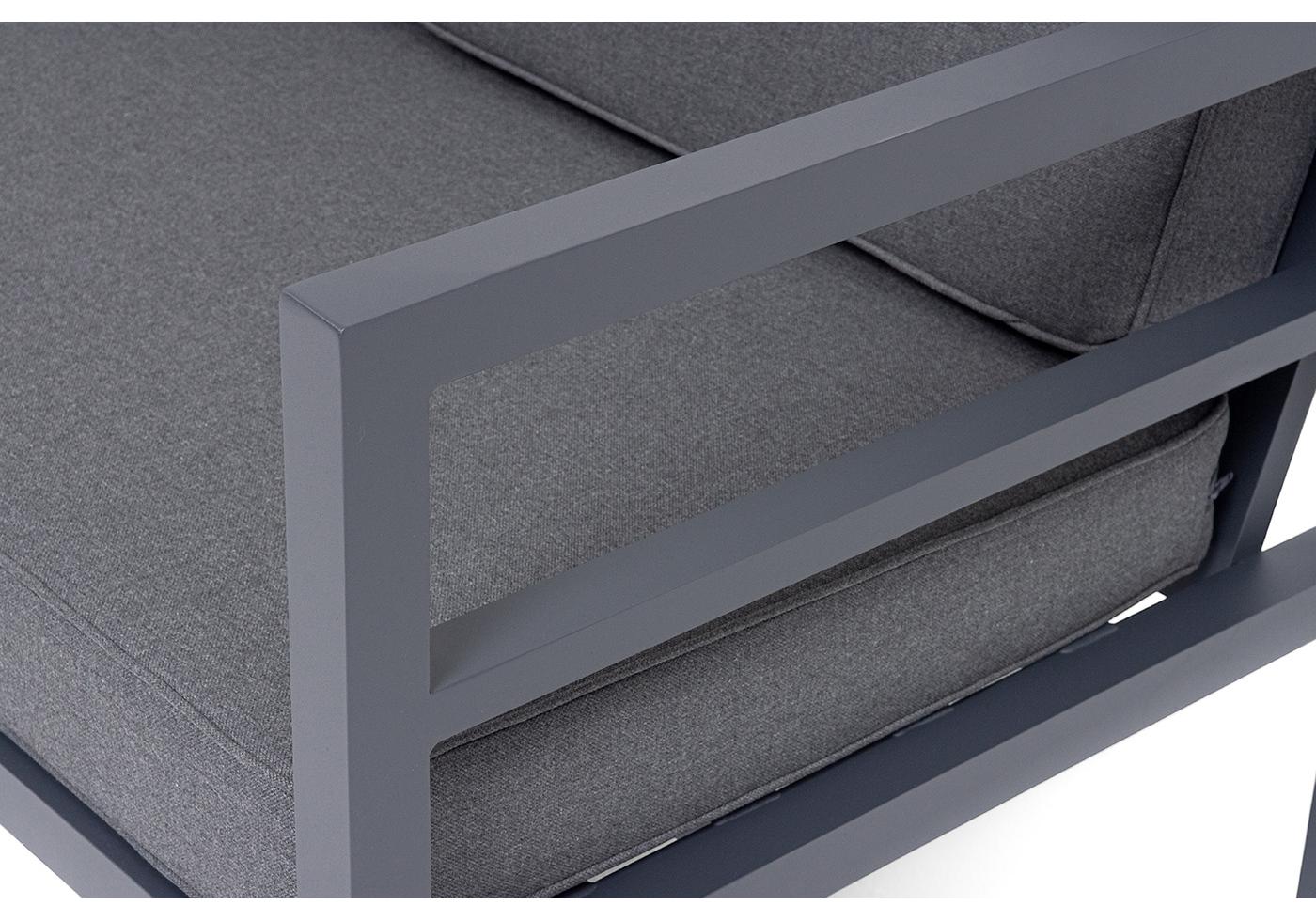 "Эстелья" диван 3-местный, каркас алюминий темно-серый (RAL7024) муар, ткань темно-серая 027