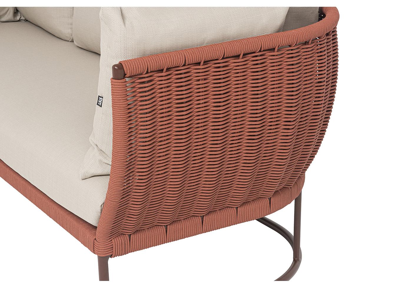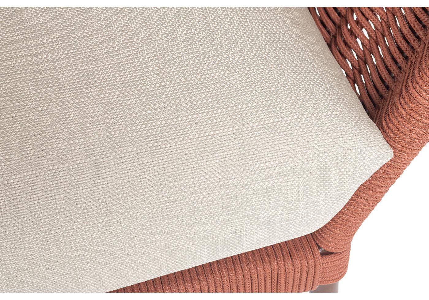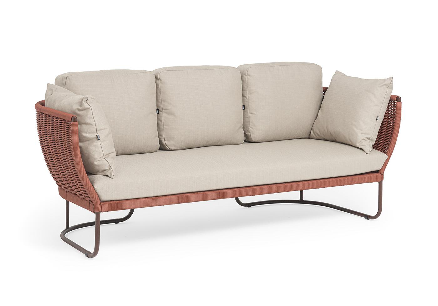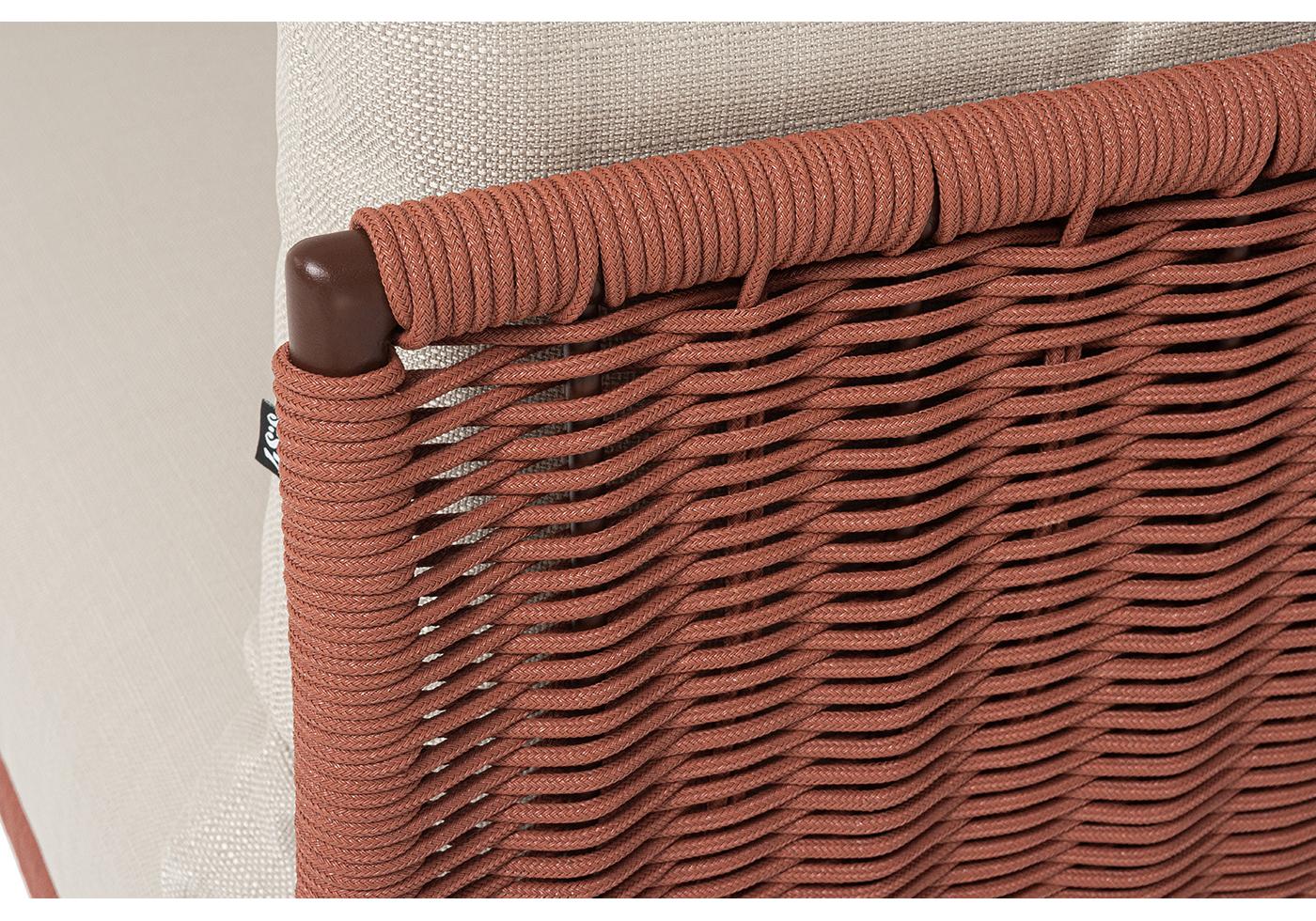 "Фиджи" диван 3-местный плетеный из роупа, каркас алюминий коричневый (RAL8016) муар, роуп красный (8372) круглый tex, ткань Mossle бежевая