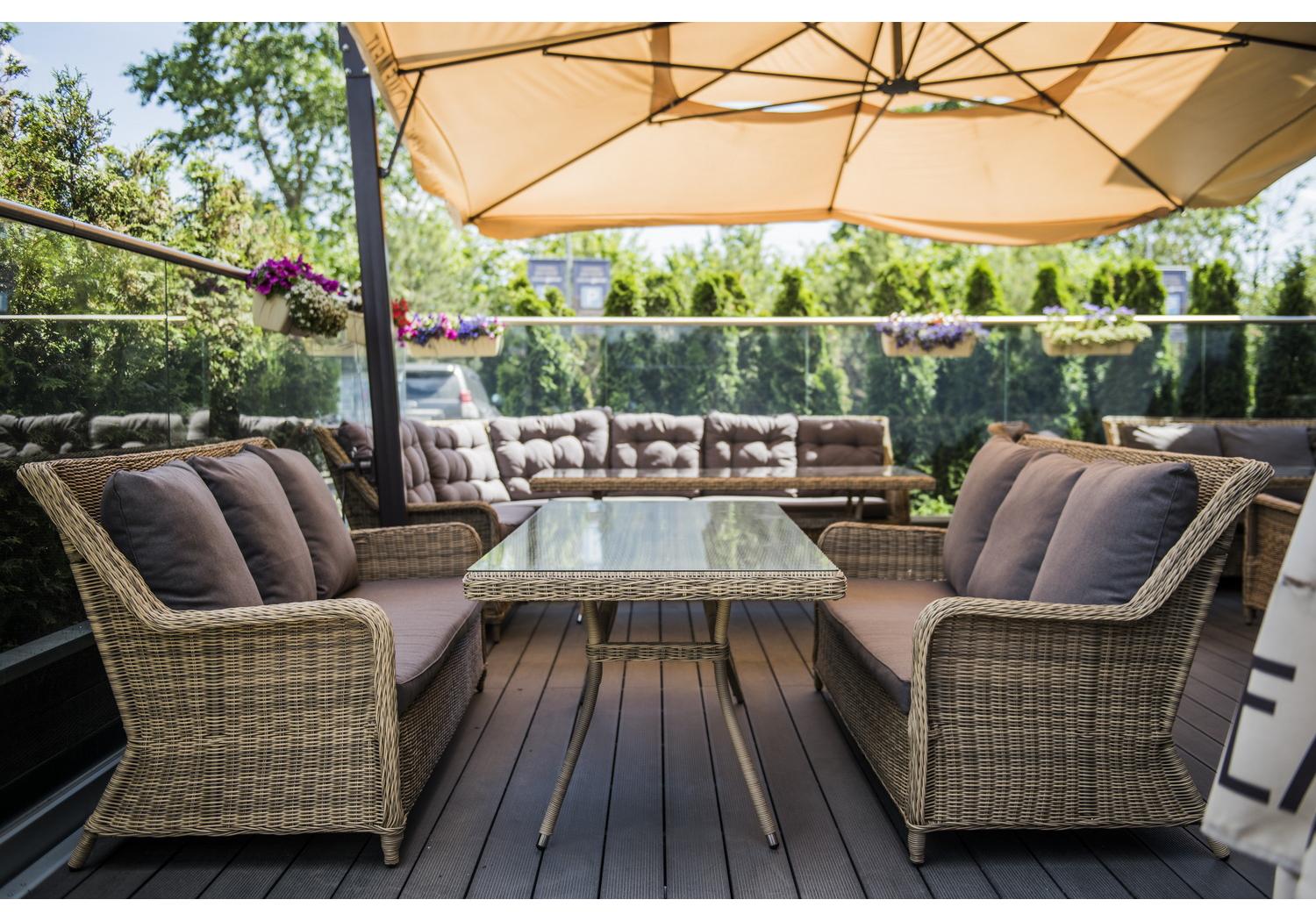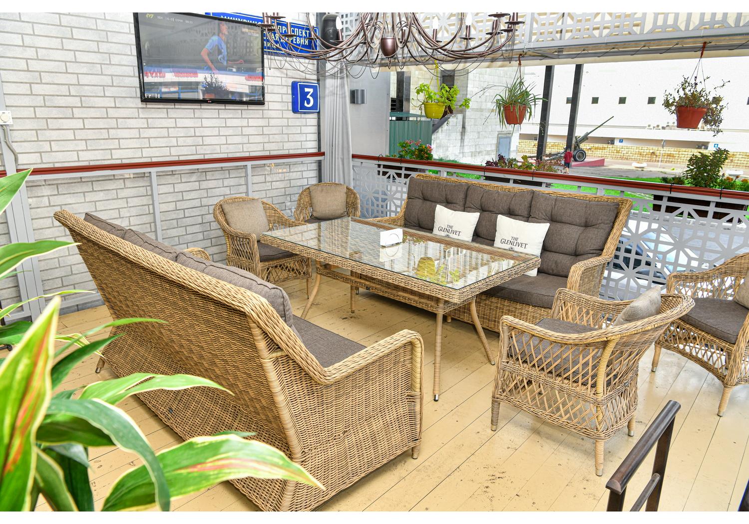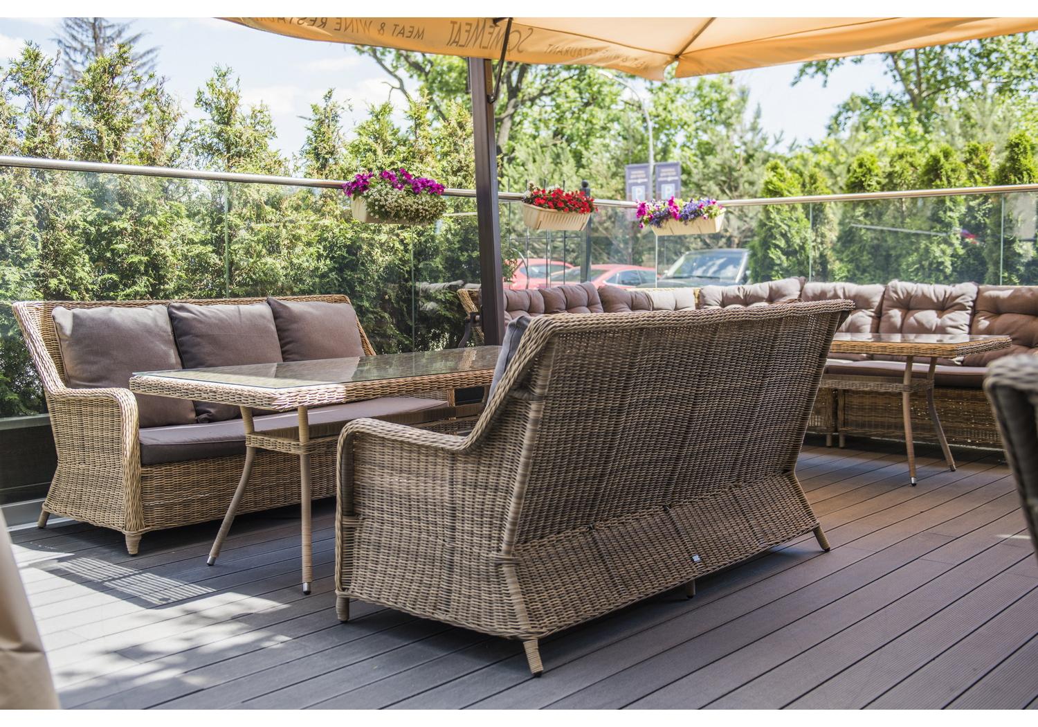 Диван «Гляссе» подходит для размещения сразу трех персон. Его основа из прочного алюминиевого каркаса. Размер модели – 1900×880×990 мм.
