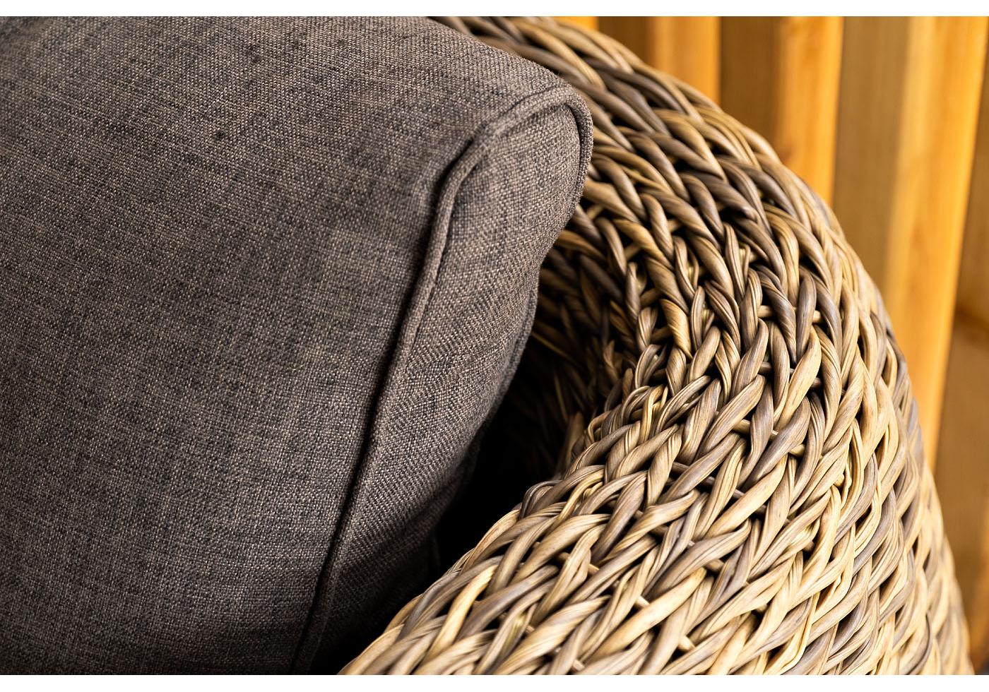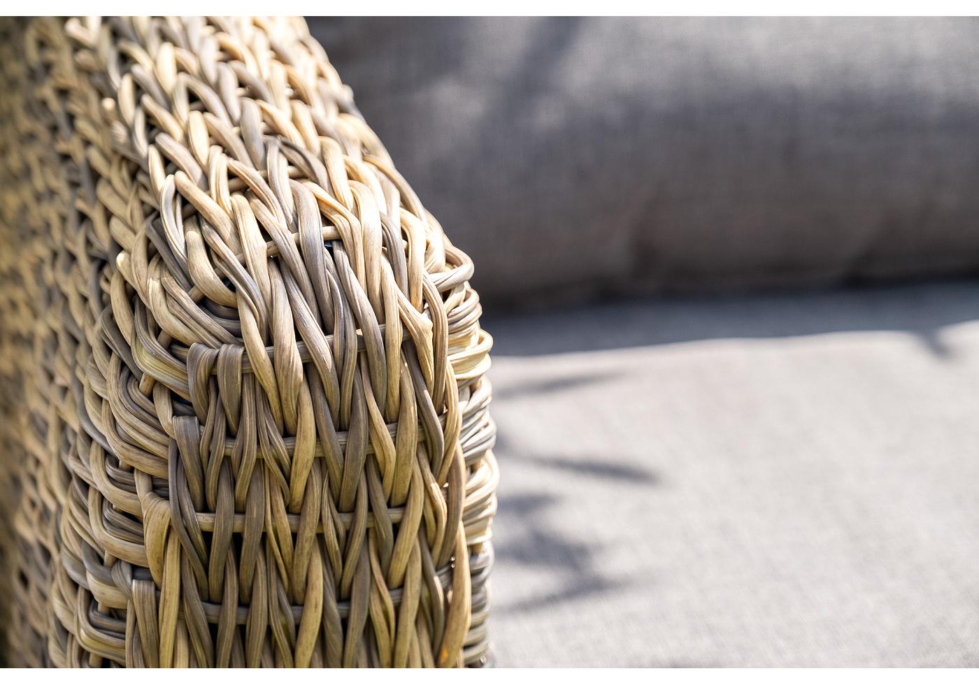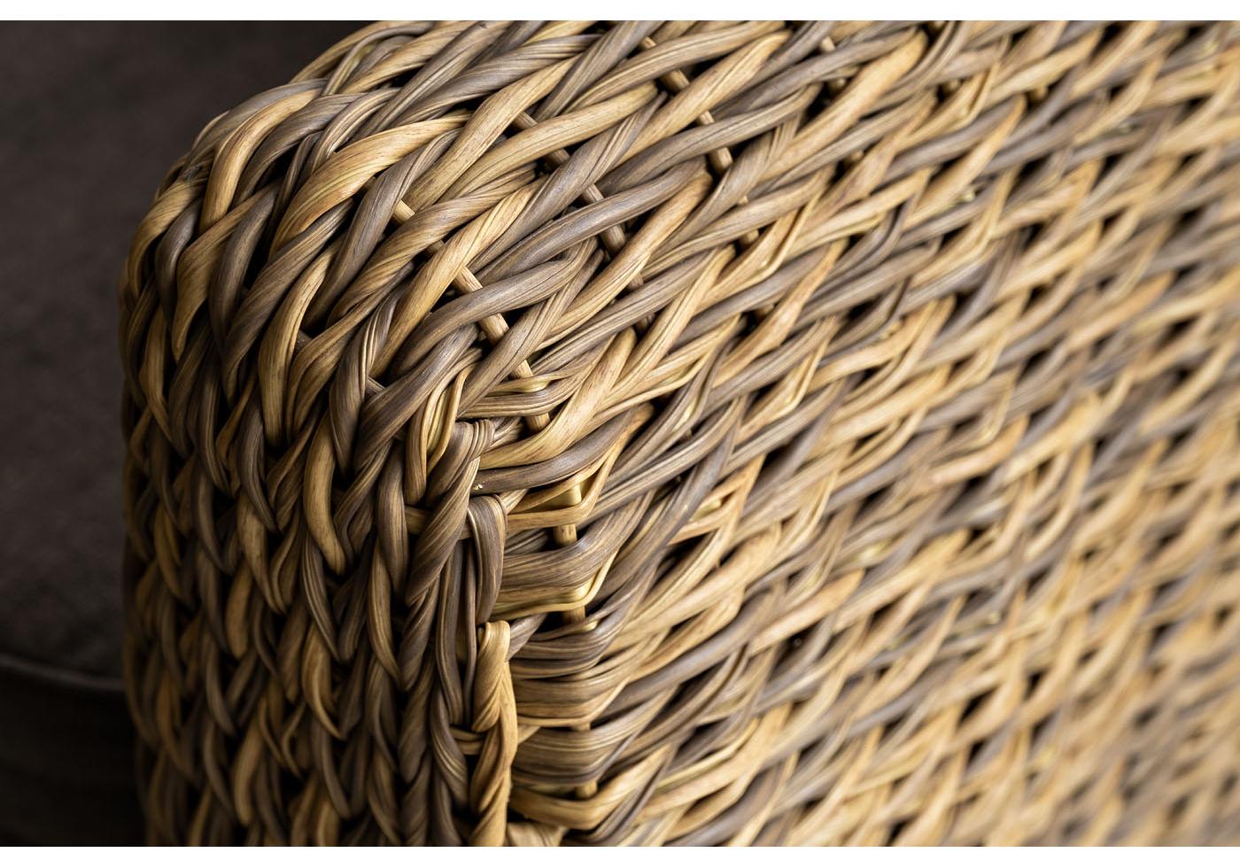 Ручное круглое плетение является основным декоративным элементом мебели. Оно выполнено из искусственного ротанга вида «гиацинт» в соломенном цвете.