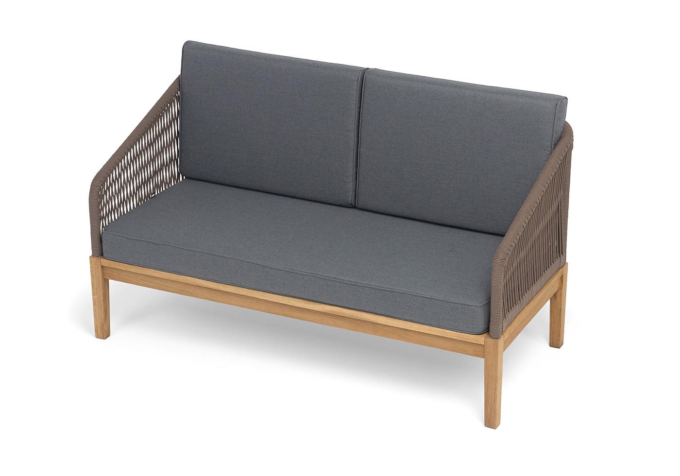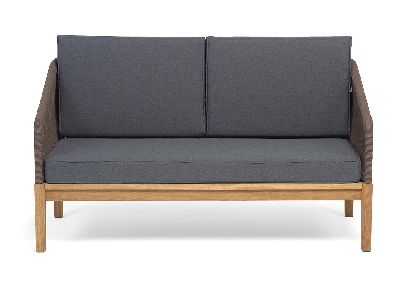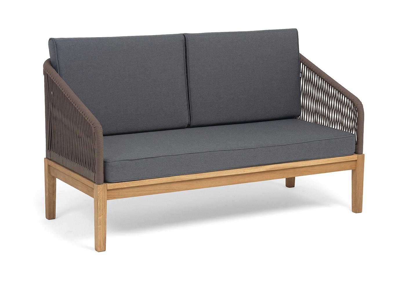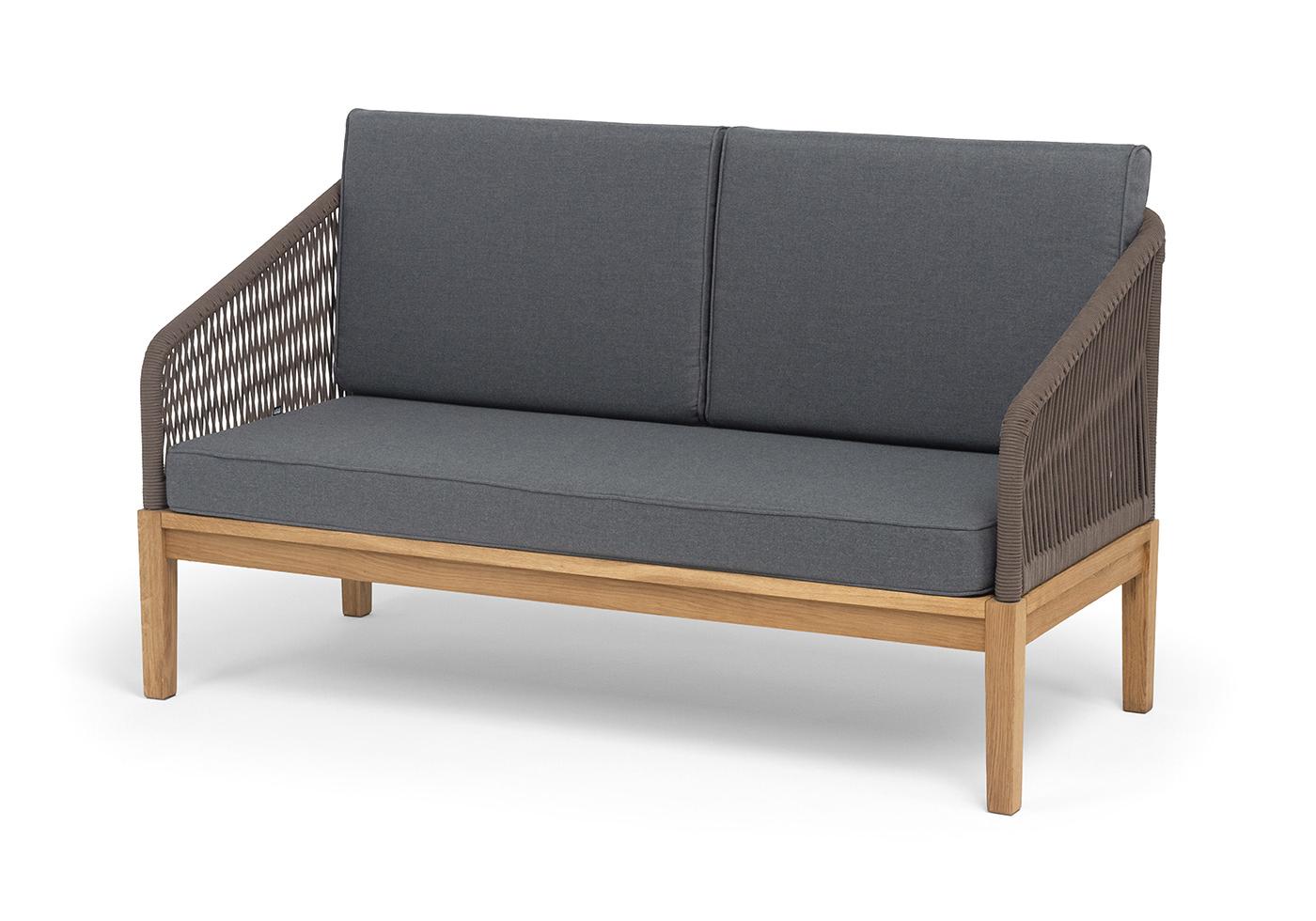 "Канны" диван 2-местный плетеный из роупа, основание дуб, роуп коричневый круглый, ткань темно-серая 027 NEW