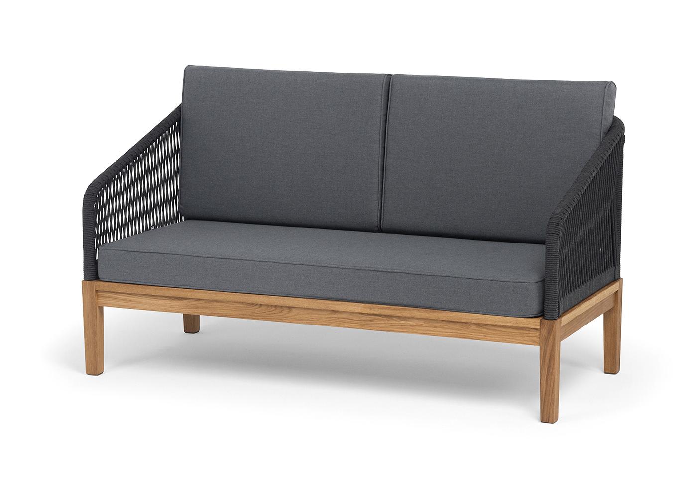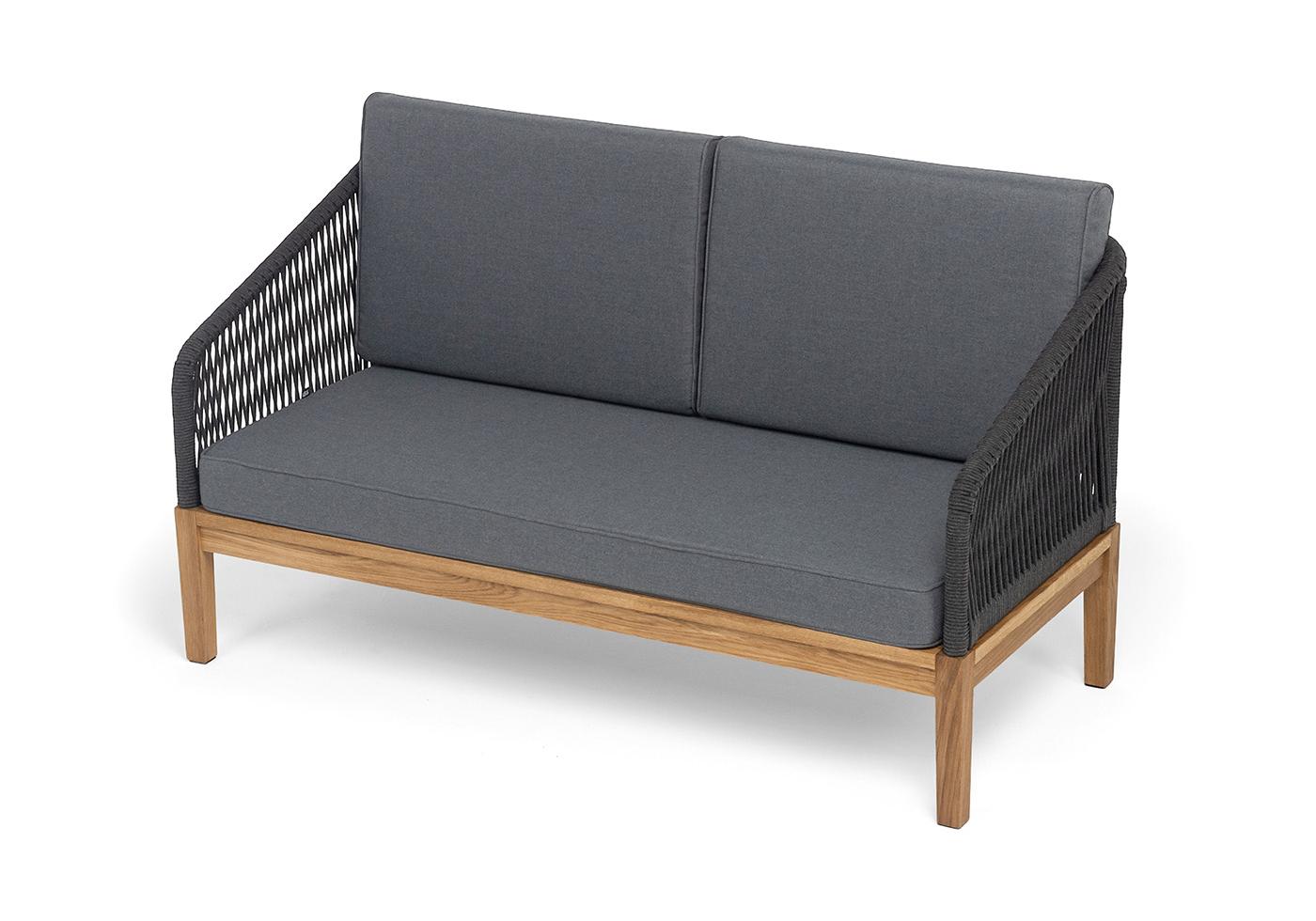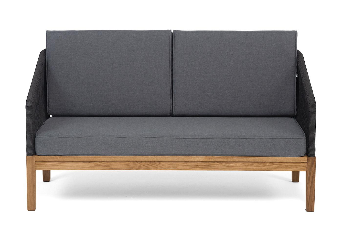 "Канны" диван 2-местный плетеный из роупа, основание дуб, роуп темно-серый круглый, ткань темно-серая 027