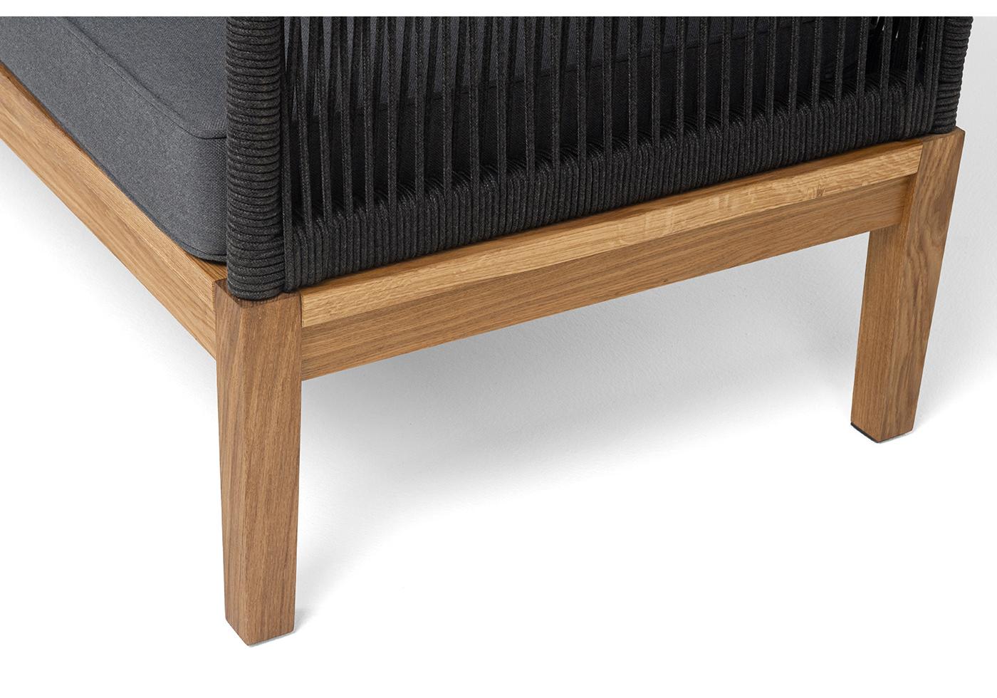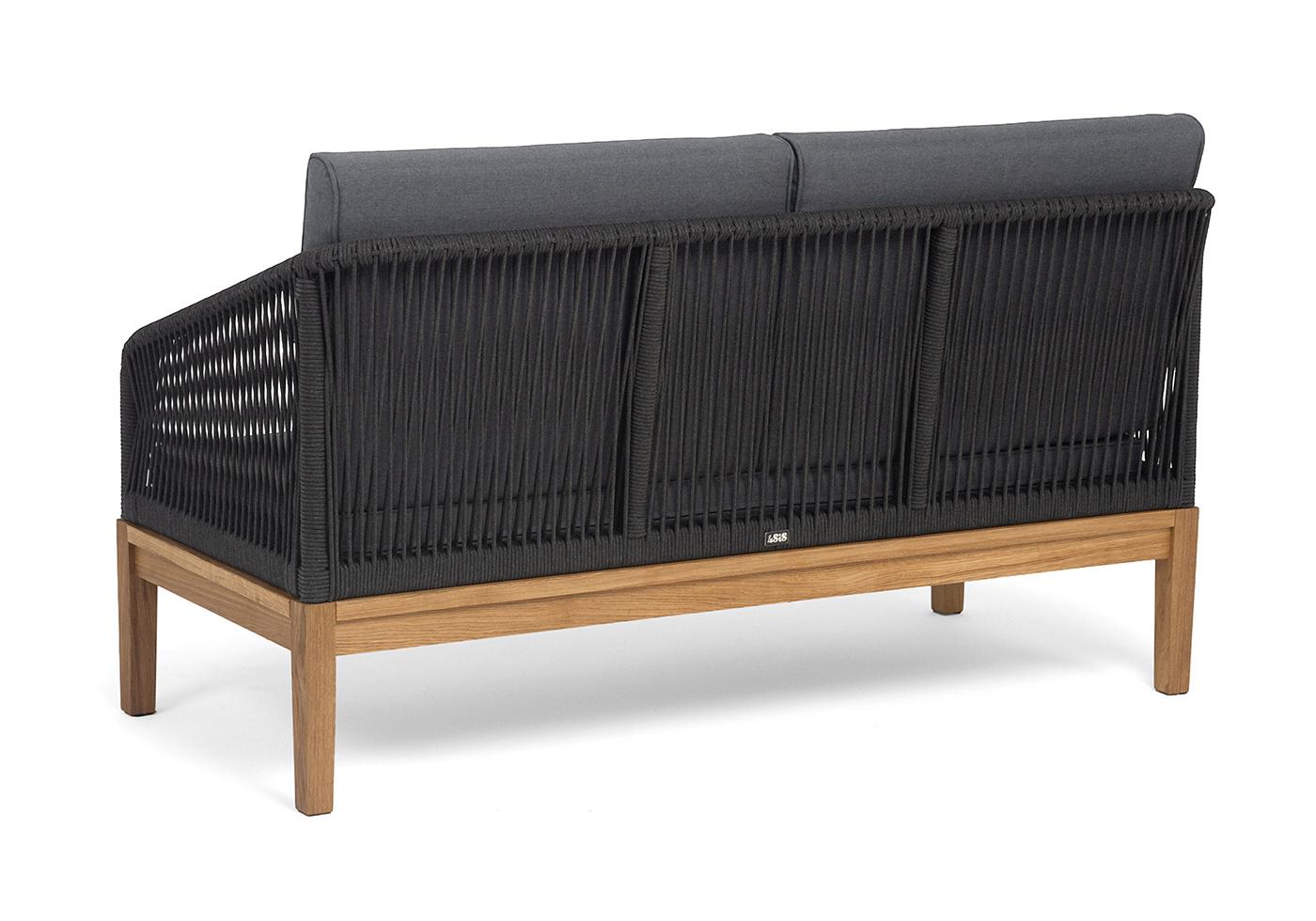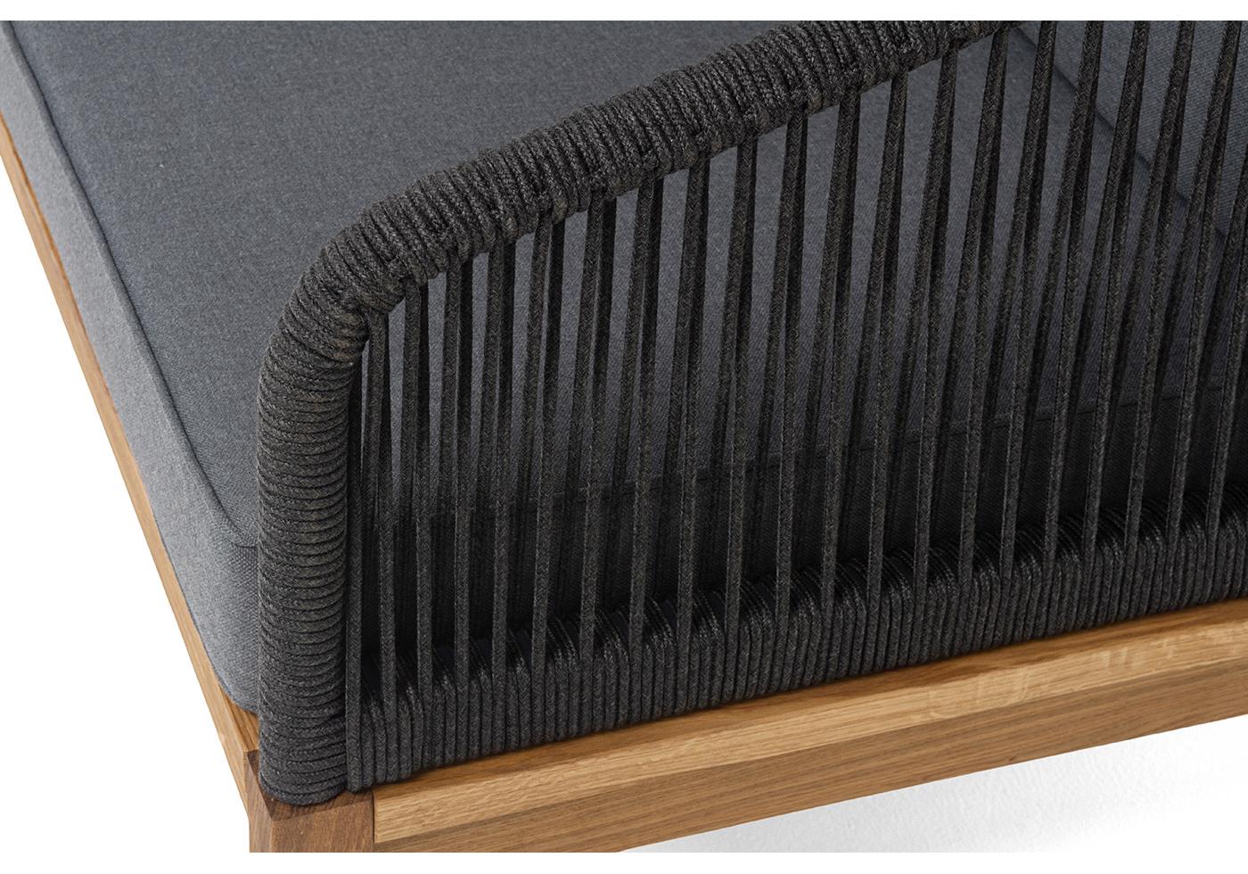 "Канны" диван 2-местный плетеный из роупа, основание дуб, роуп темно-серый круглый, ткань темно-серая 027