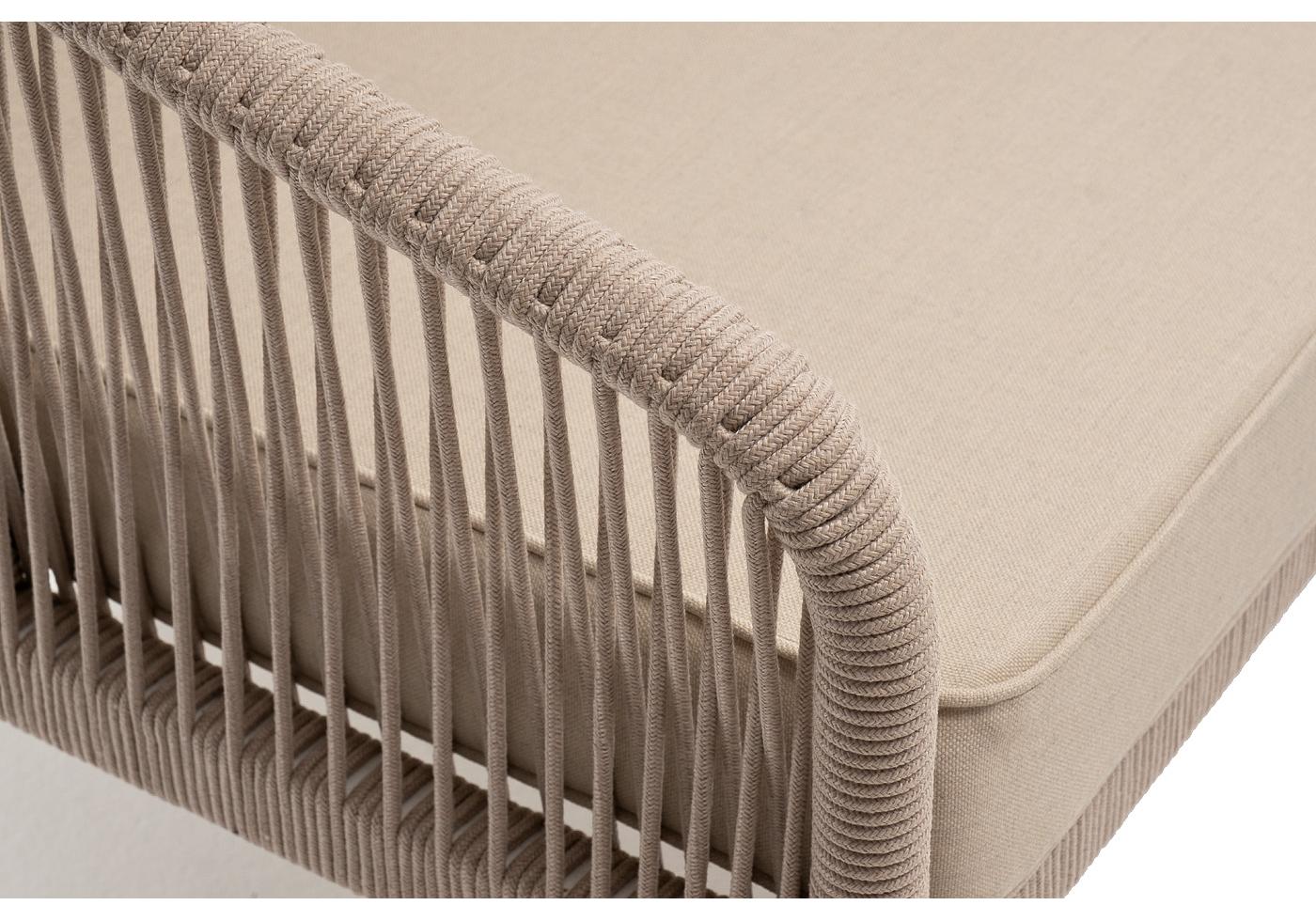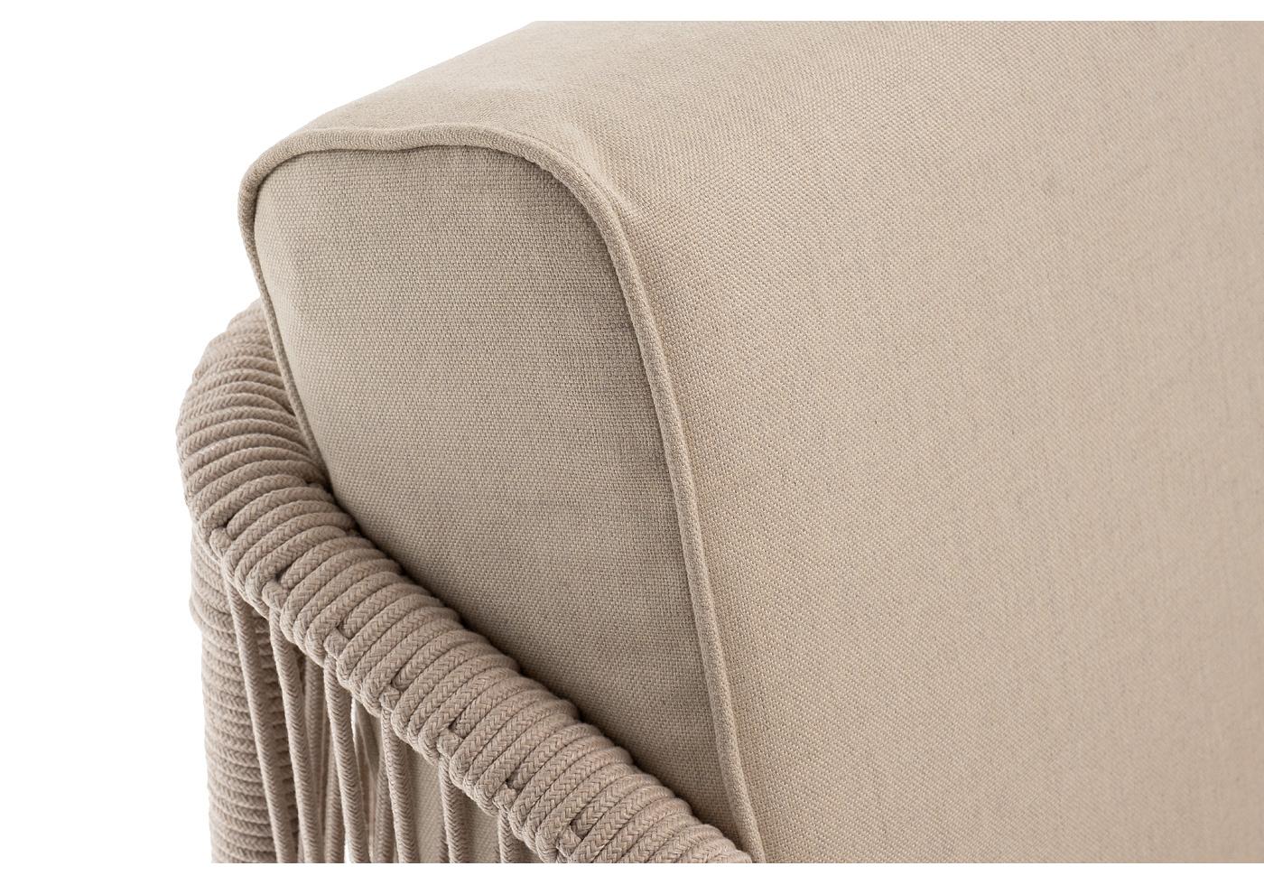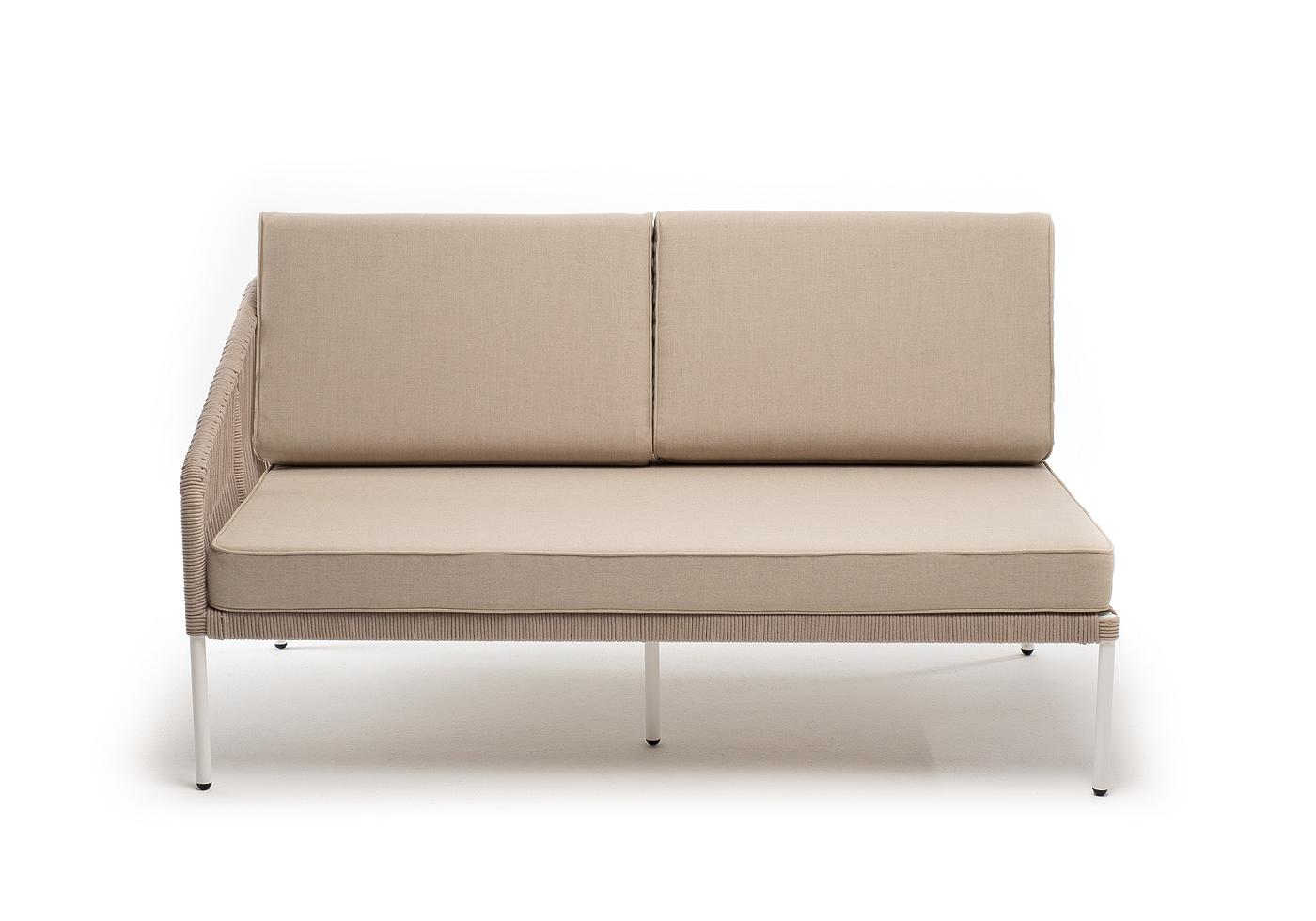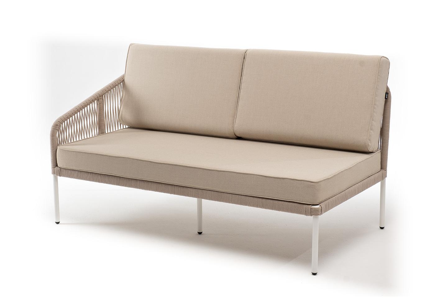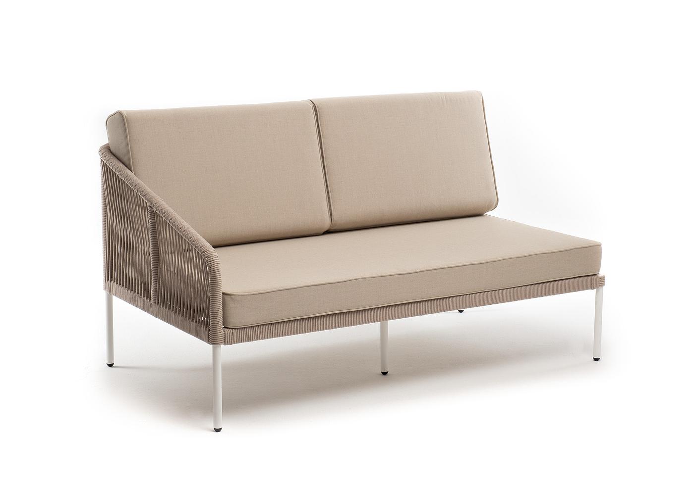 "Канны" правый модуль плетеный из роупа, каркас алюминий белый муар, роуп бежевый круглый, ткань бежевая 15052