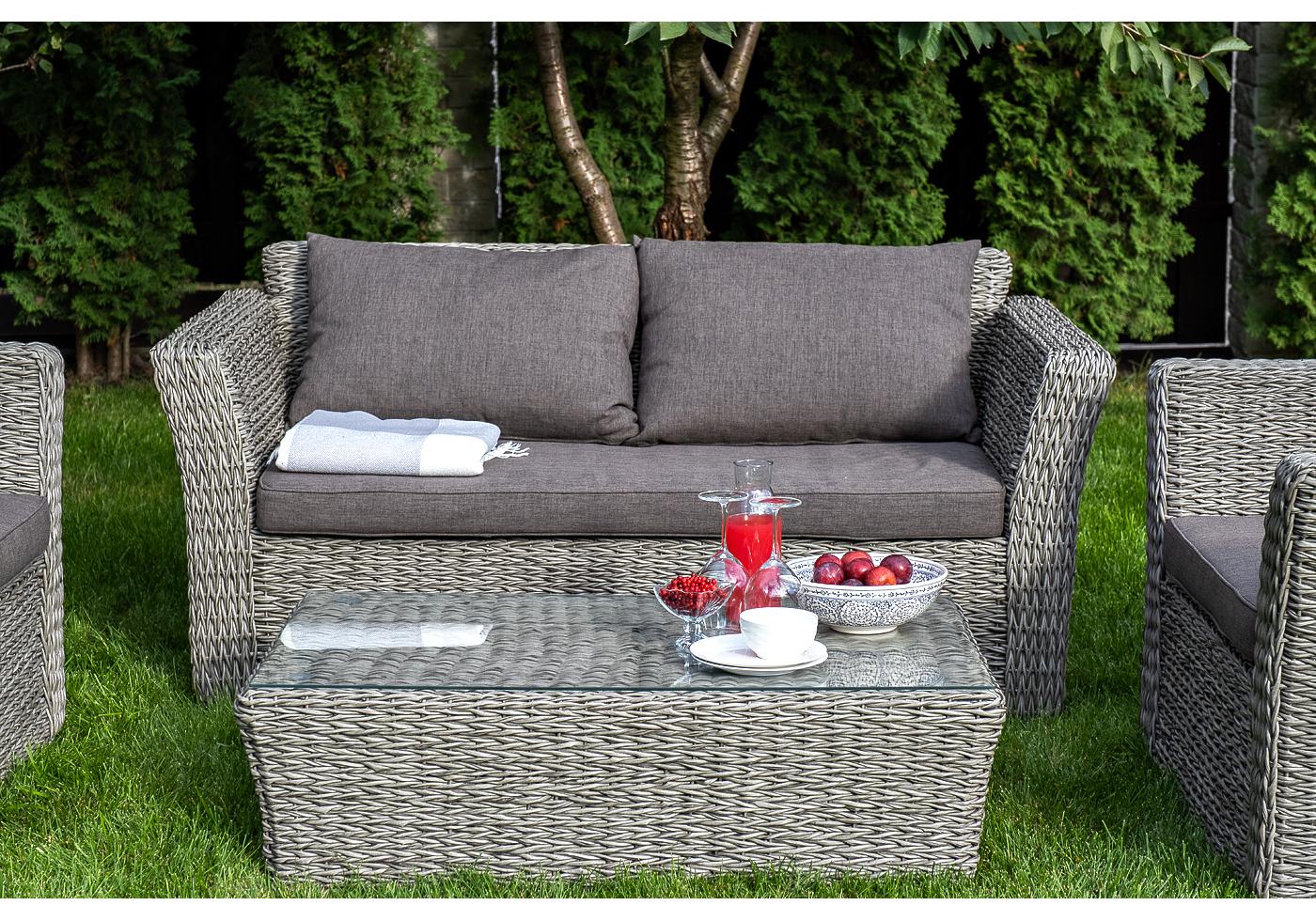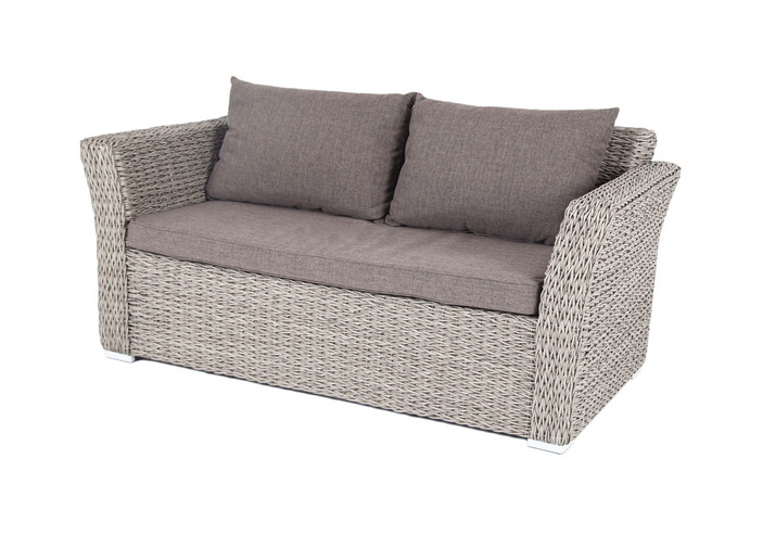 "Капучино" диван из искусственного ротанга (гиацинт) двухместный, цвет серый