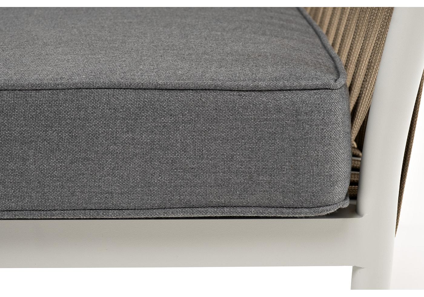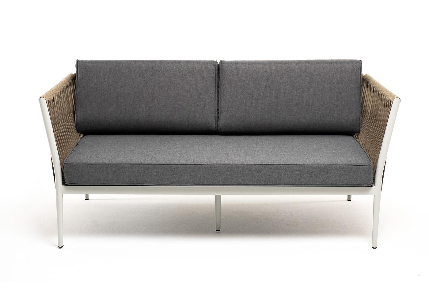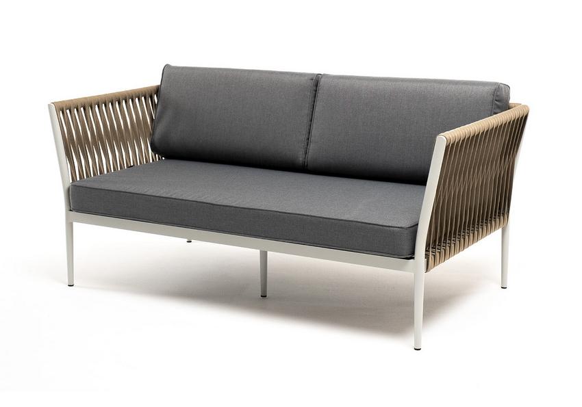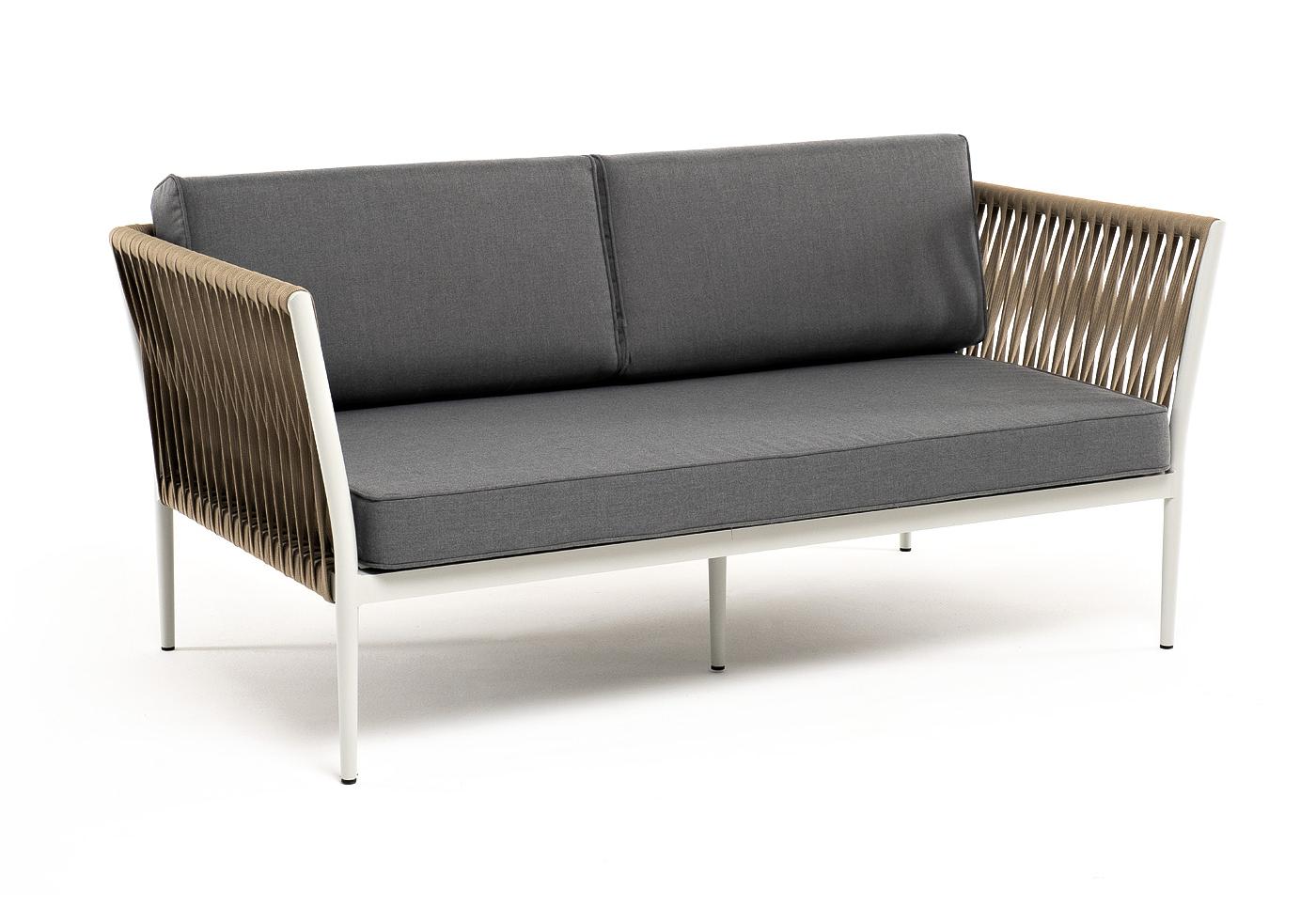 "Касабланка" диван 2-местный плетеный из роупа, каркас алюминий светло-серый (RAL7035) муар, роуп серо-коричневый 23мм, ткань серая 017
