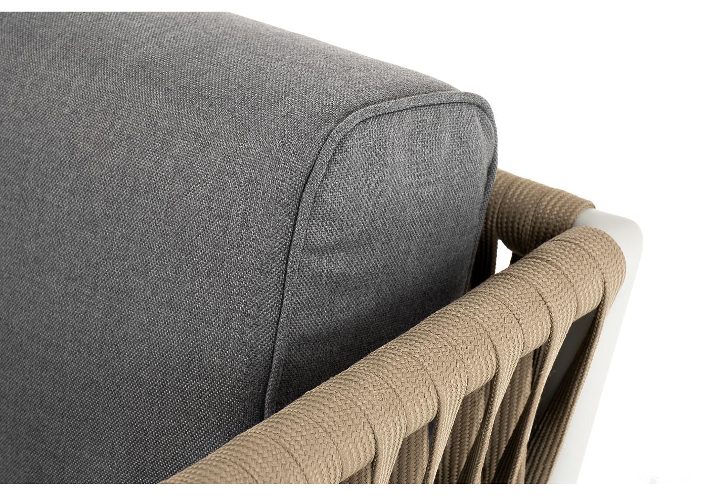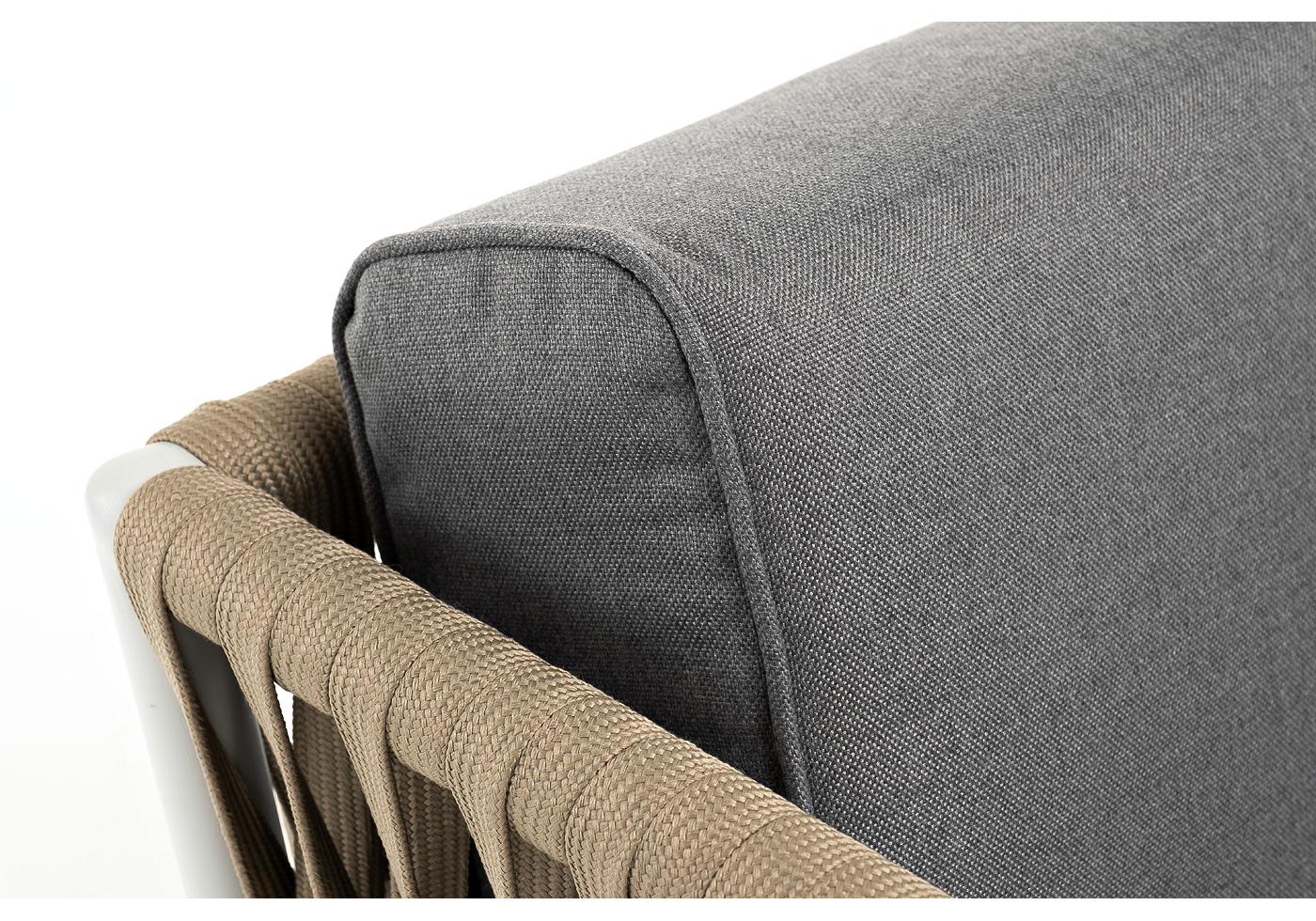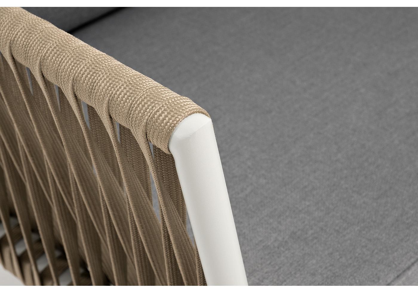 "Касабланка" диван 2-местный плетеный из роупа, каркас алюминий светло-серый (RAL7035) муар, роуп серо-коричневый 23мм, ткань серая 017