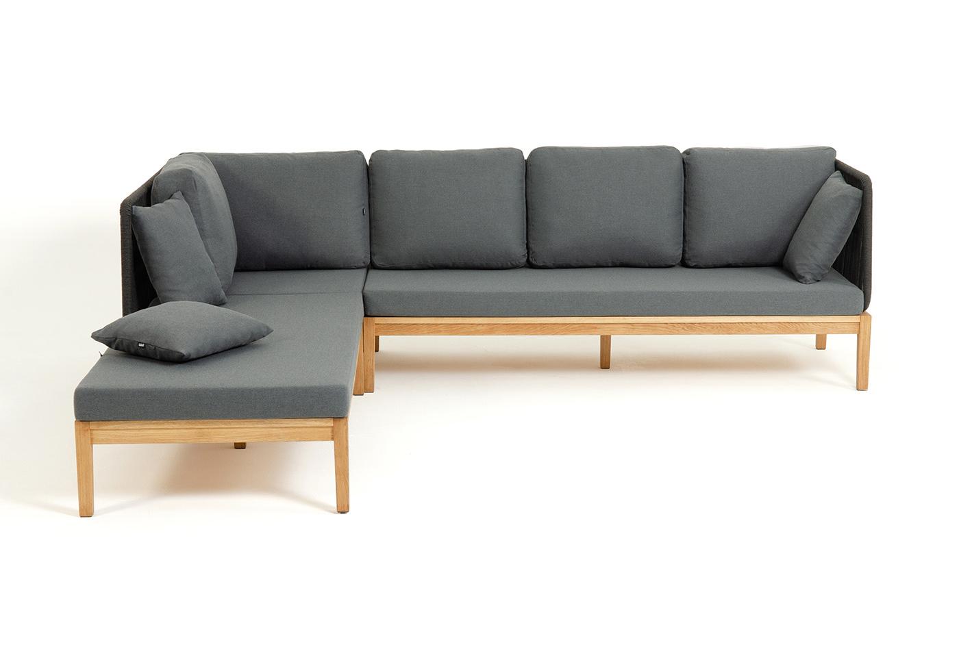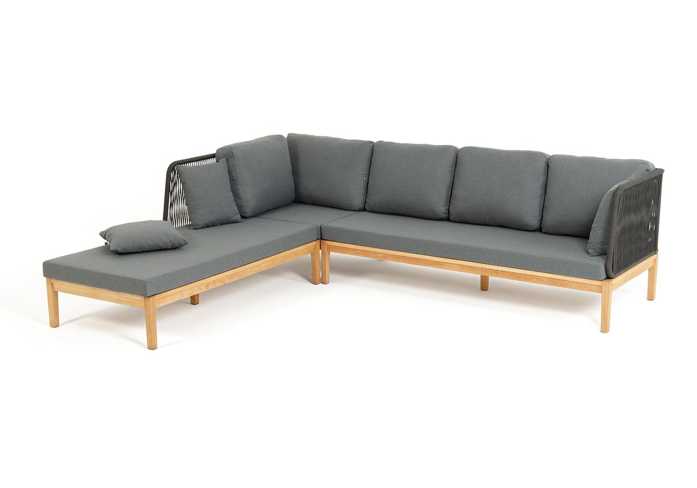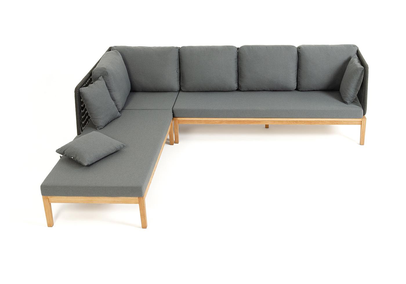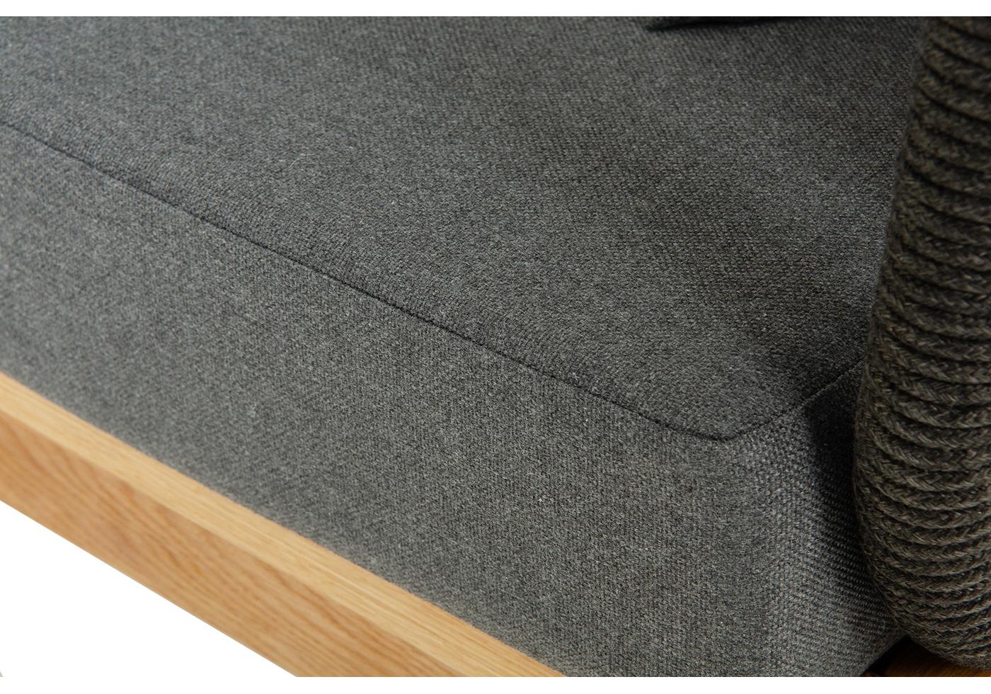 "Каталония" диван модульный плетеный из роупа, основание дуб, роуп темно-серый круглый, ткань темно-серая 027
