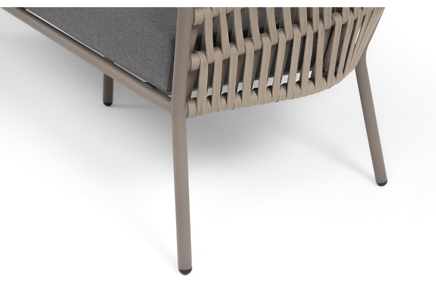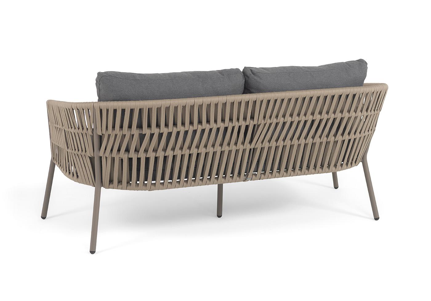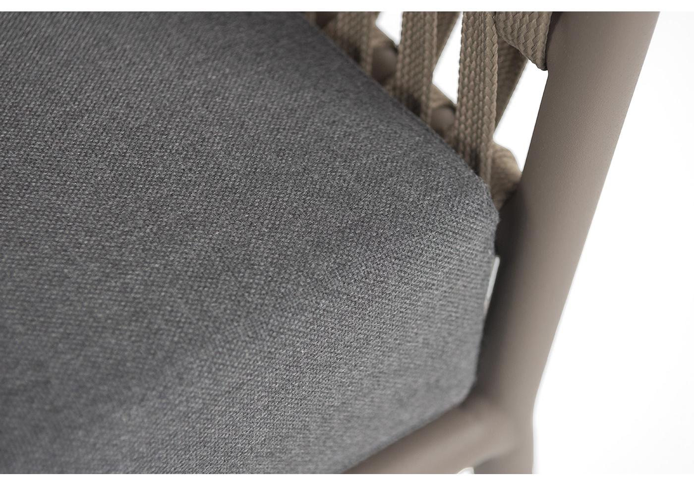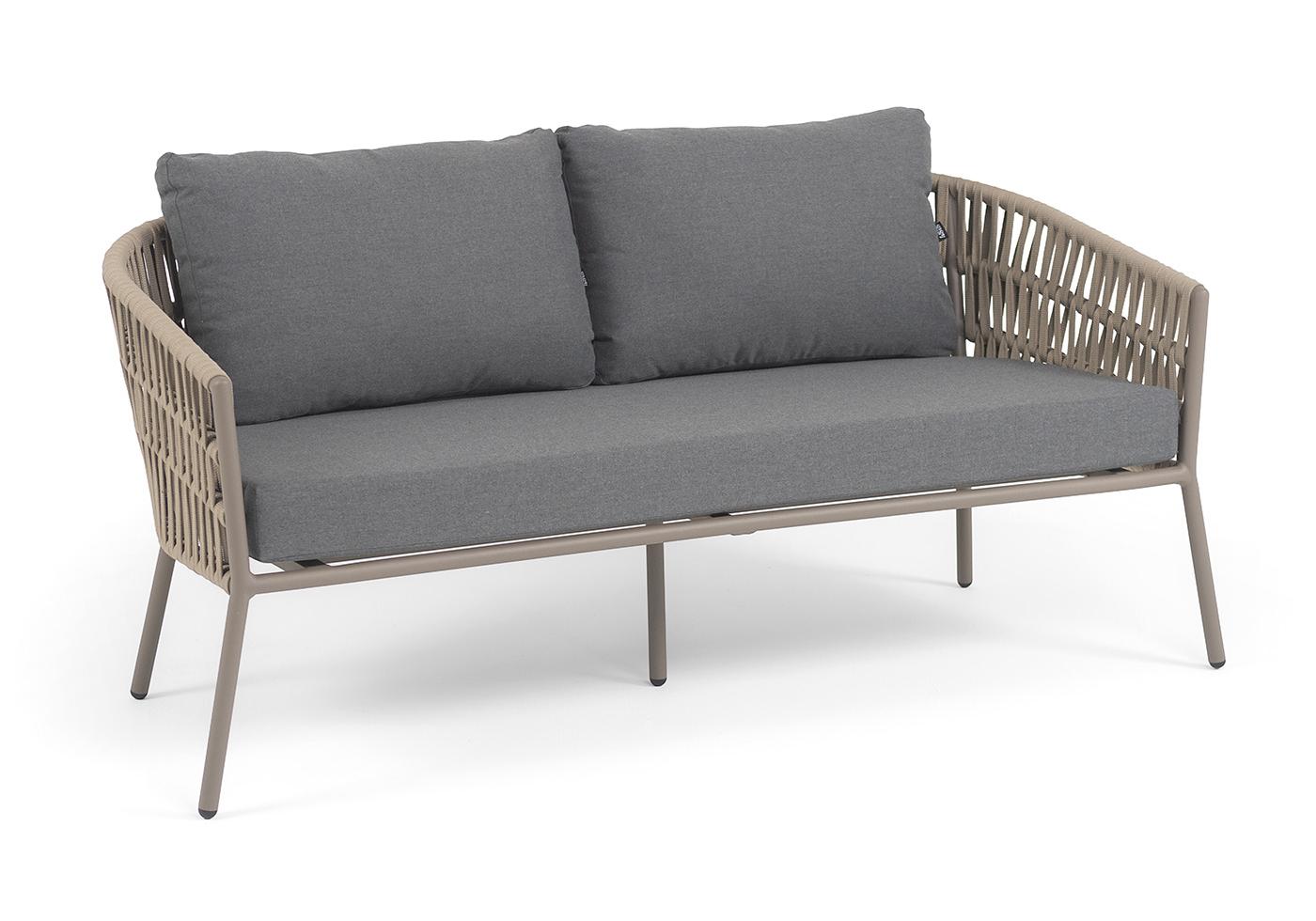 "Комо" диван 2-местный плетеный из роупа, каркас алюминий бежево-серый (RAL7006) муар, роуп серо-коричневый 23мм, ткань темно-серая 027