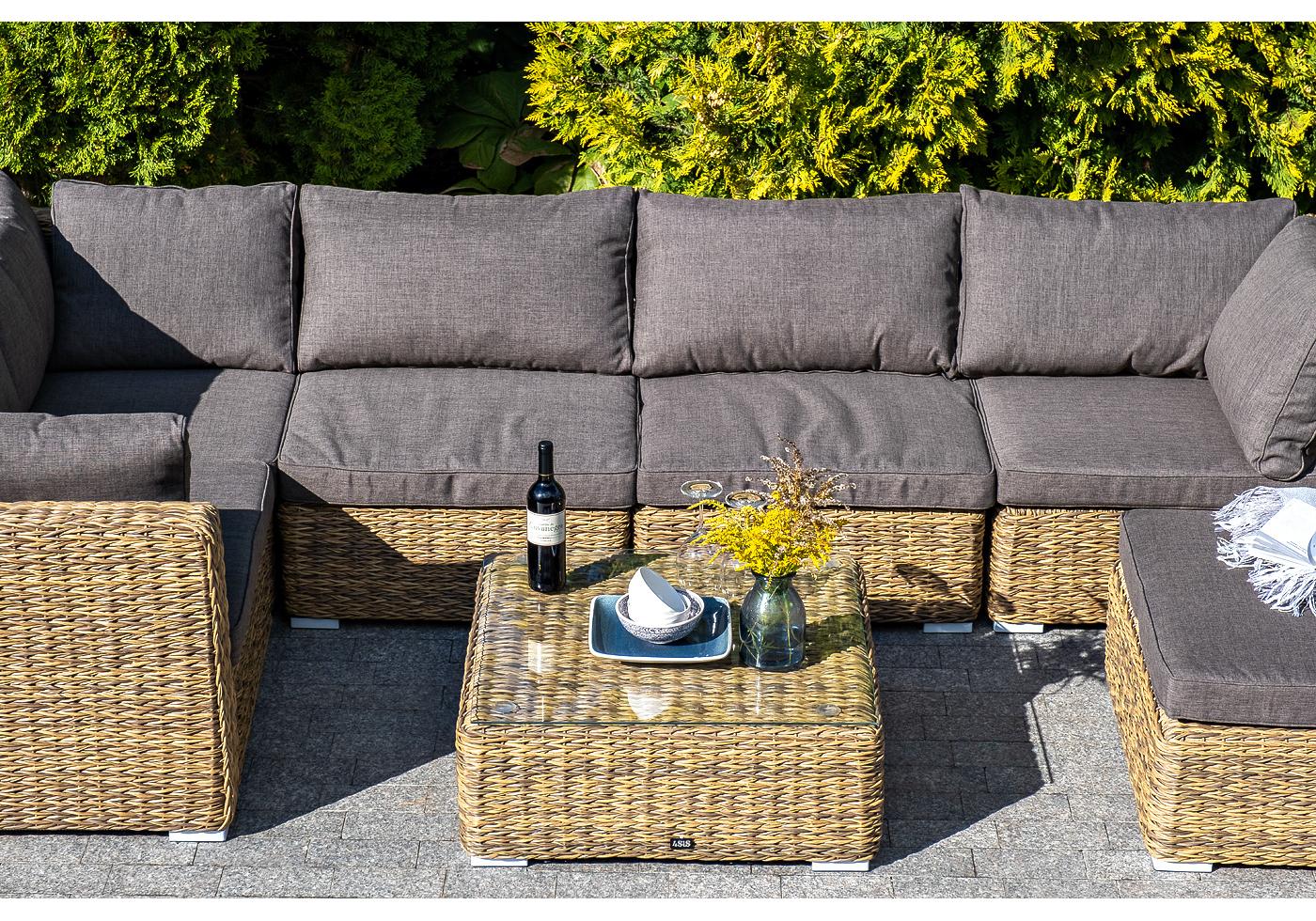 «Лунго» прямой модуль из искусственного ротанга вида «гиацинт», выполнен из алюминиевого каркаса, который оплетен вручную ротангом соломенного цвета.