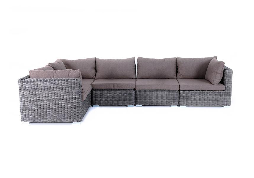 Диван из круглого искусственного ротанга «Лунго» графитового цвета состоит из 5 различных модулей:
