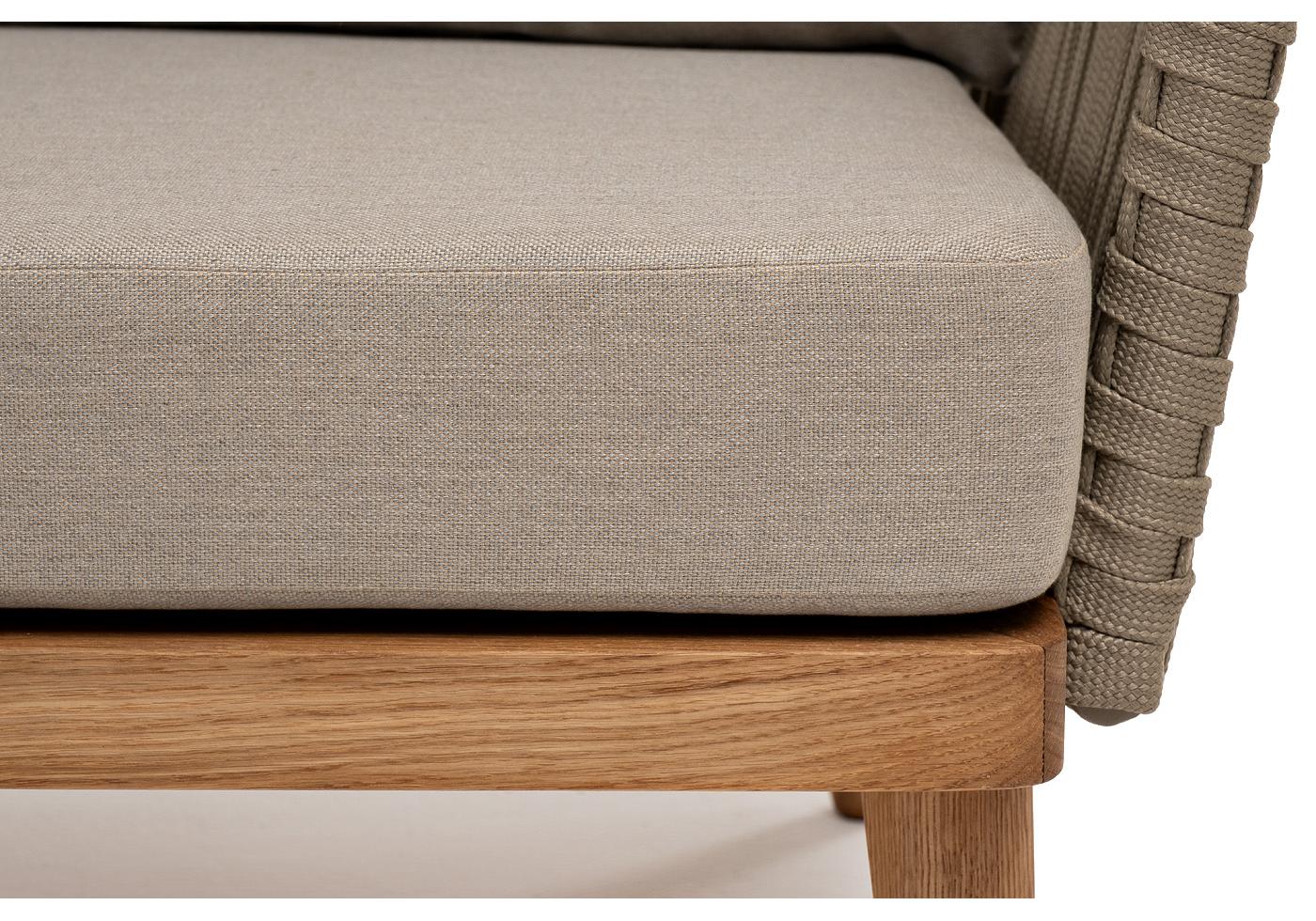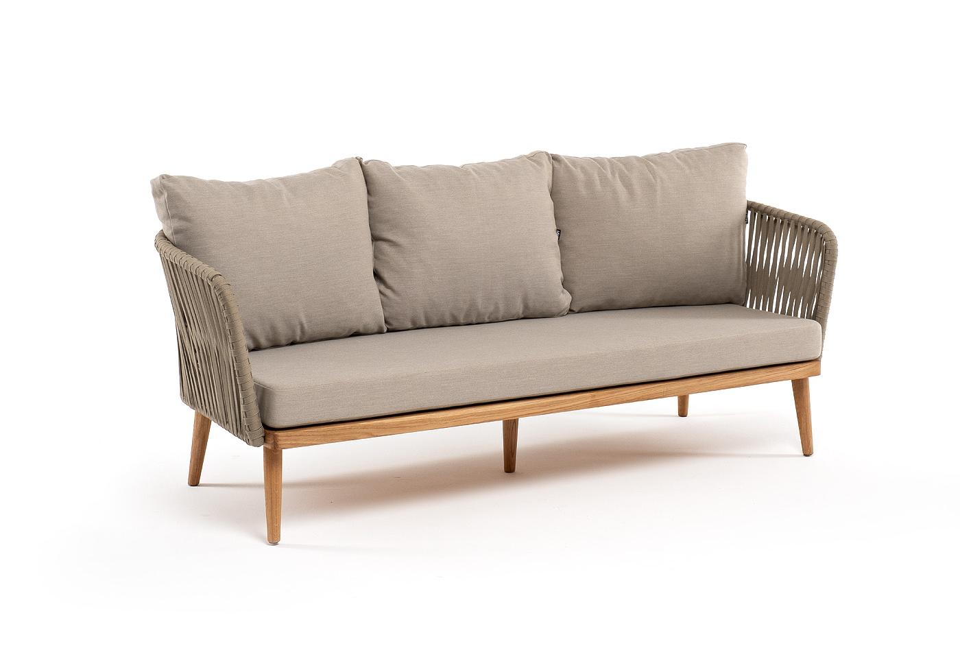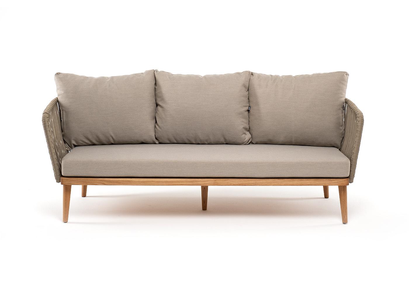 "Мальорка" диван 3-местный плетеный из роупа, основание дуб, роуп серо-коричневый 23мм, ткань бежевая 15052