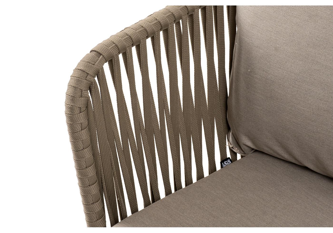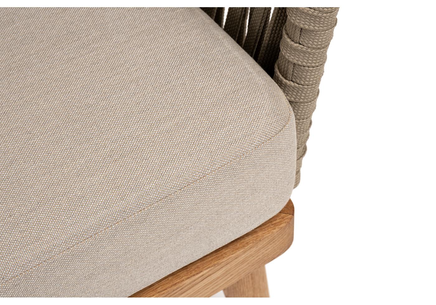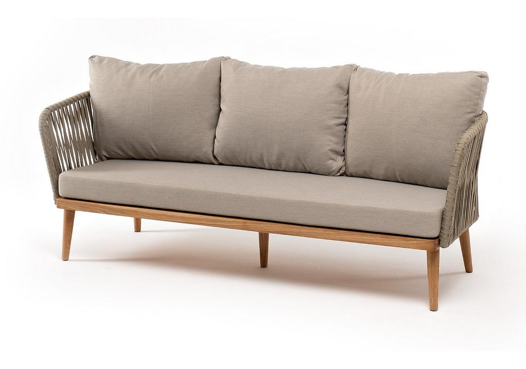 "Мальорка" диван 3-местный плетеный из роупа, основание дуб, роуп серо-коричневый 23мм, ткань бежевая 15052