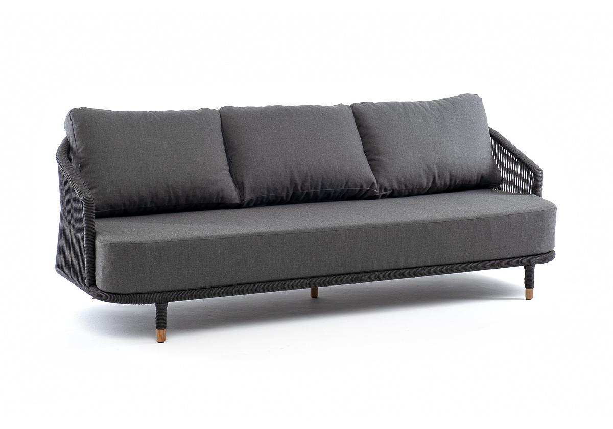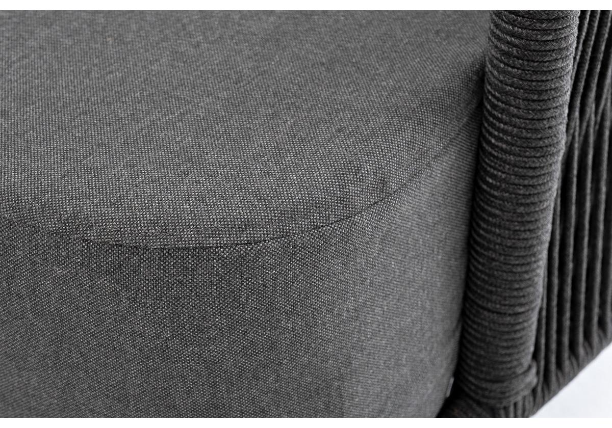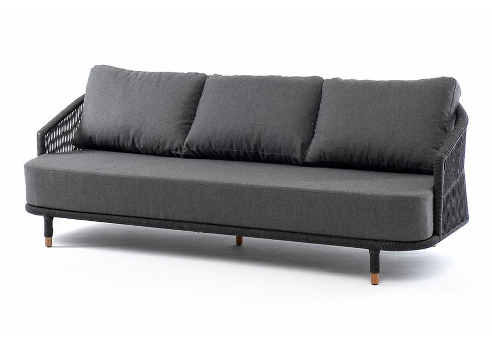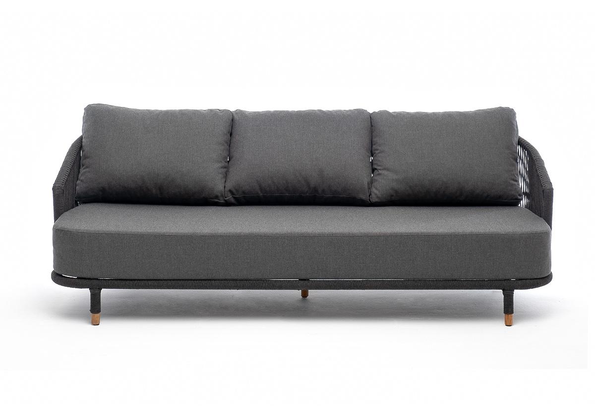 "Верона" диван 3-местный плетеный из роупа, каркас алюминий темно-серый (RAL7024) муар, роуп темно-серый круглый, ткань темно-серая 027