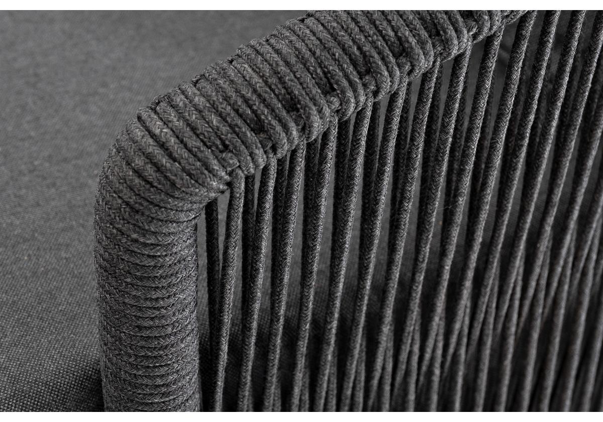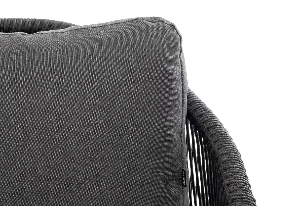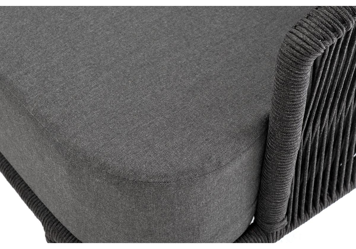 "Верона" диван 3-местный плетеный из роупа, каркас алюминий темно-серый (RAL7024) муар, роуп темно-серый круглый, ткань темно-серая 027
