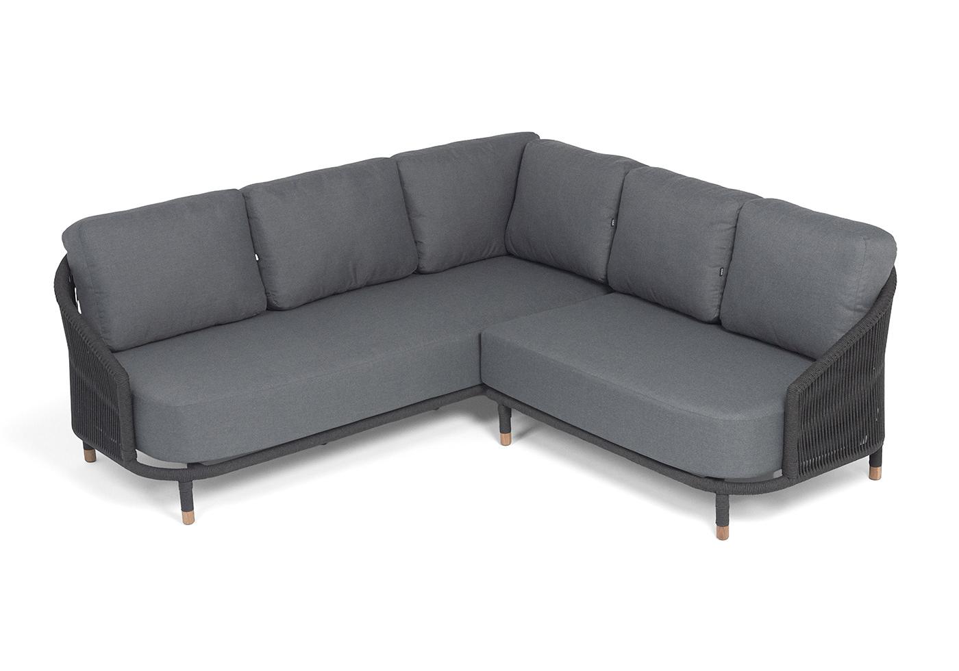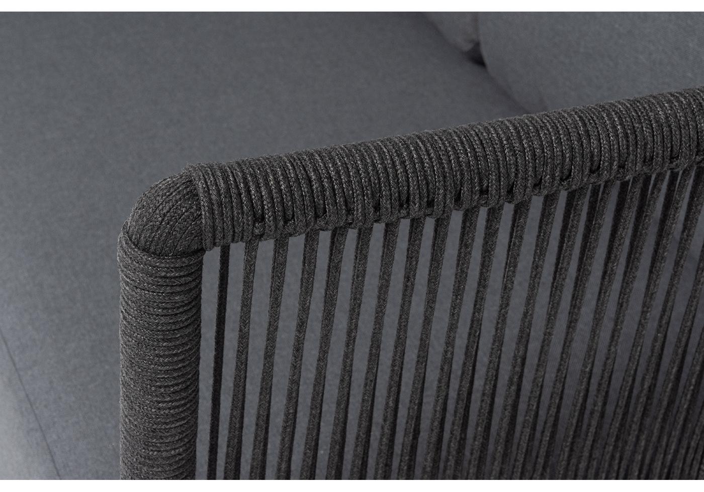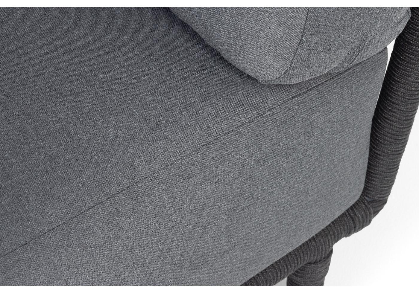 "Верона" диван модульный плетеный из роупа, каркас алюминий темно-серый (RAL7024) муар, роуп темно-серый круглый, ткань темно-серая 027