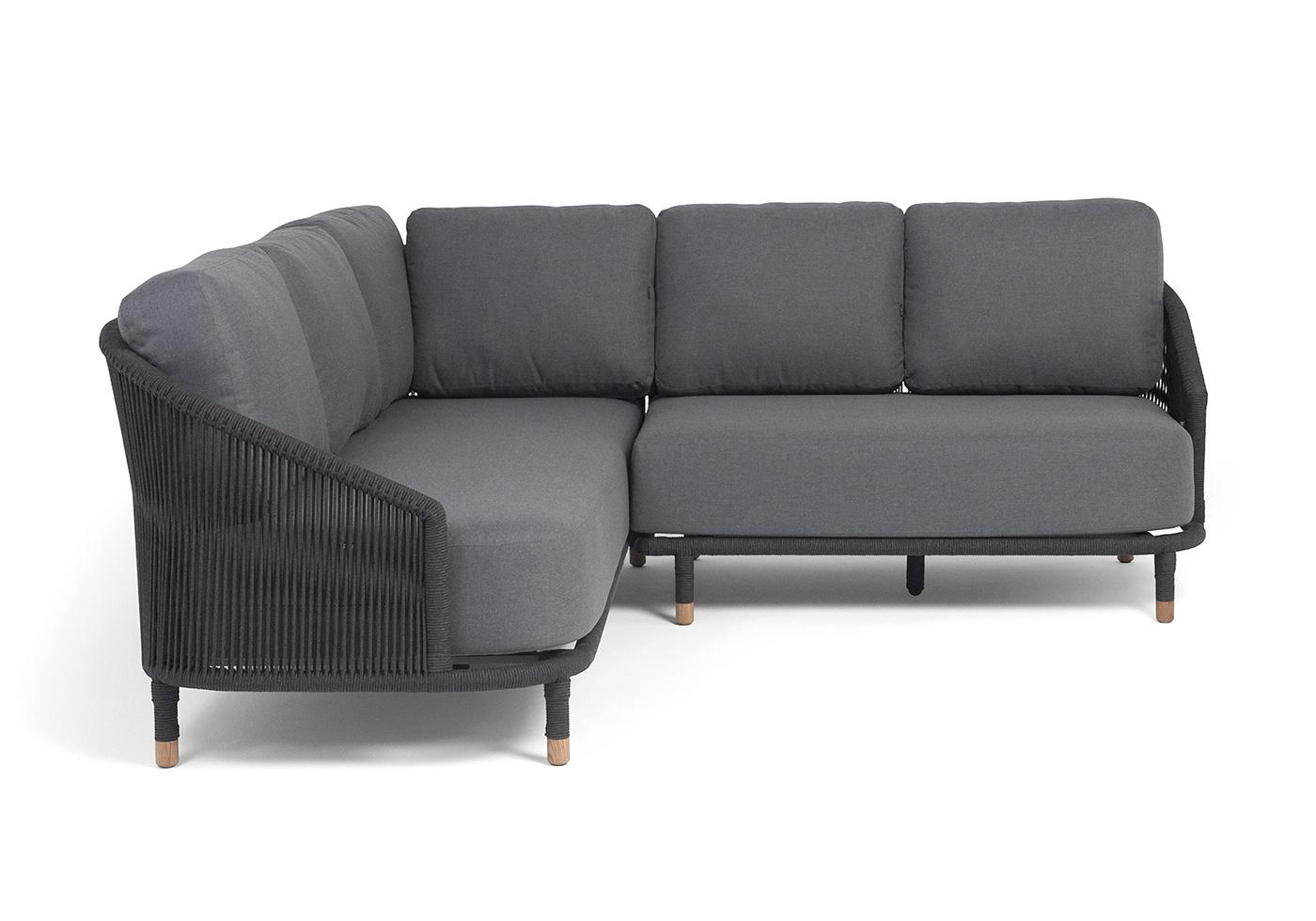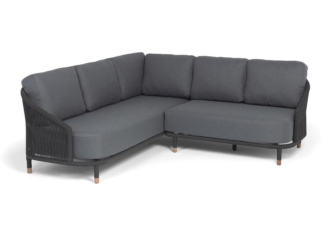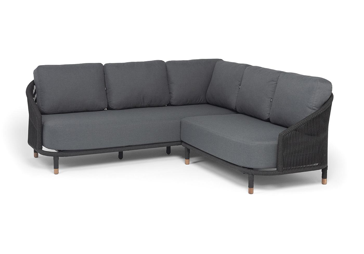 "Верона" диван модульный плетеный из роупа, каркас алюминий темно-серый (RAL7024) муар, роуп темно-серый круглый, ткань темно-серая 027