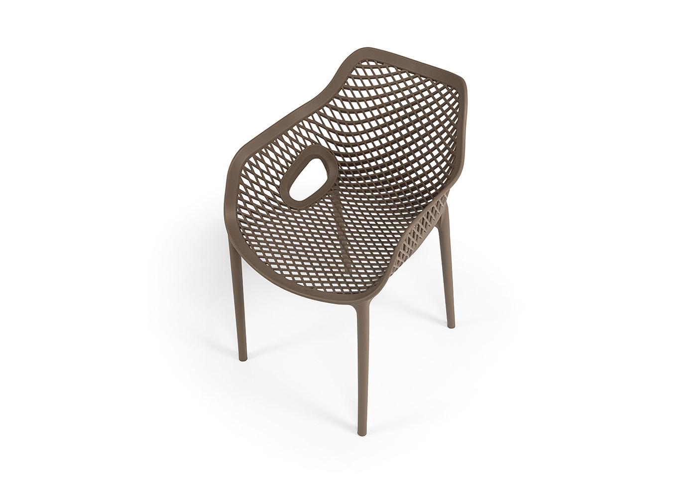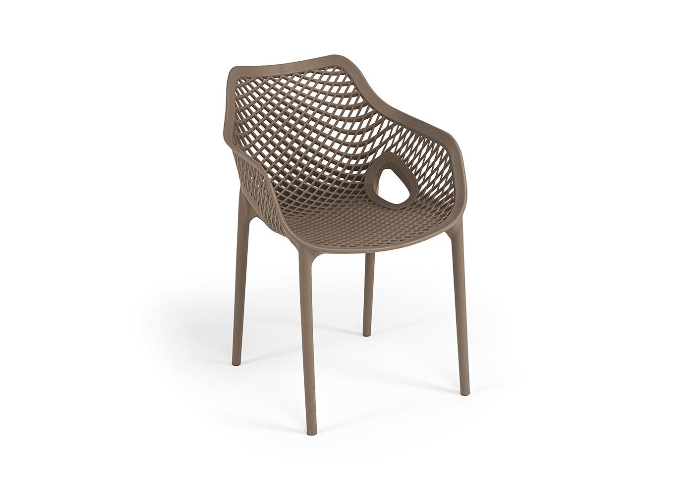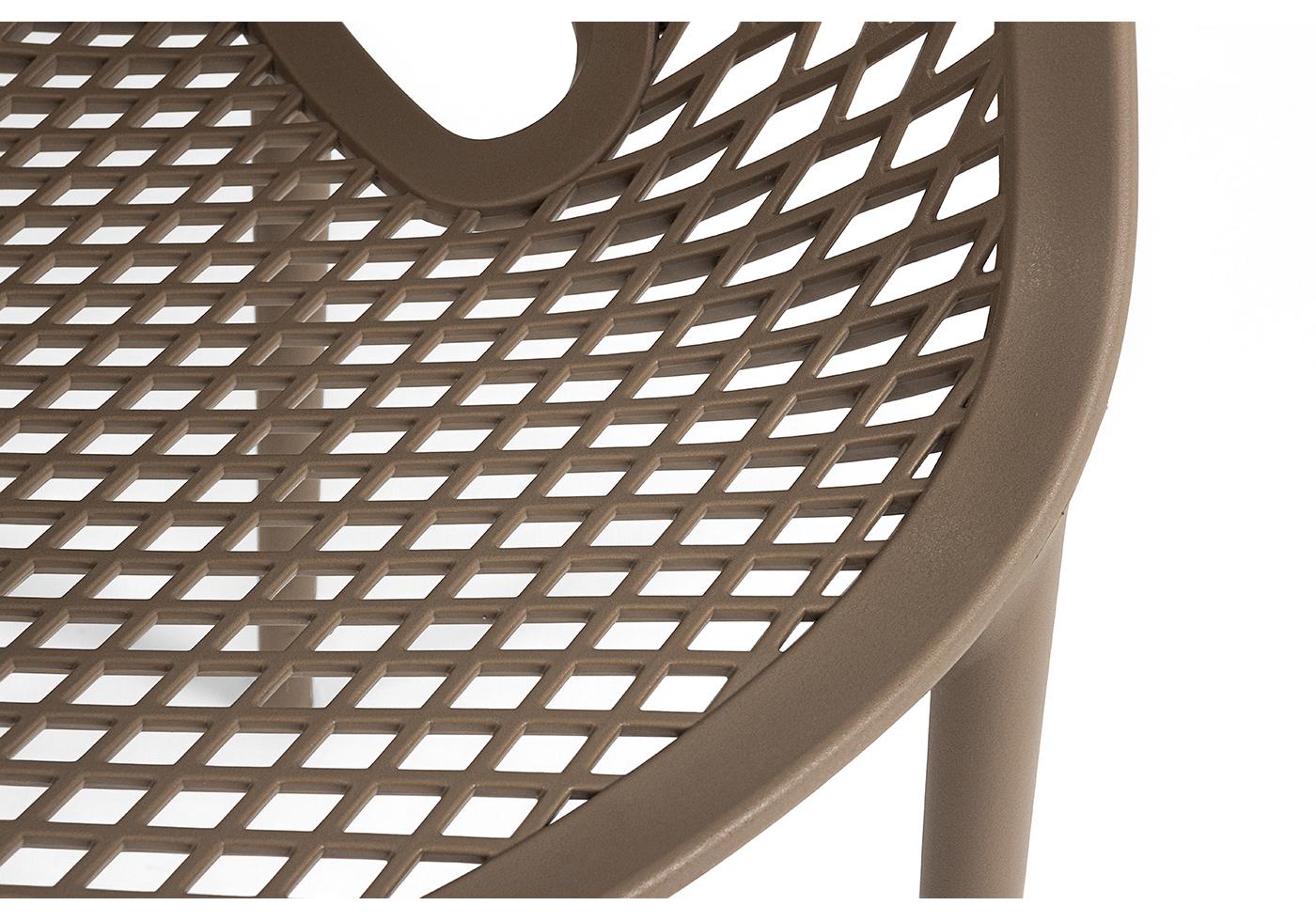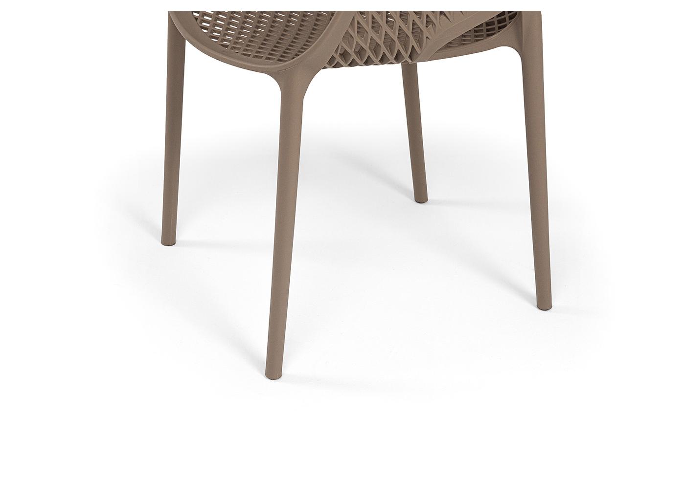 Изготовлен из полипропилена, прочного и стойкого пластика, устойчивого к УФ-излучению, благодаря этому стул сохраняет свой первоначальный вид и не выцветает на солнце даже несмотря на активную эксплуатацию. Цвет - бежево-коричневый.
