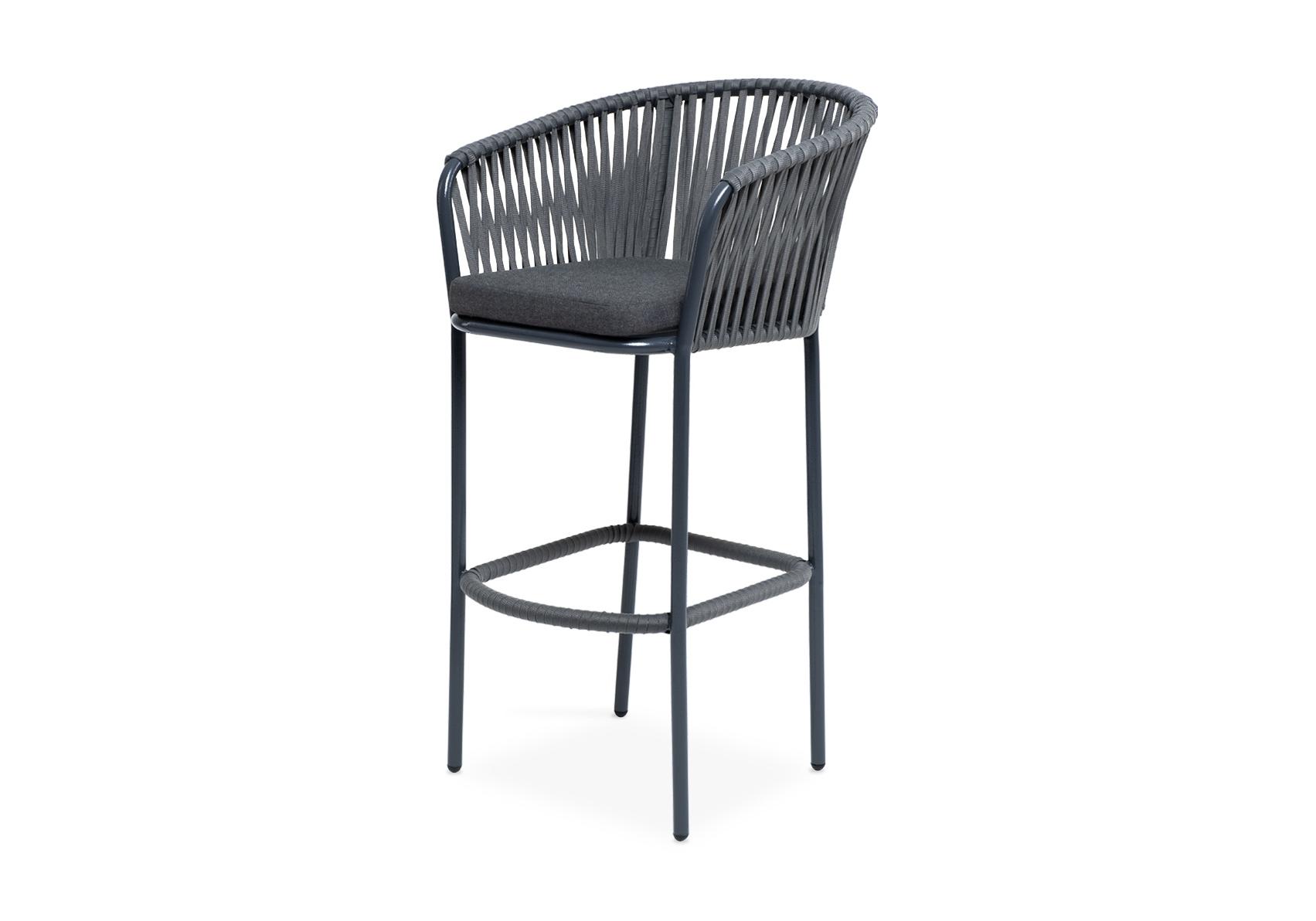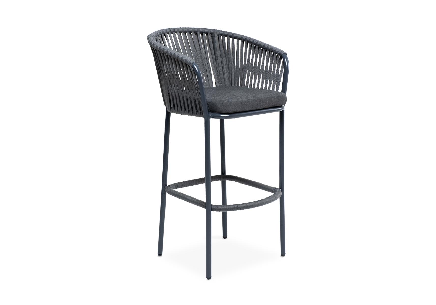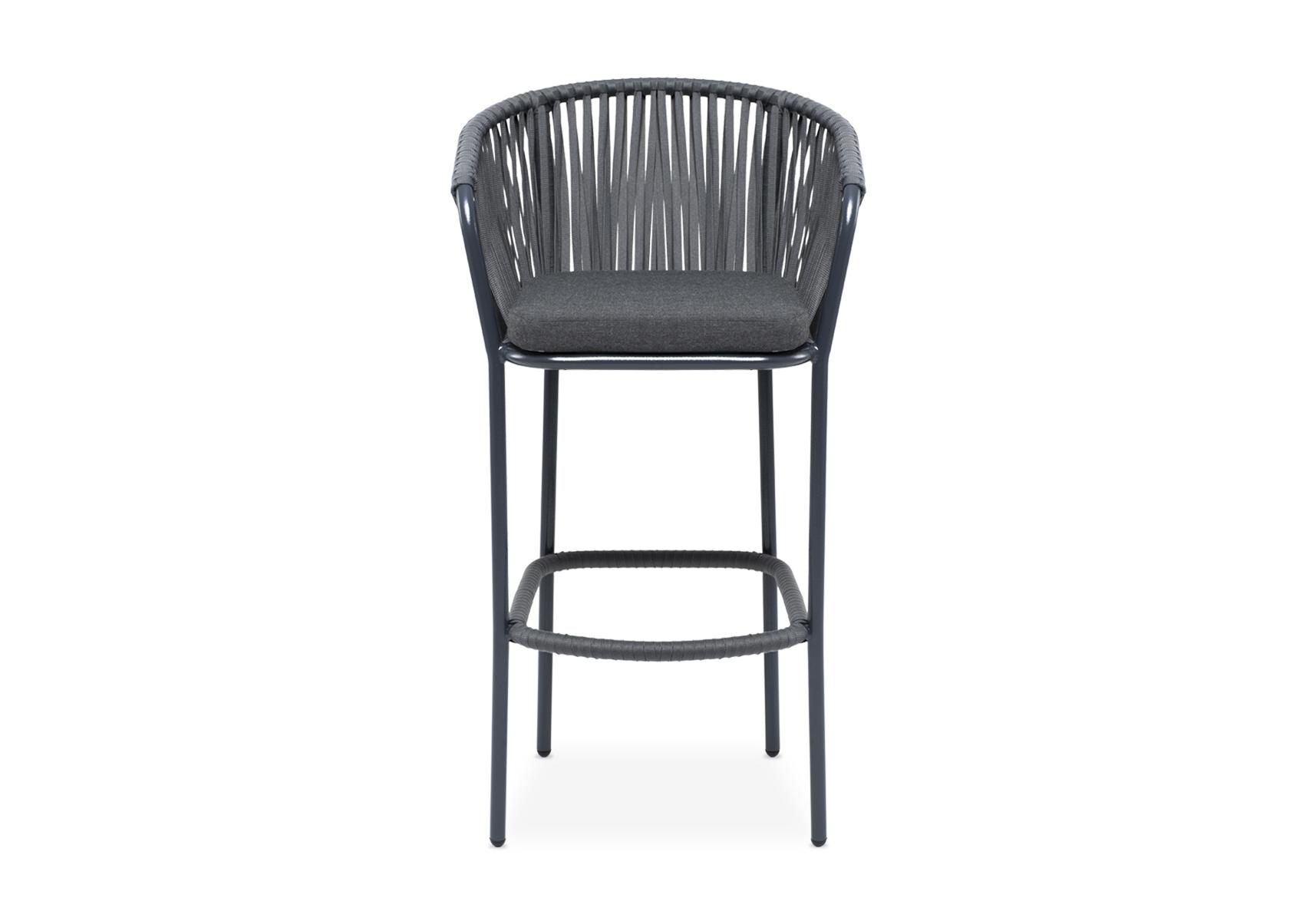 "Бордо" стул барный плетеный из роупа, каркас из стали темно-серый (RAL7024) муар, роуп серый 15мм, ткань темно-серая 027
