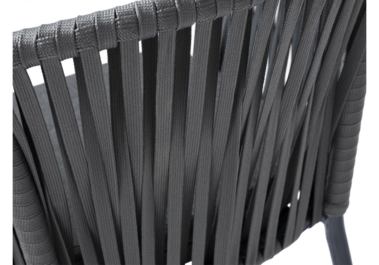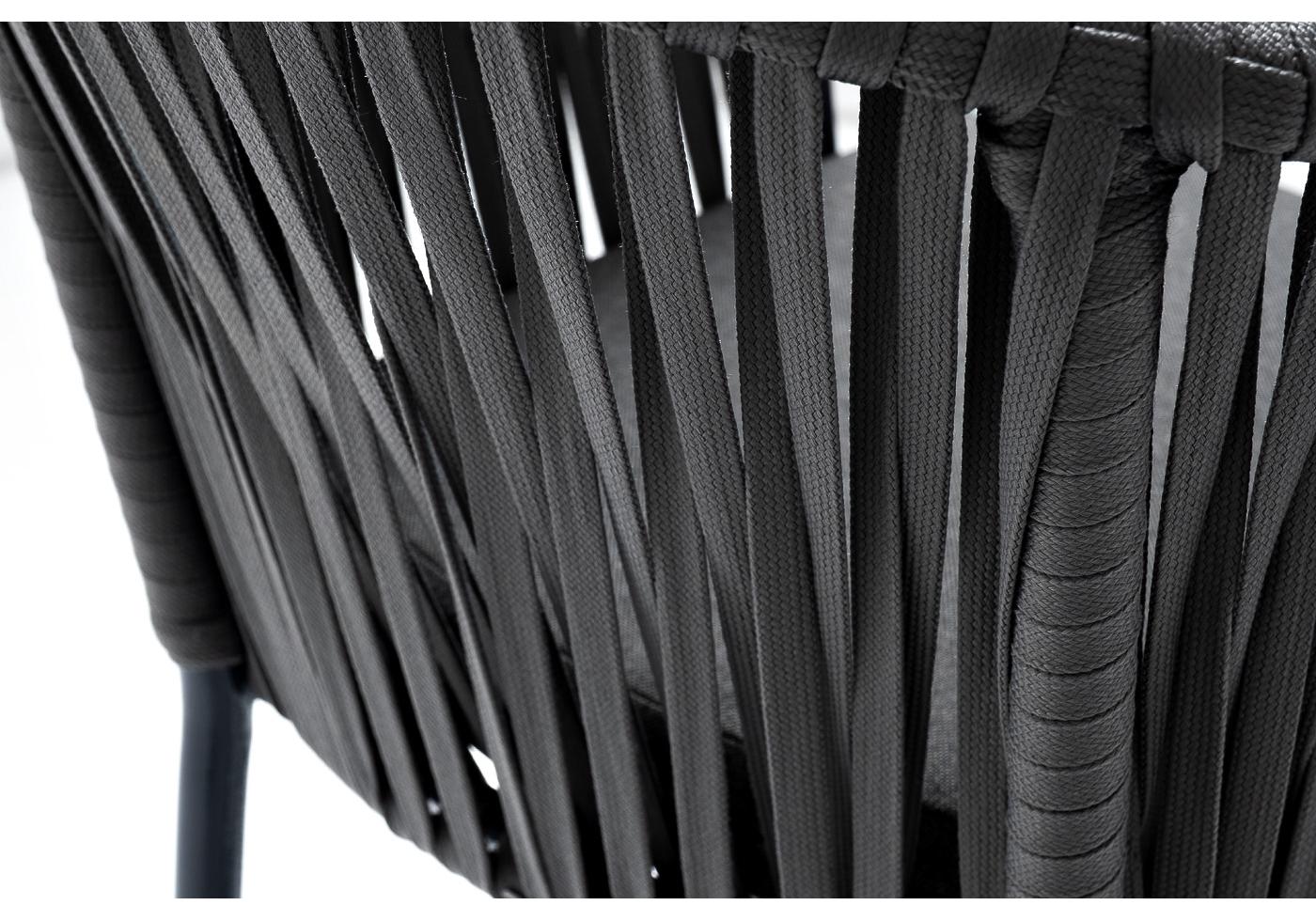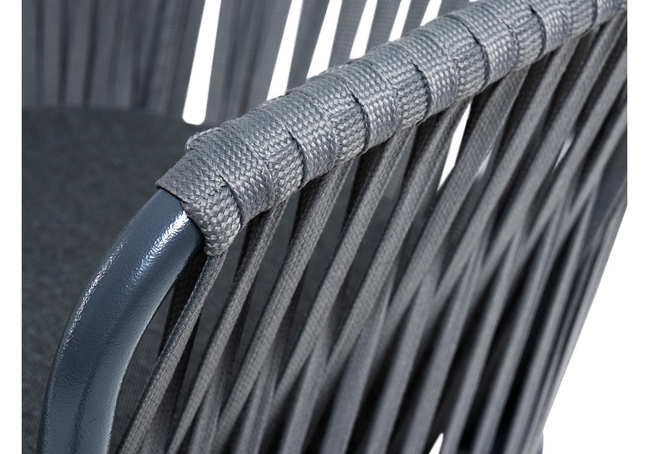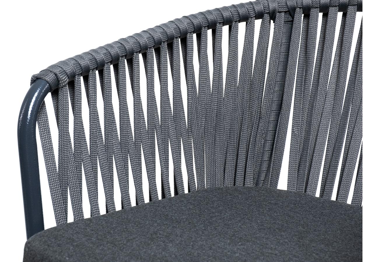 "Бордо" стул барный плетеный из роупа, каркас из стали темно-серый (RAL7024) муар, роуп серый 15мм, ткань темно-серая 027