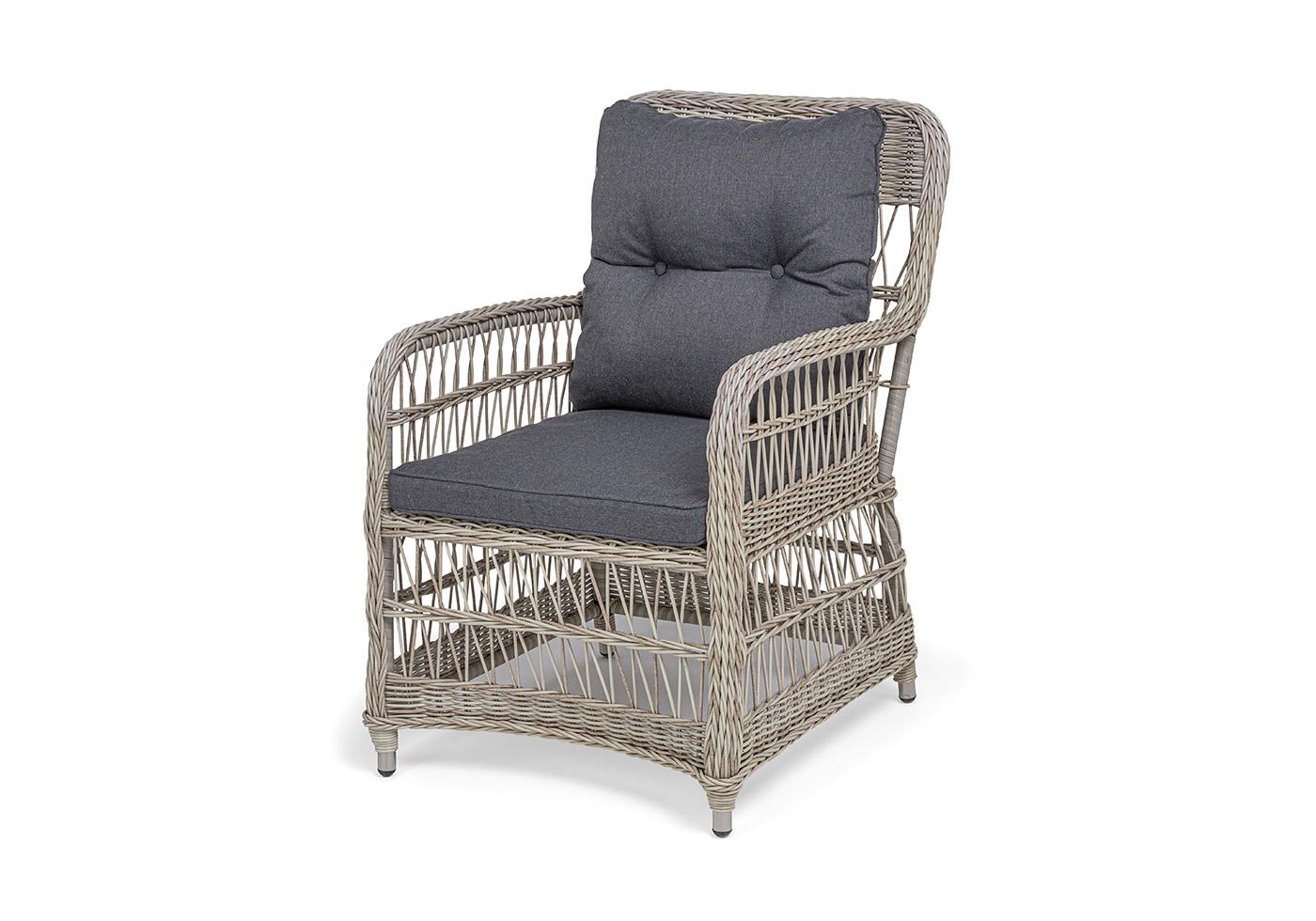 Садовое кресло располагает двумя мягкими подушками, которые идут в комплекте. Они выполнены в сером цвете. Полиэстер высокого качества используется при пошиве тканевых изделий. Его плотность 300г