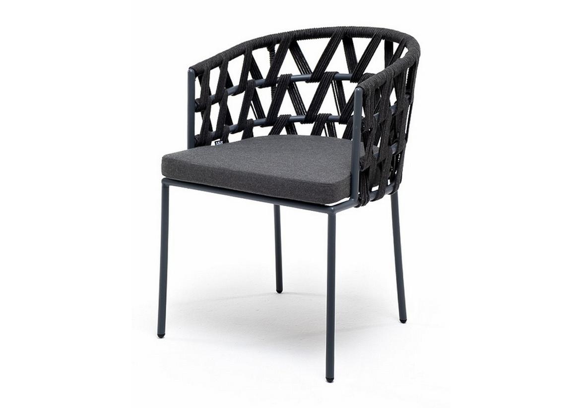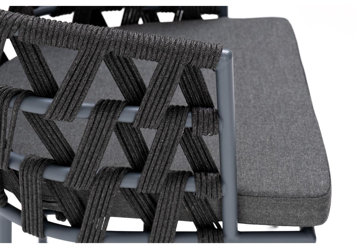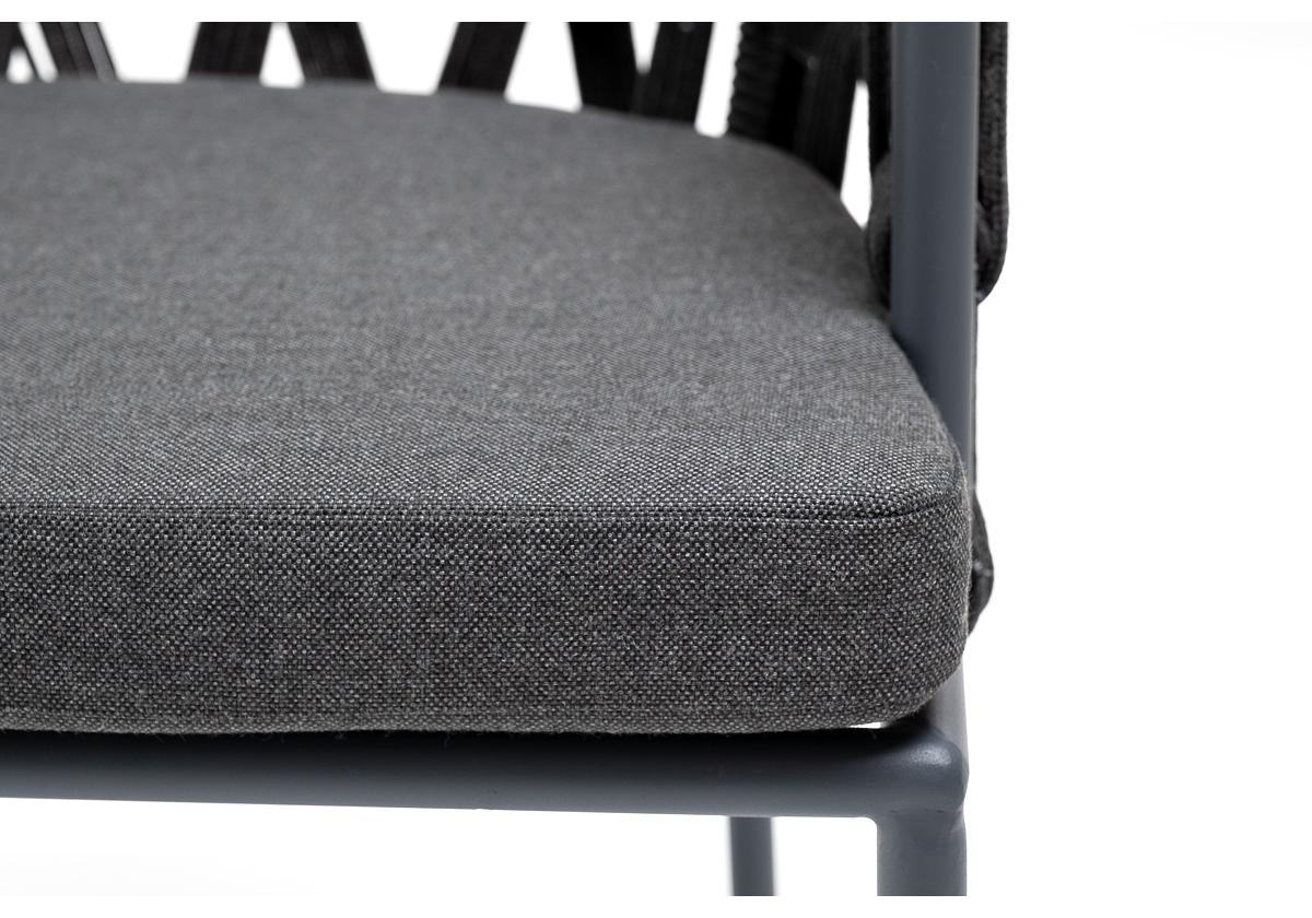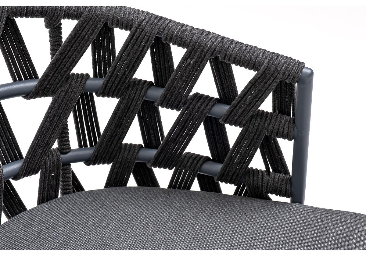 "Диего" стул плетеный из роупа, каркас из стали темно-серый (RAL7024) муар, роуп темно-серый круглый, ткань темно-серая 027