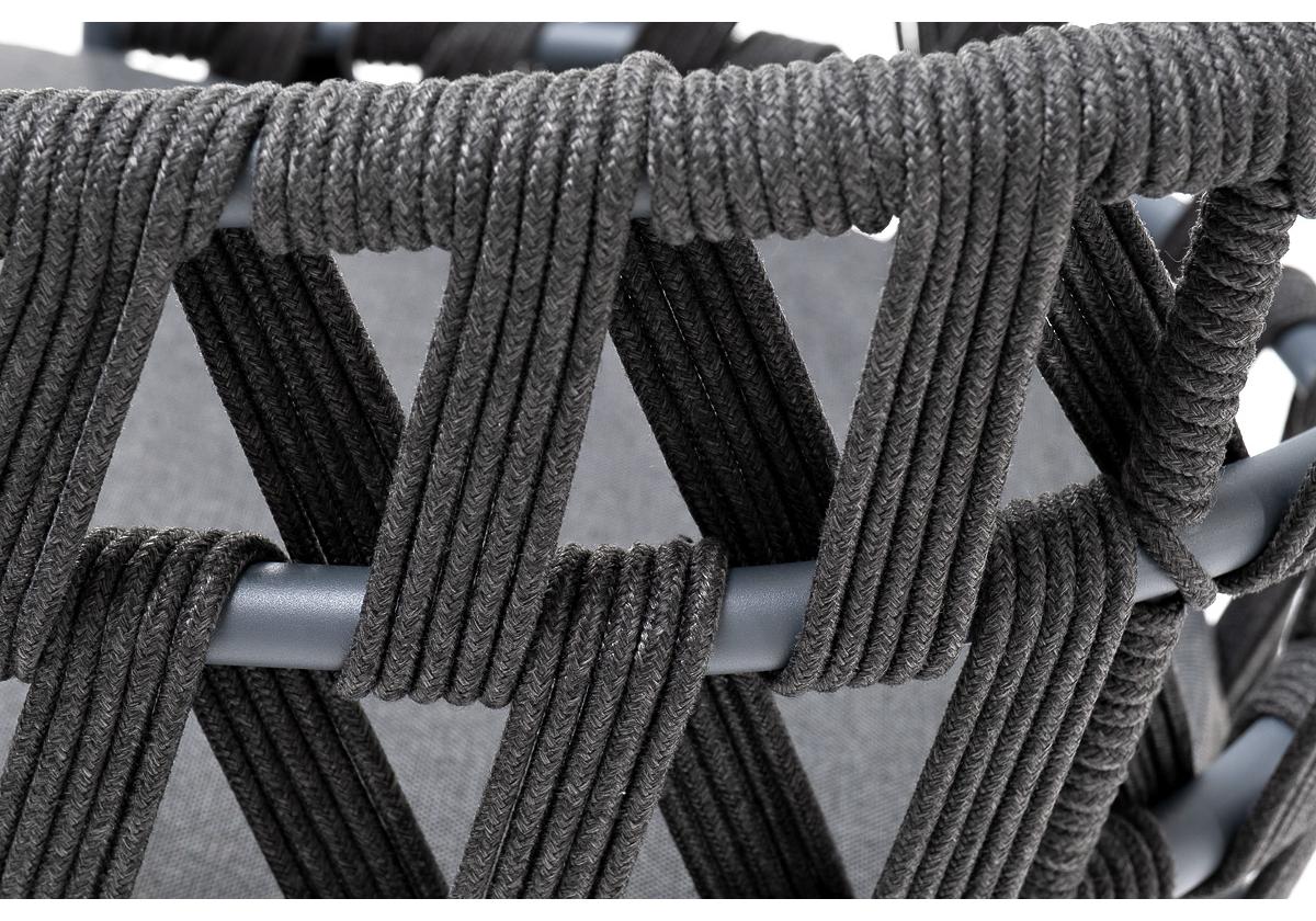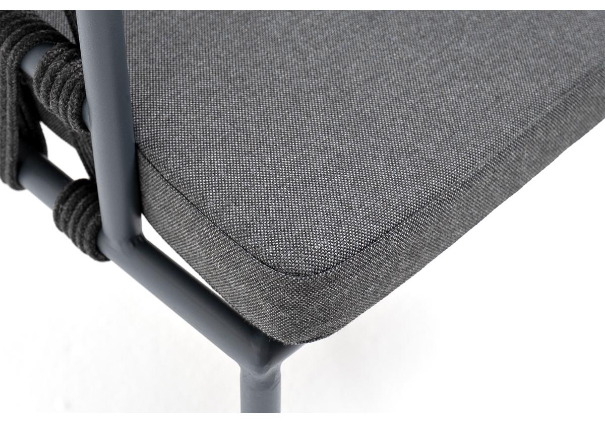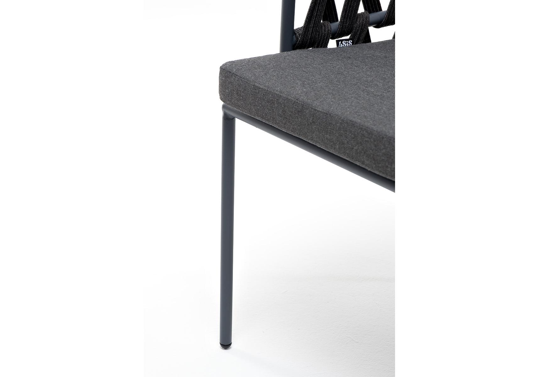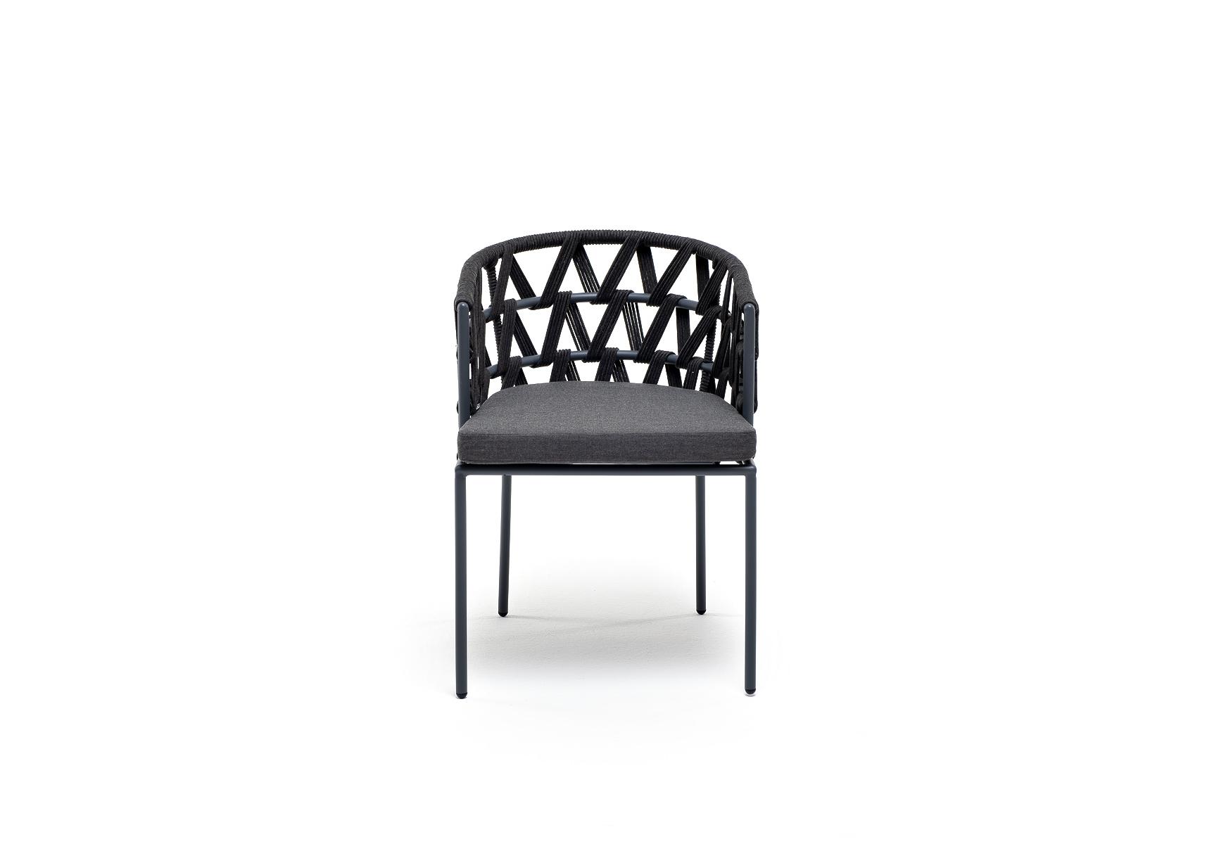 "Диего" стул плетеный из роупа, каркас из стали темно-серый (RAL7024) муар, роуп темно-серый круглый, ткань темно-серая 027