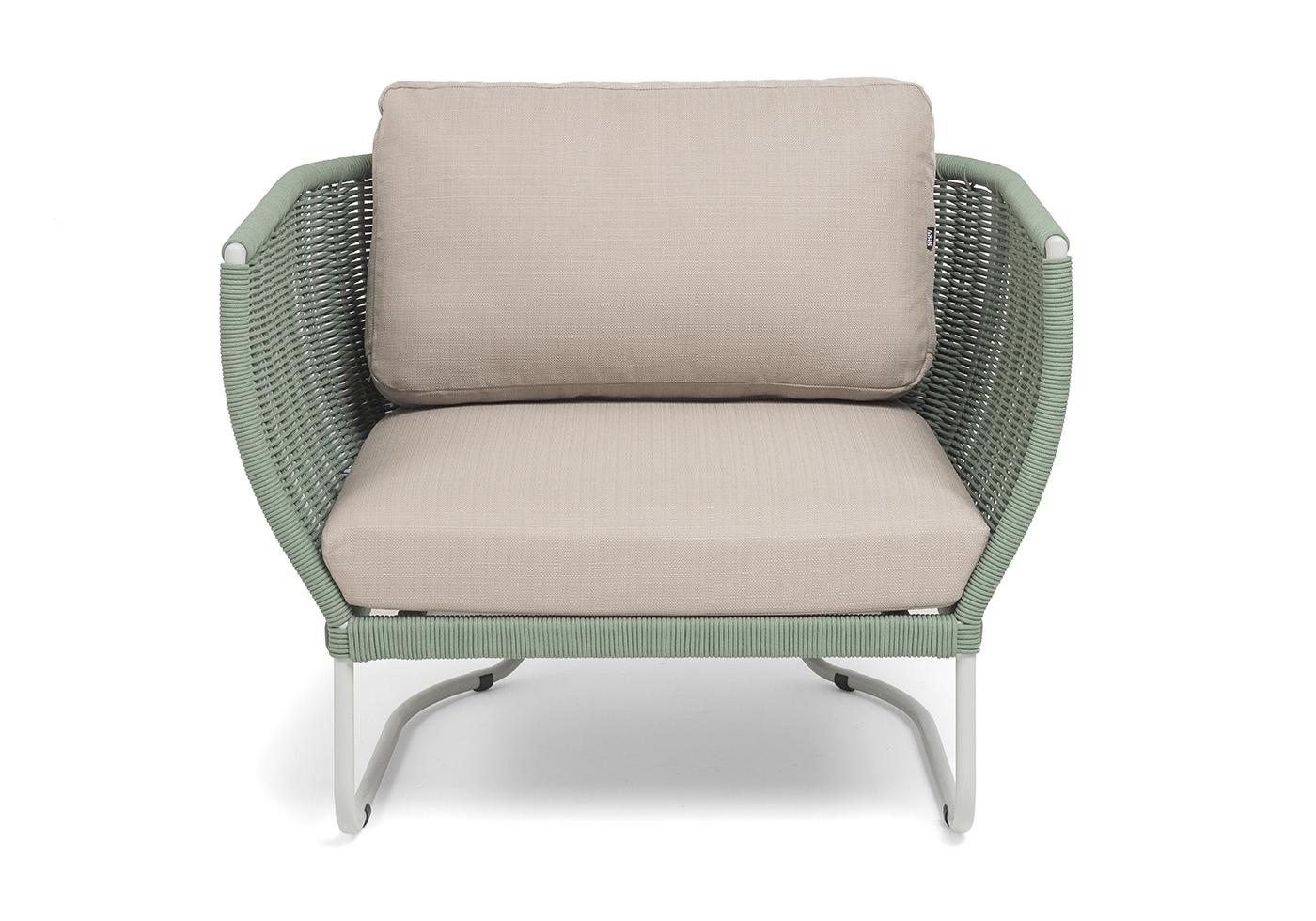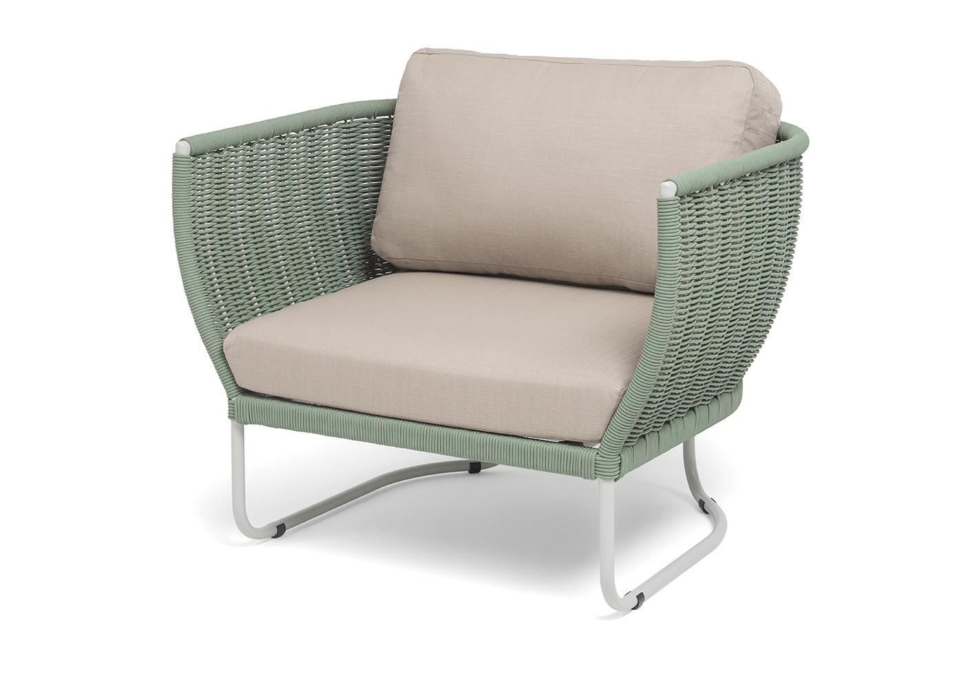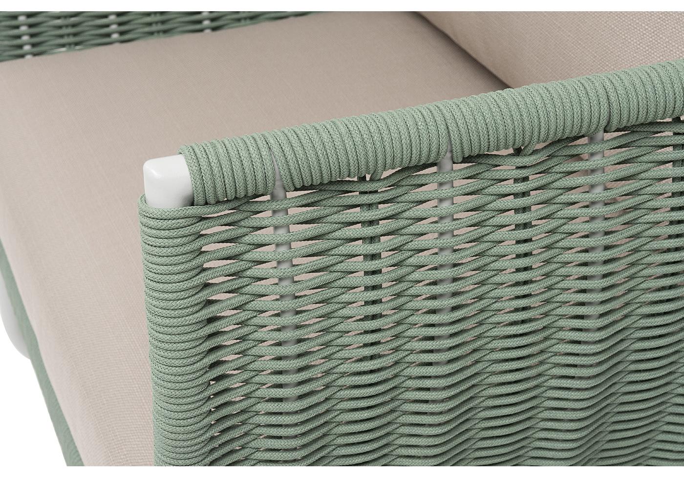 "Фиджи" кресло плетеное из роупа, каркас алюминий светло-серый (RAL7035) муар, роуп зеленый (4204) круглый tex, ткань Mossle бежевая