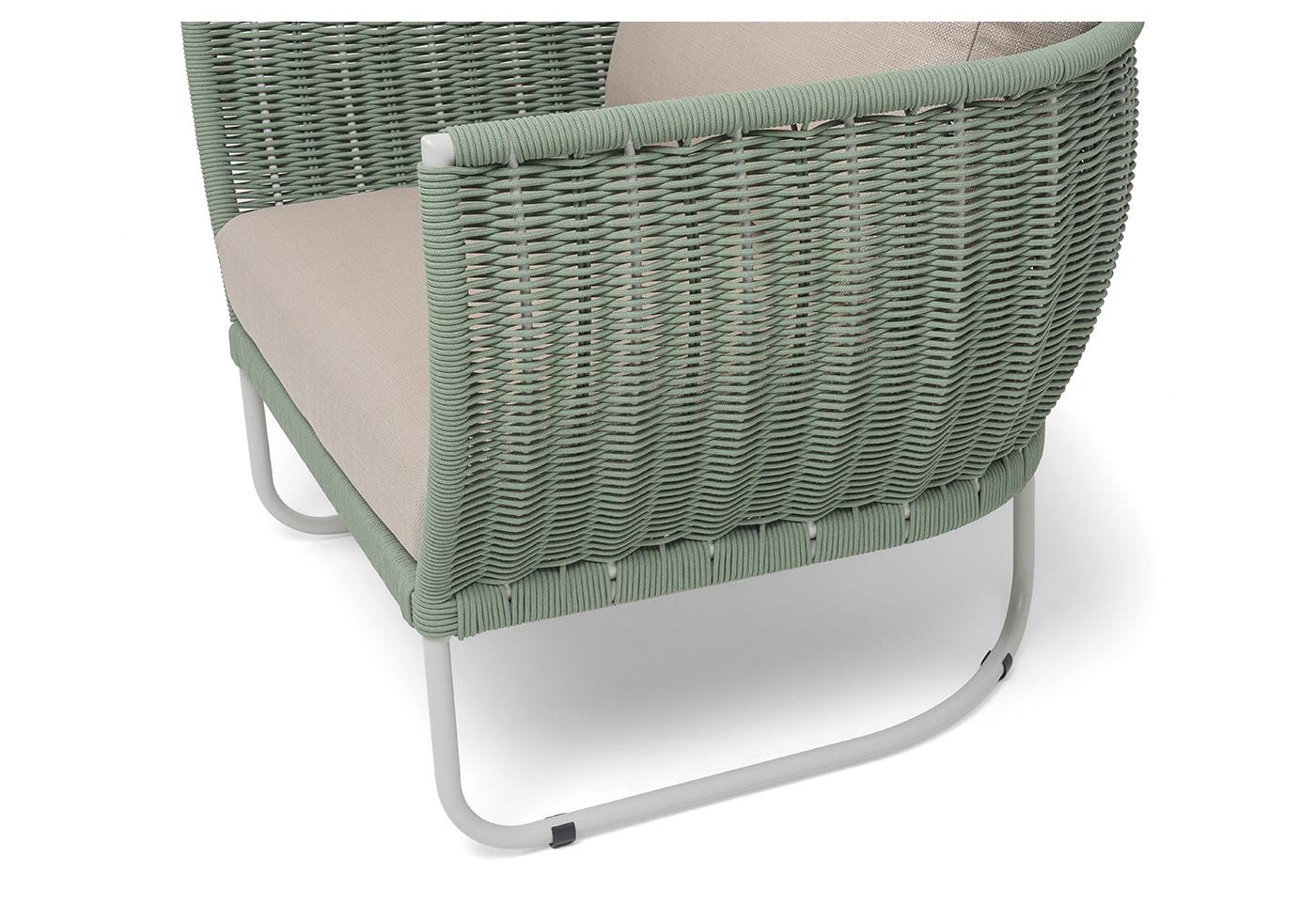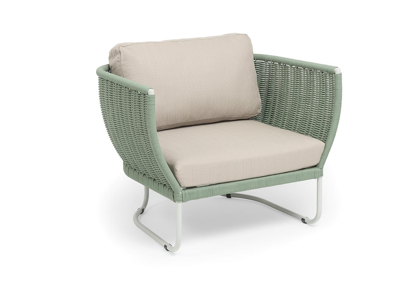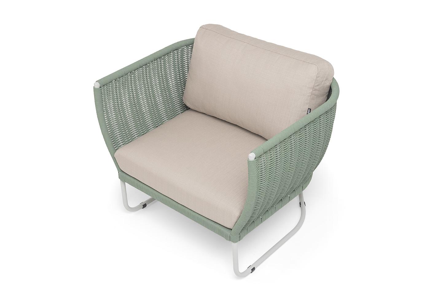 "Фиджи" кресло плетеное из роупа, каркас алюминий светло-серый (RAL7035) муар, роуп зеленый (4204) круглый tex, ткань Mossle бежевая