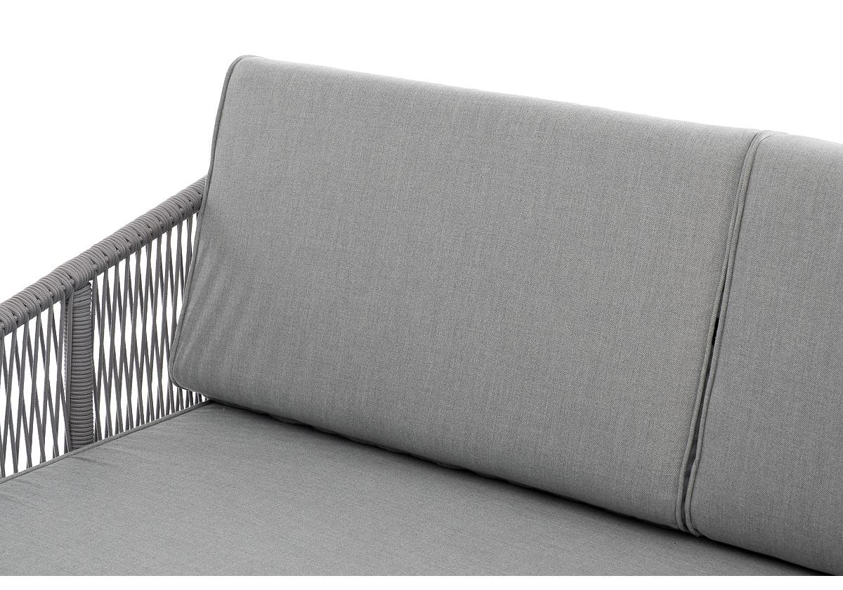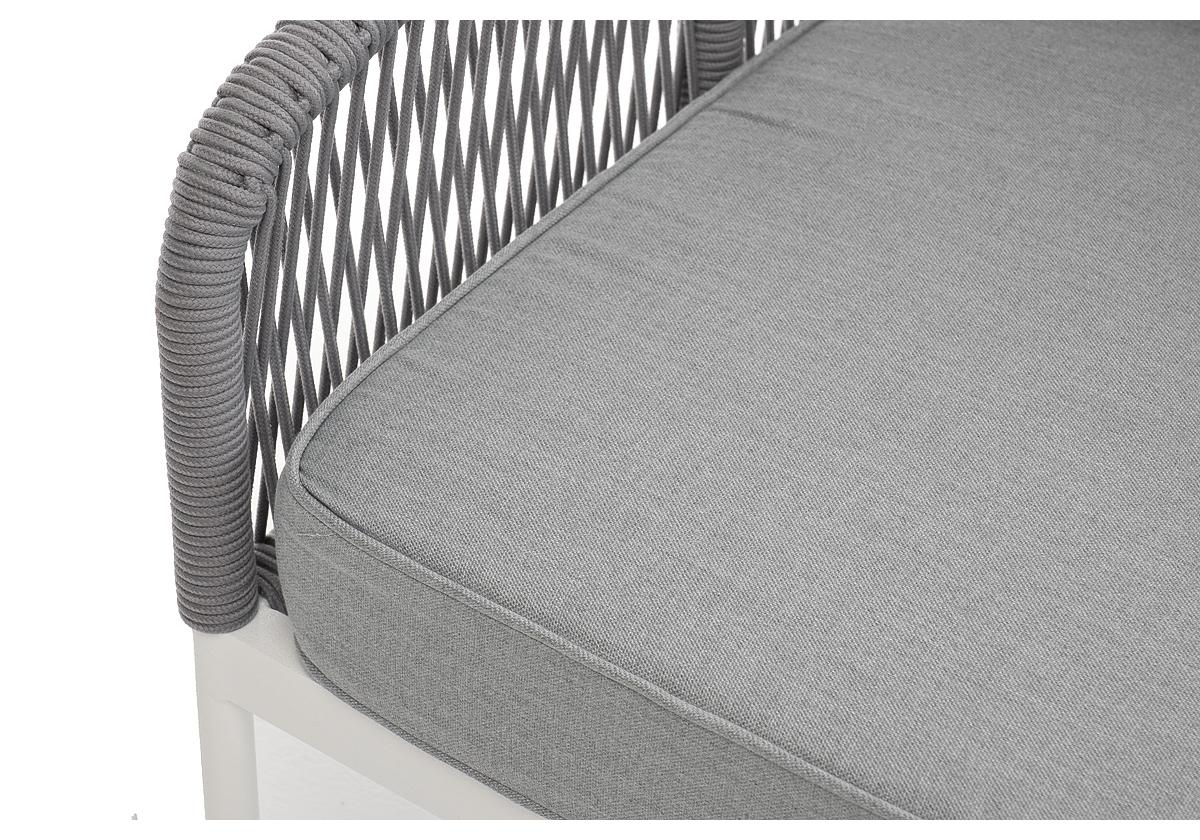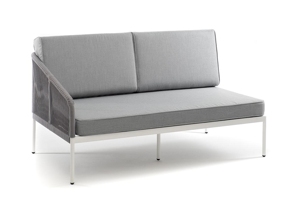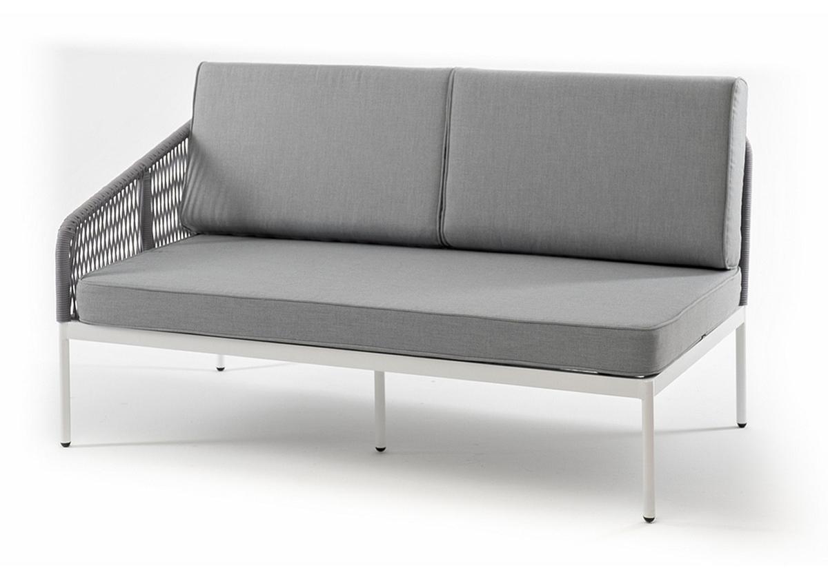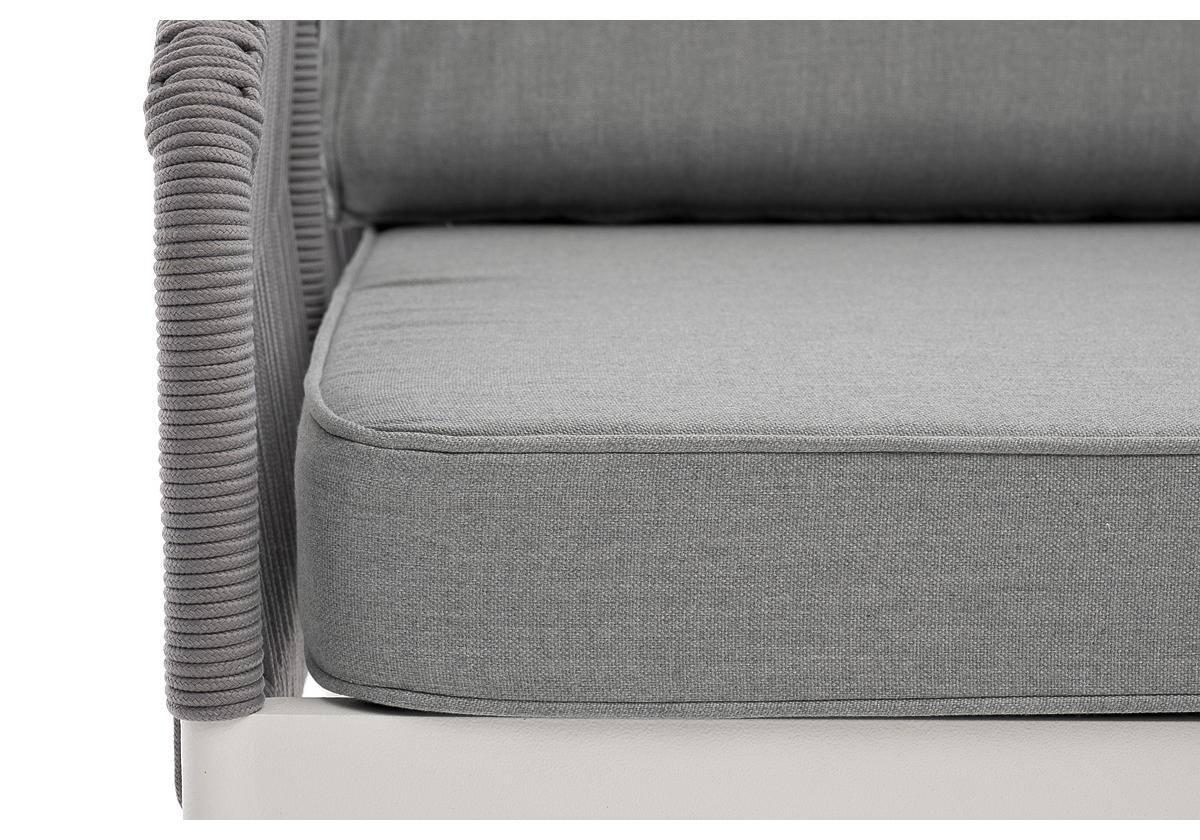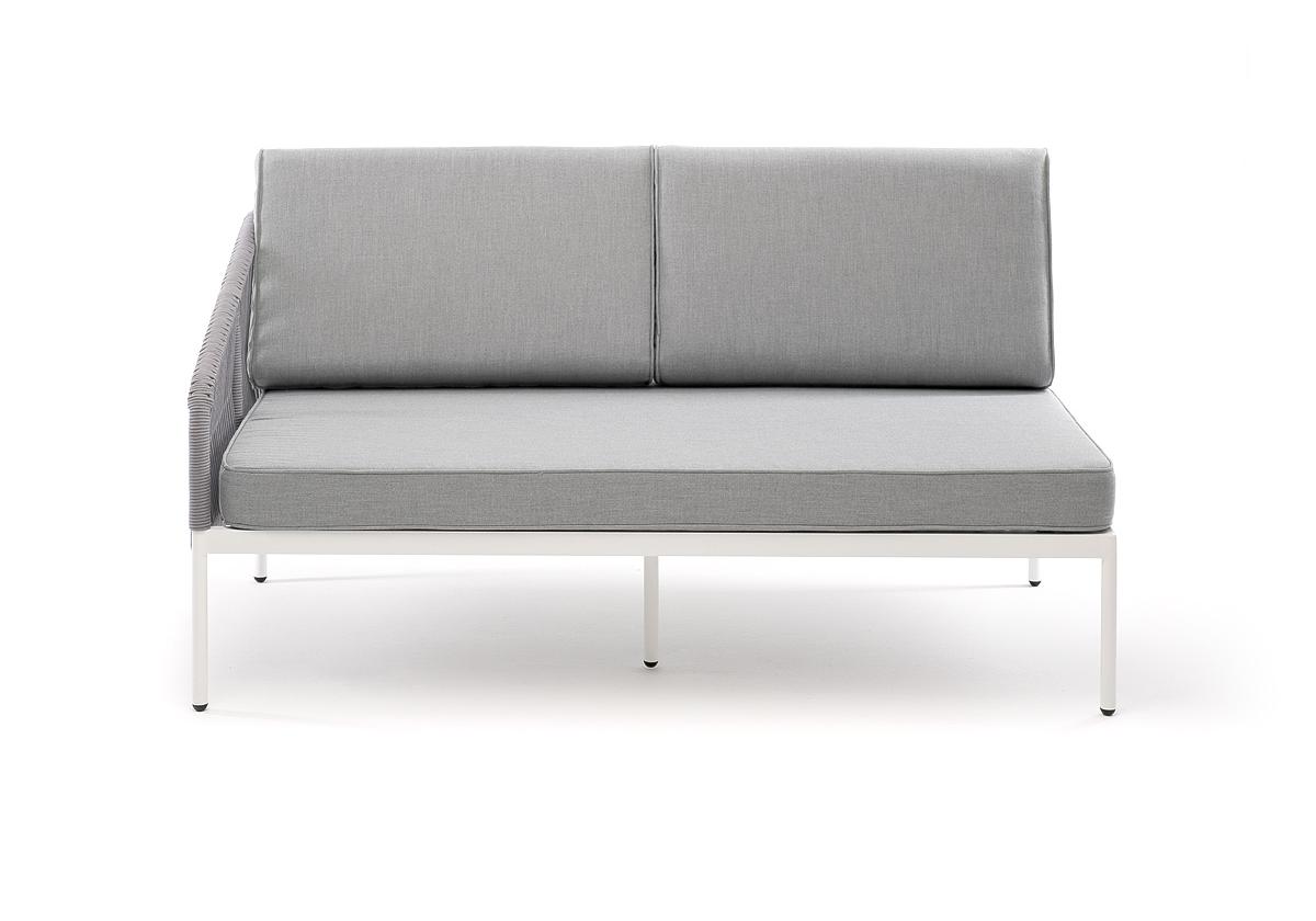 "Канны" правый модуль плетеный из роупа, каркас алюминий белый муар, роуп светло-серый круглый, ткань светло-серая