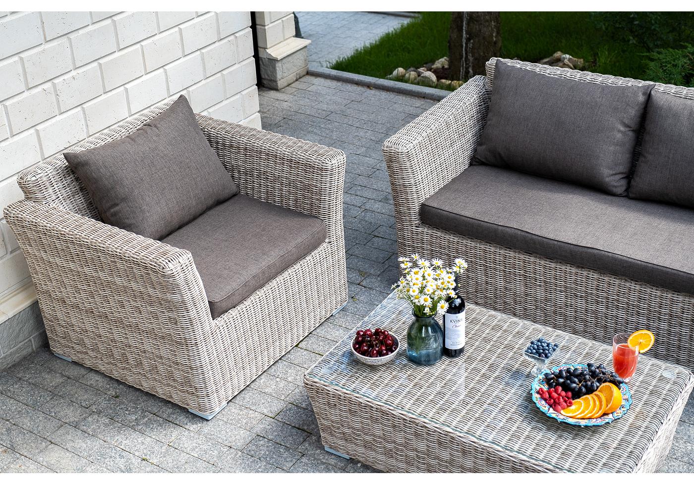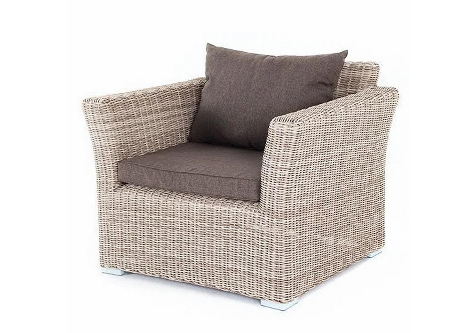 Кресло из круглого искусственного ротанга «Капучино» бежевого цвета, отлично вписывается в садовый антураж. В основе - прочный алюминиевый каркас, который отвечает за надежность конструкции.