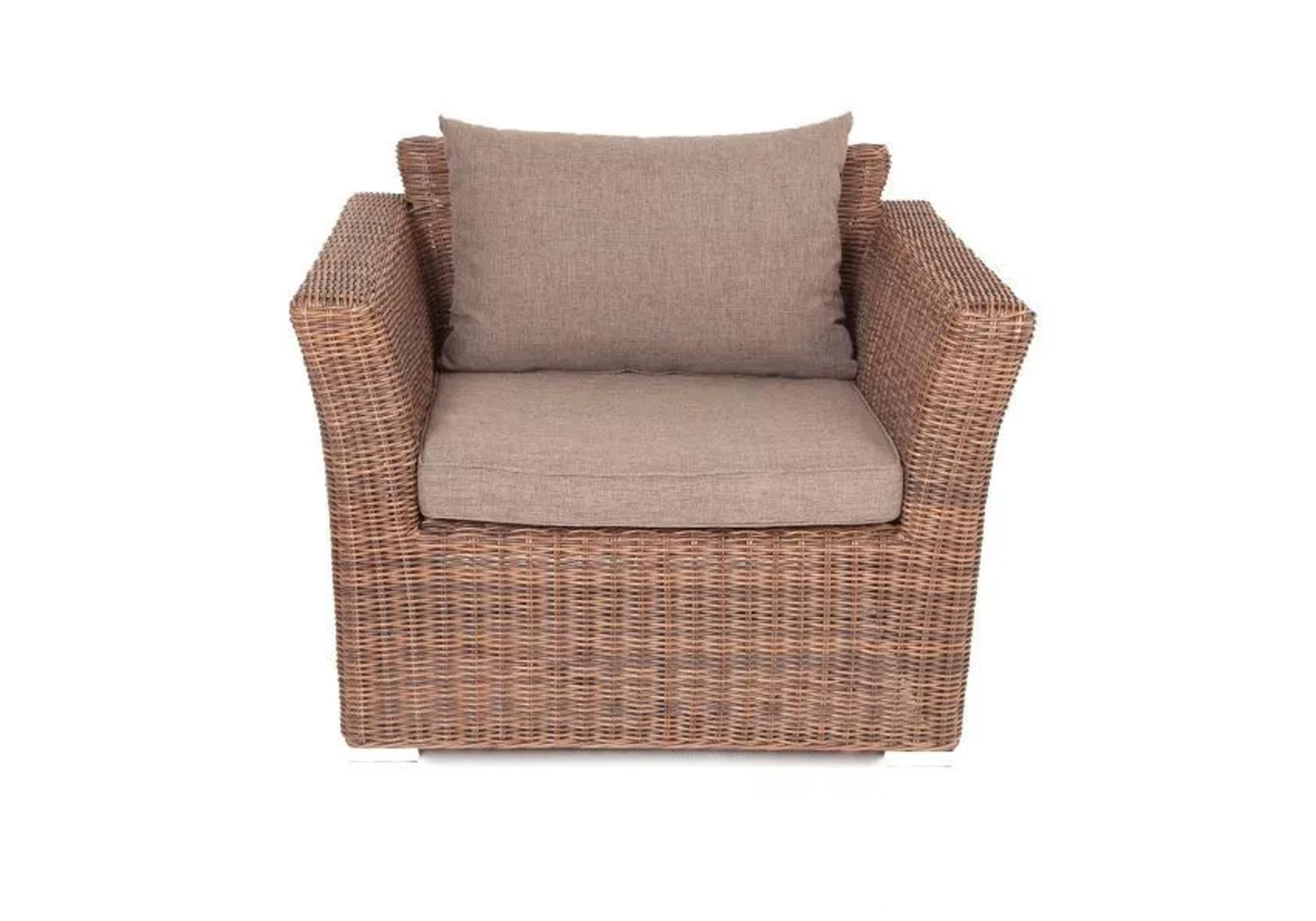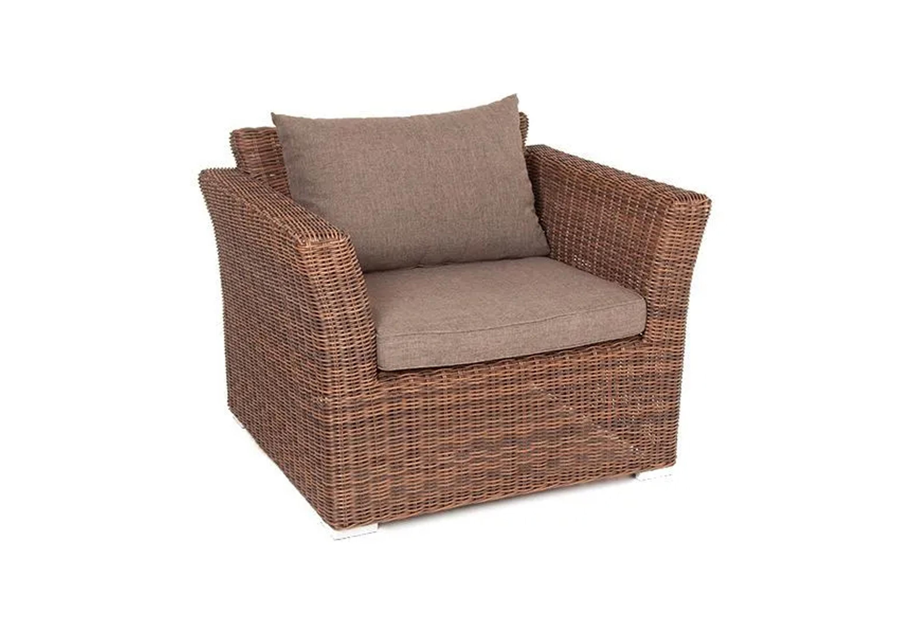 Плетеное кресло «Капучино» дает возможность комфортно провести время в зоне отдыха. Размер модели – 1040×865×815 мм.