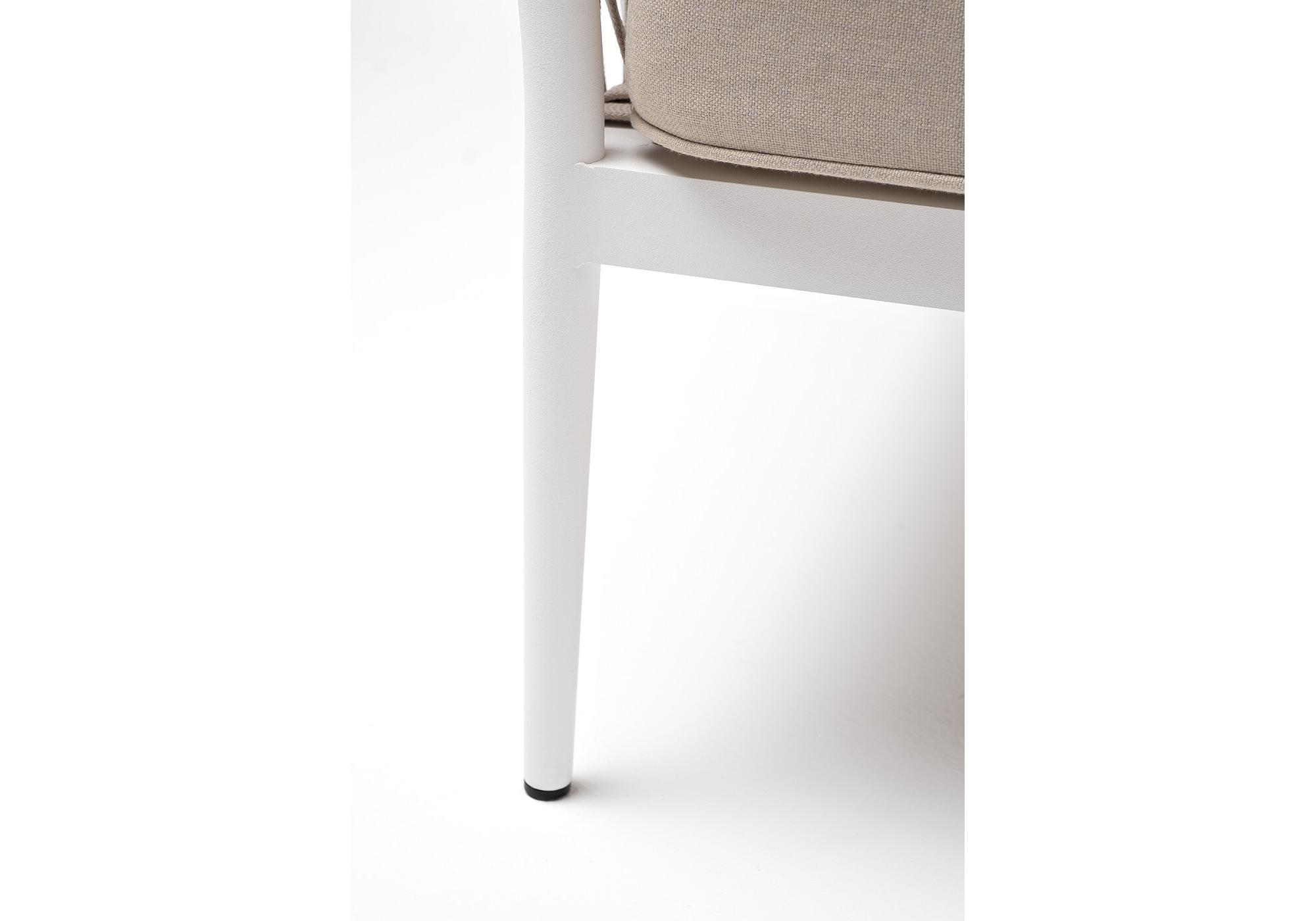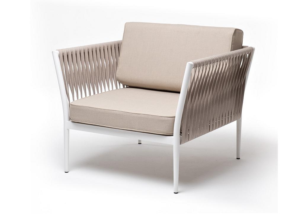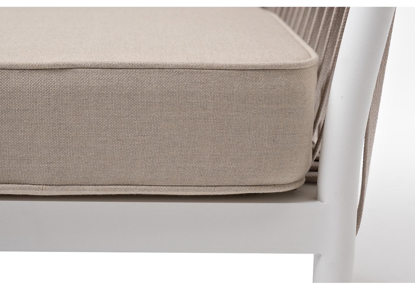 "Касабланка" кресло плетеное из роупа, каркас алюминий белый муар, роуп бежевый 20мм, ткань бежевая 15052