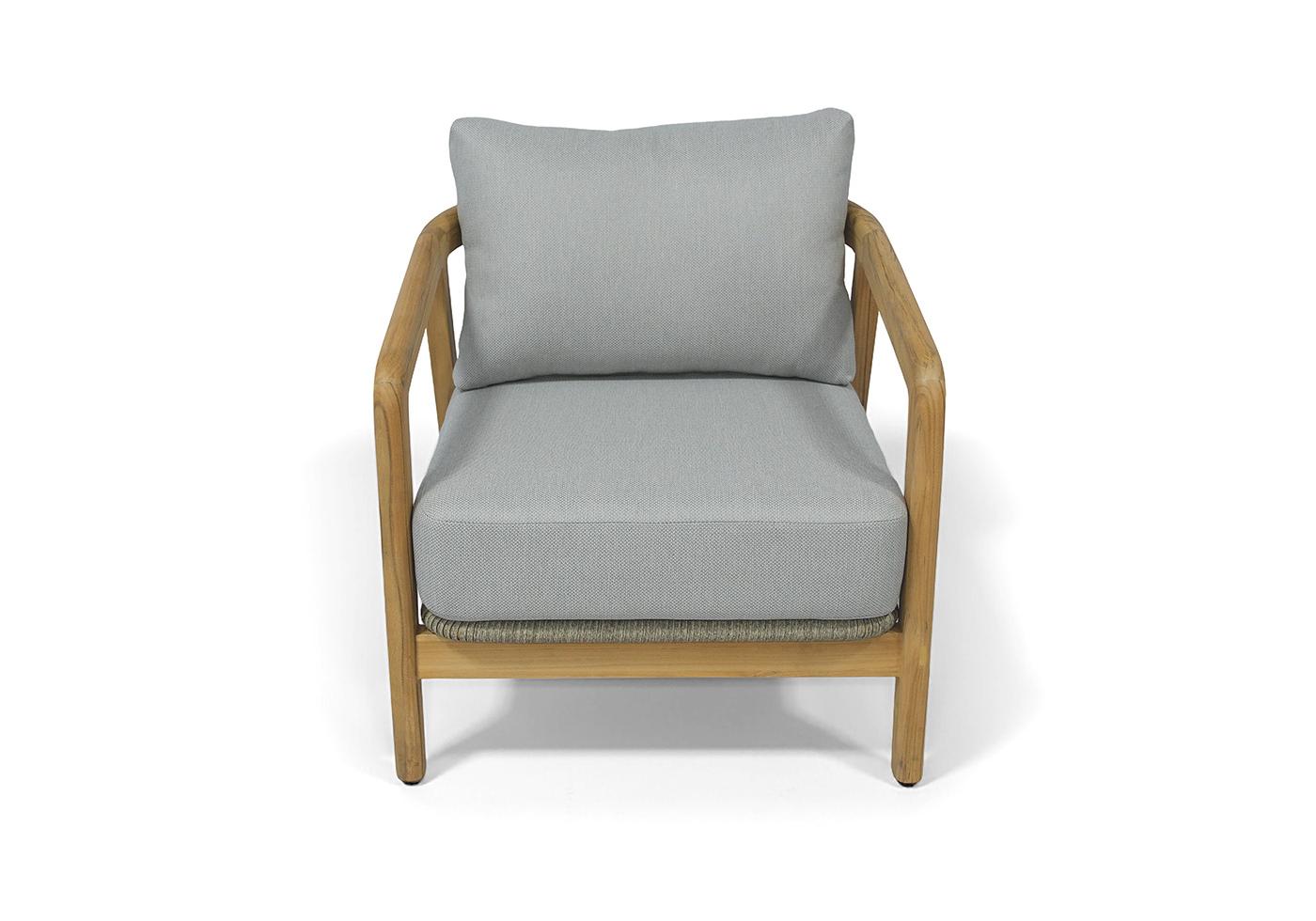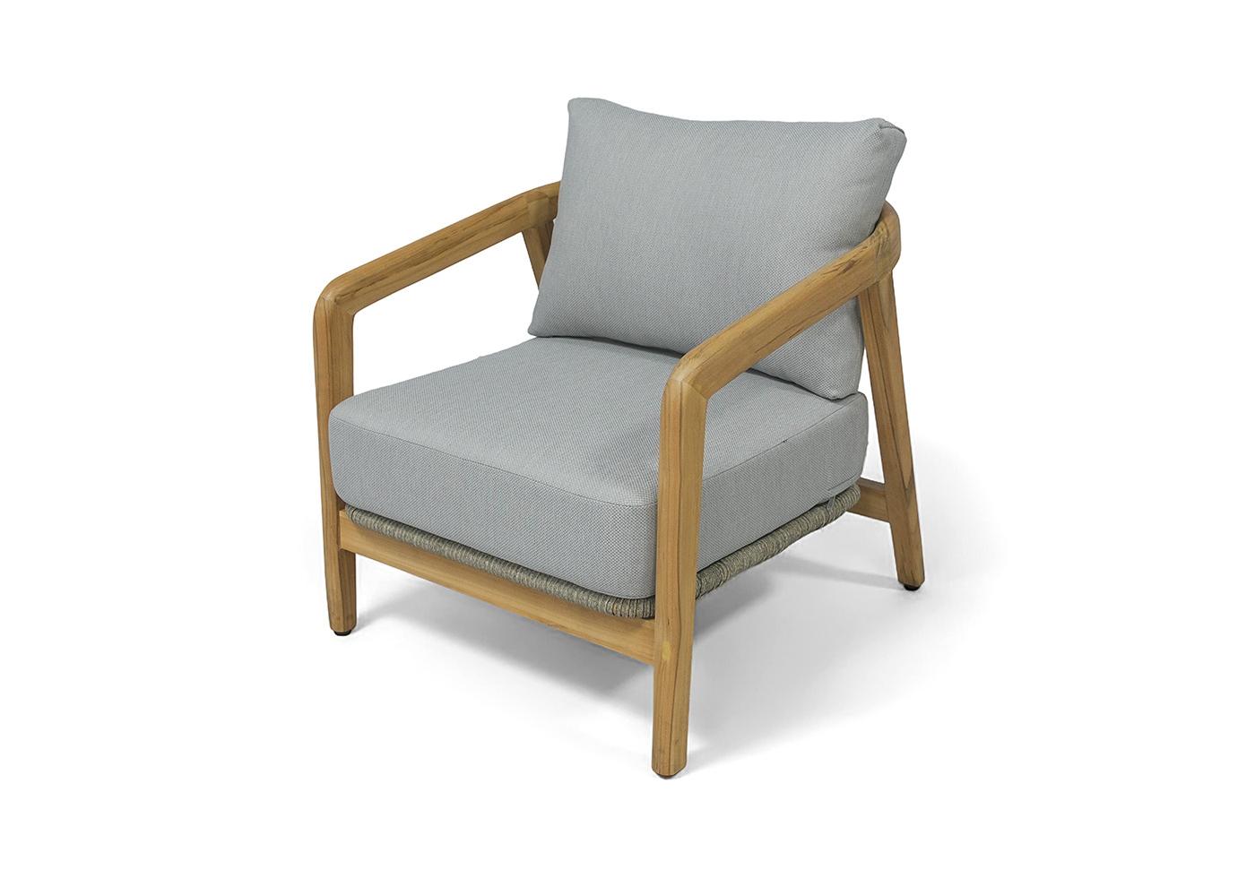 Каркас выполнен из тика — благородной древесины, известной своей прочностью, устойчивостью к внешним воздействиям и изысканной текстурой. Тёплый древесный оттенок подчёркивает природную эстетику мебели.