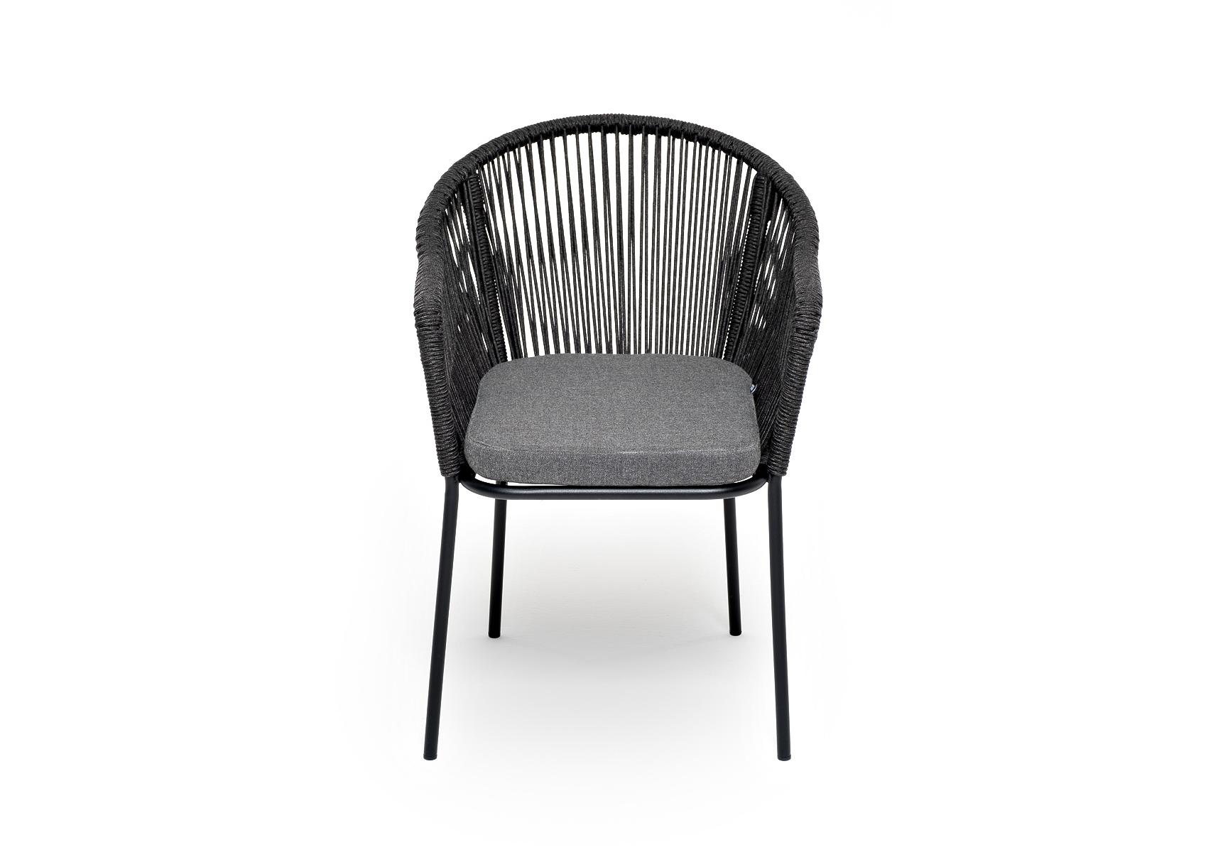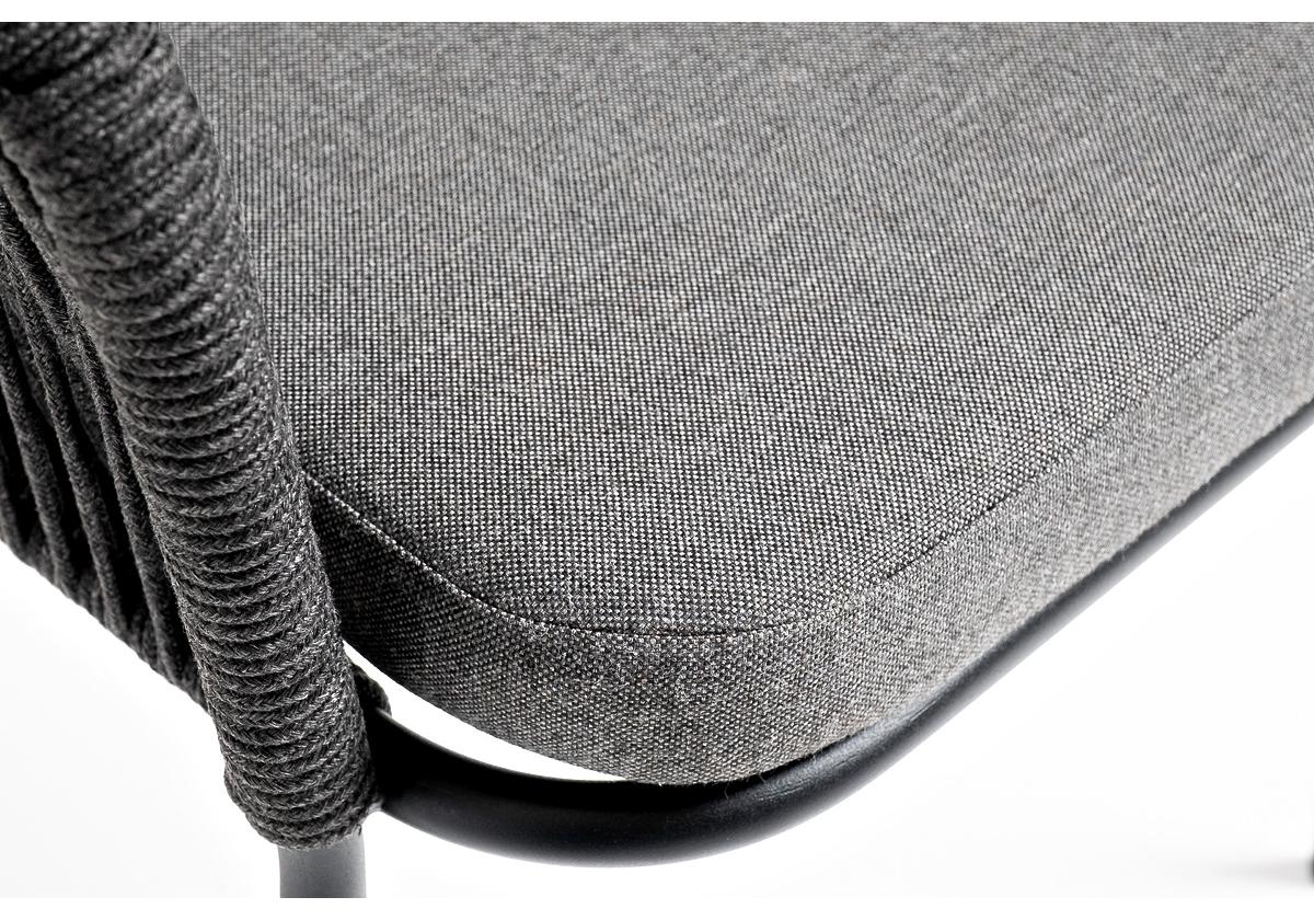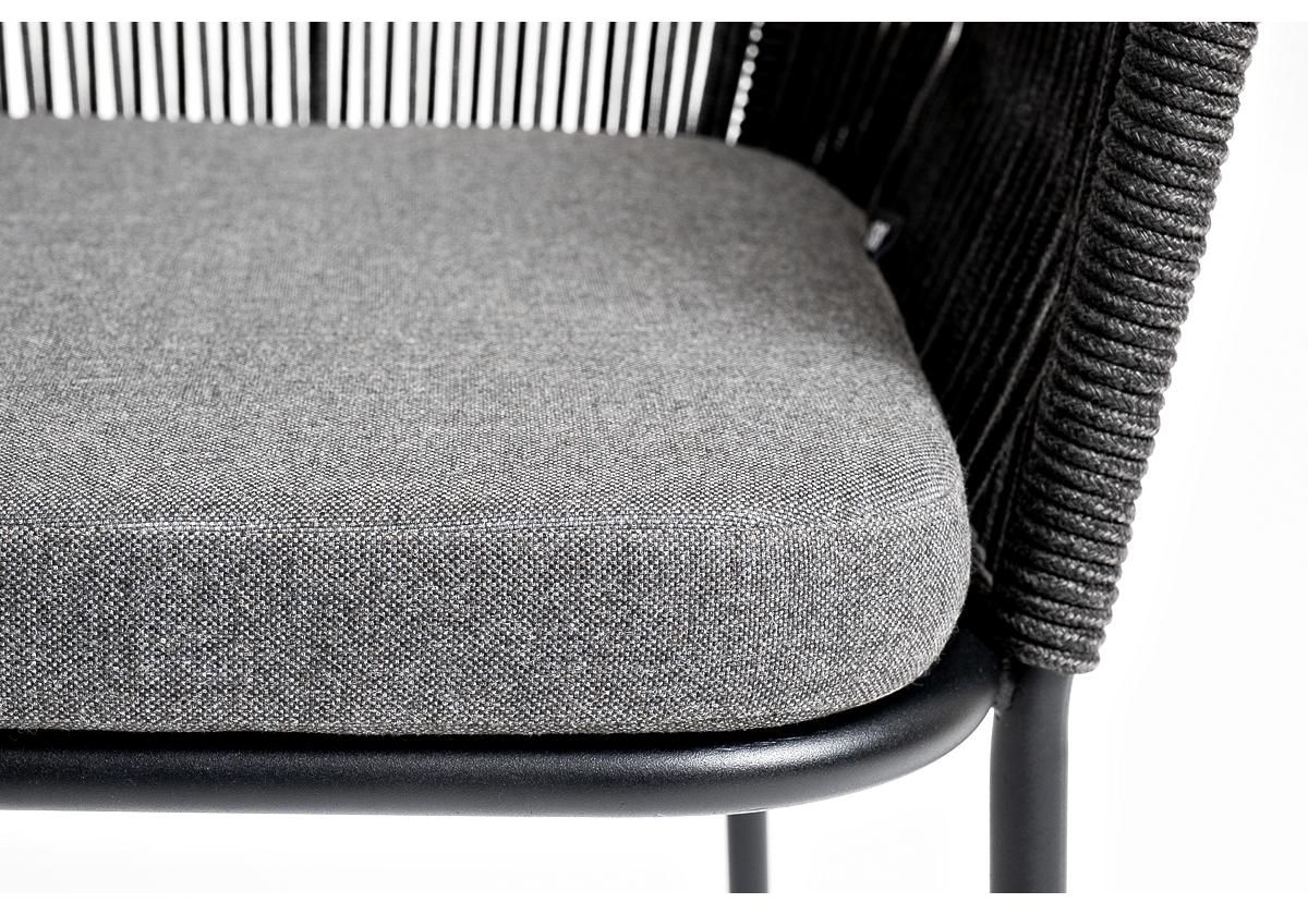 "Лион" стул плетеный из роупа, каркас алюминий темно-серый (RAL7024) муар, роуп темно-серый круглый, ткань темно-серая 027