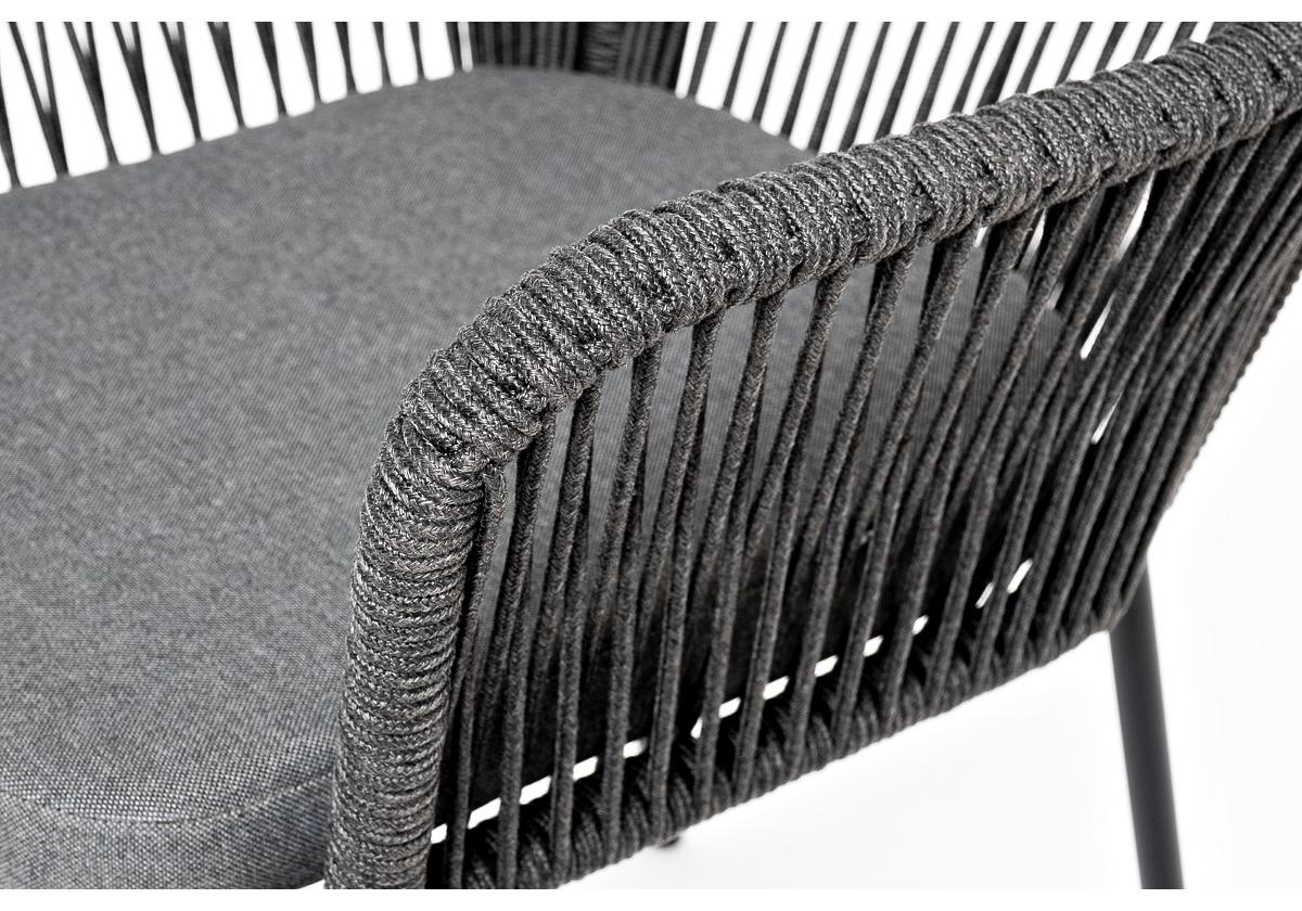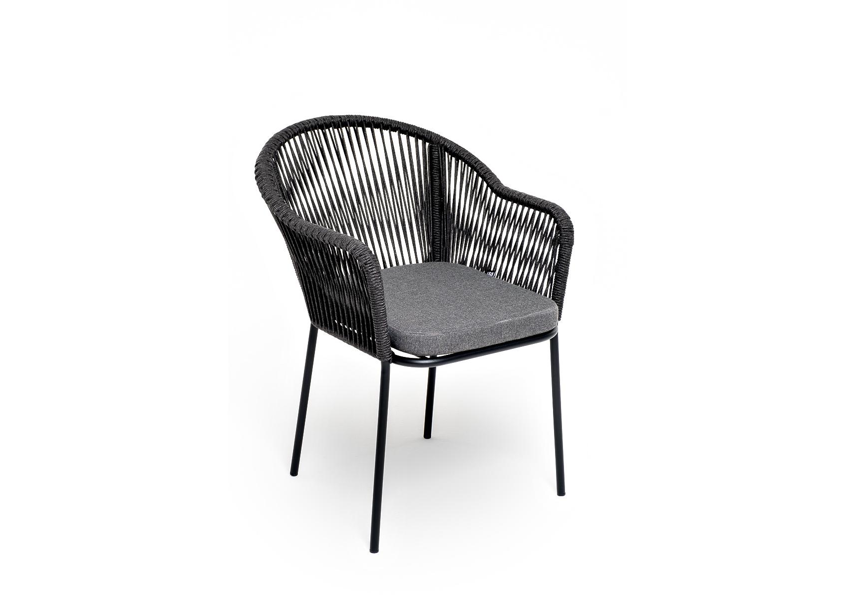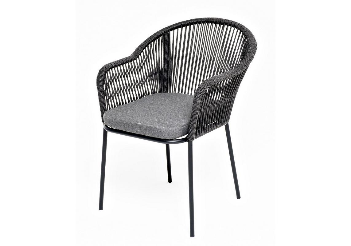 "Лион" стул плетеный из роупа, каркас алюминий темно-серый (RAL7024) муар, роуп темно-серый круглый, ткань темно-серая 027