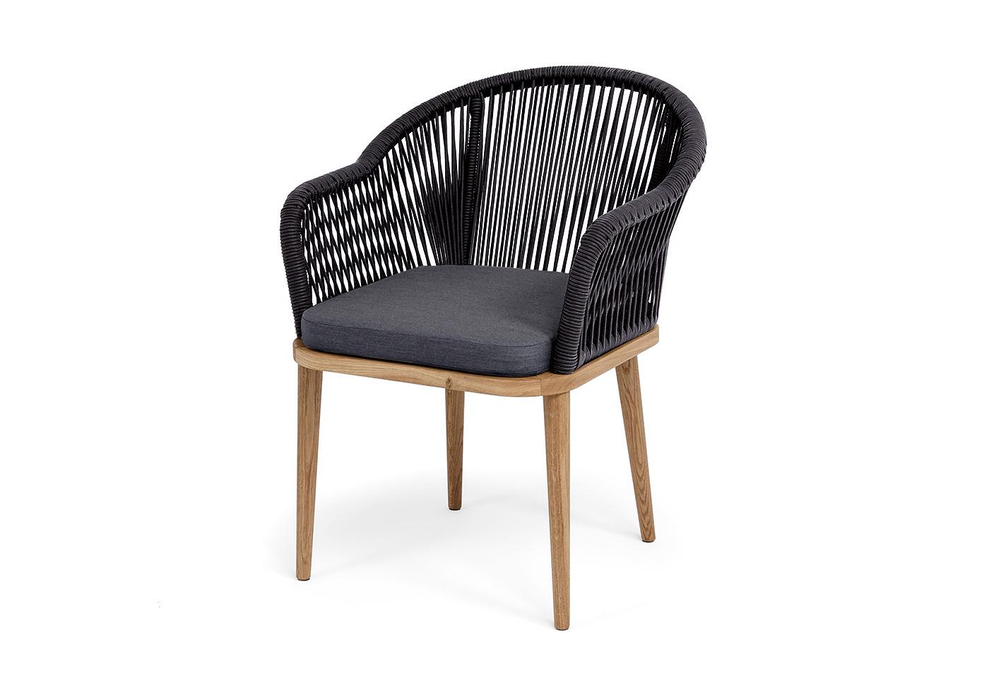 "Лион" стул плетеный из роупа, основание дуб, роуп темно-серый круглый, ткань темно-серая 027