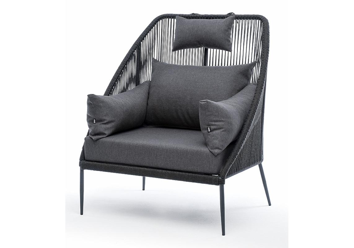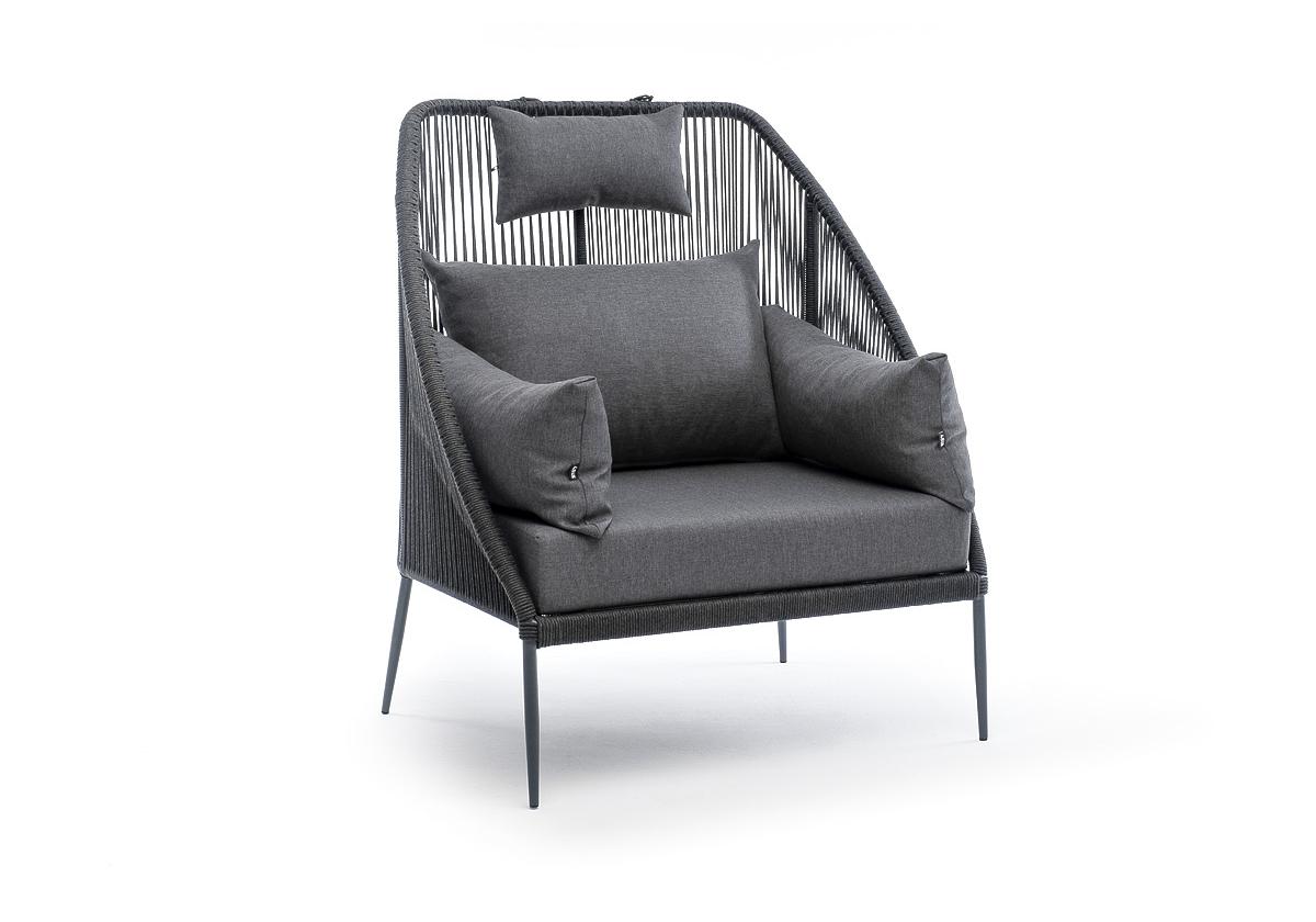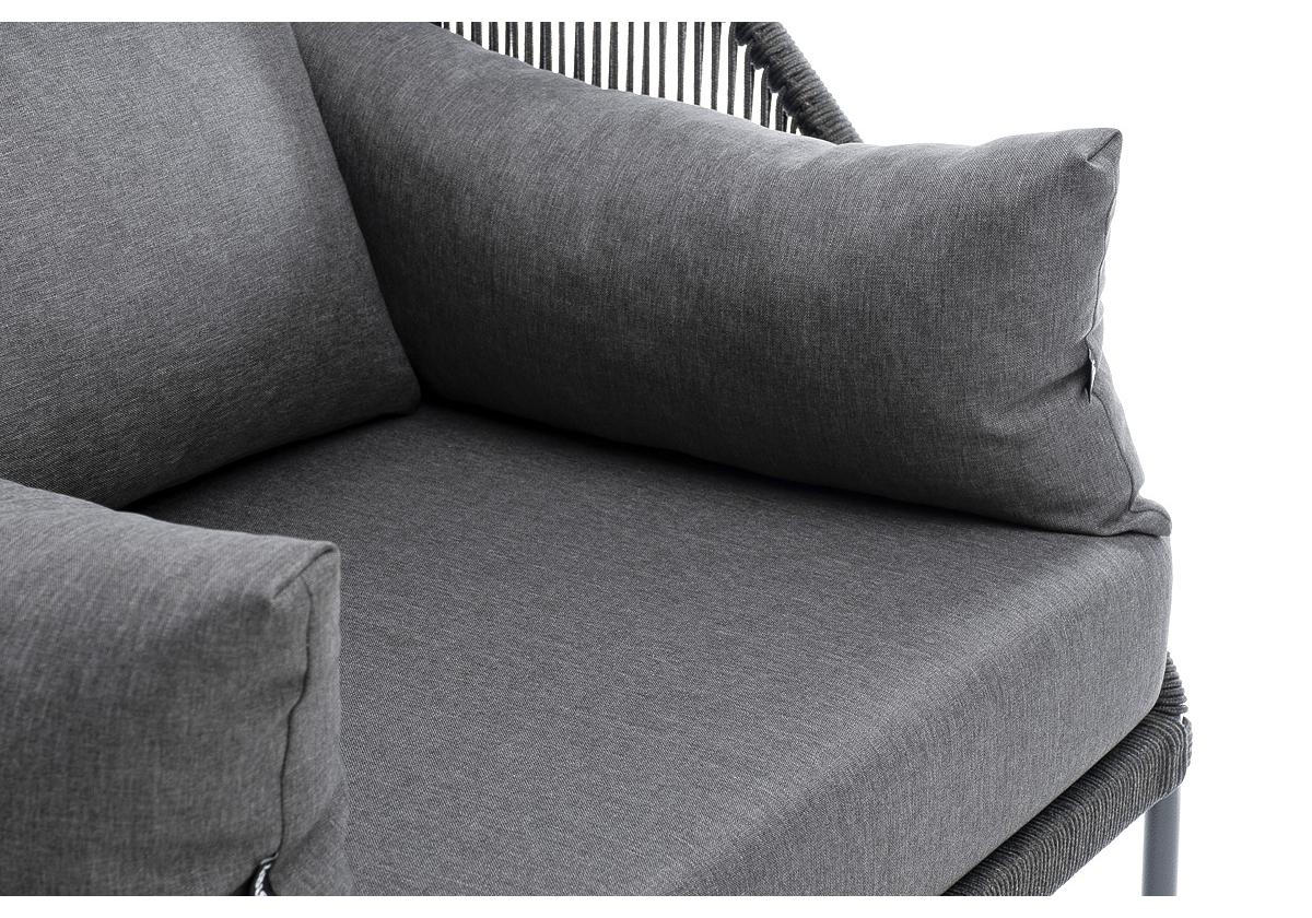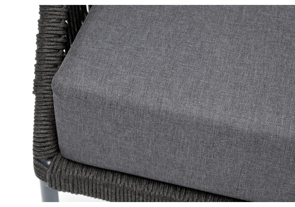 "Мадрид" кресло плетеное из роупа, каркас алюминий темно-серый (RAL7024) муар, роуп темно-серый круглый, ткань темно-серая 027