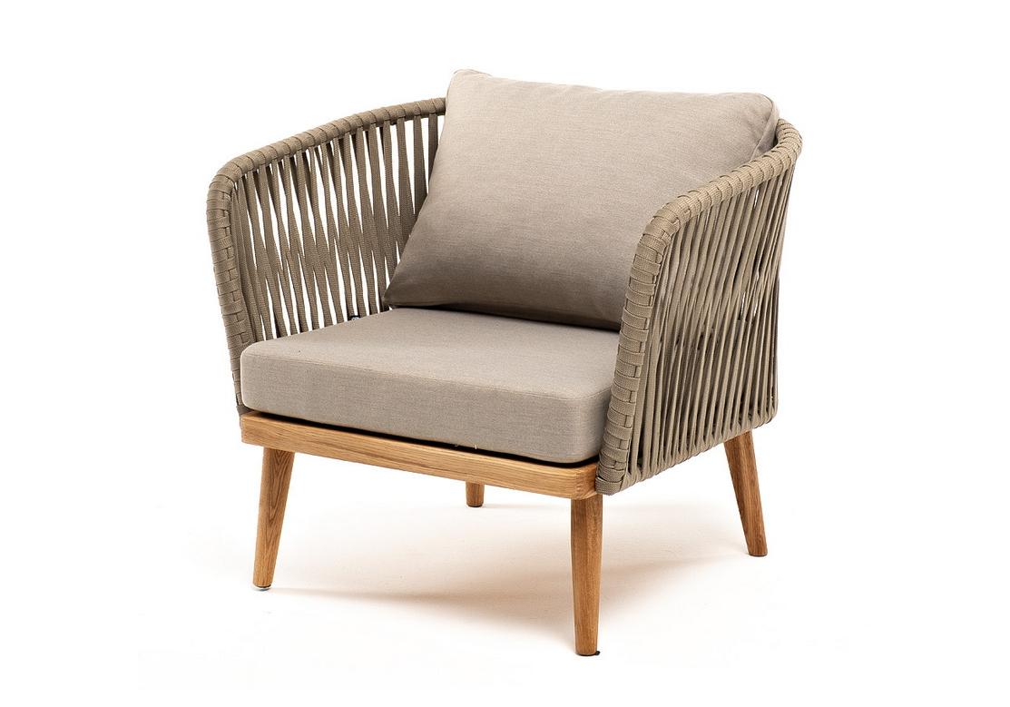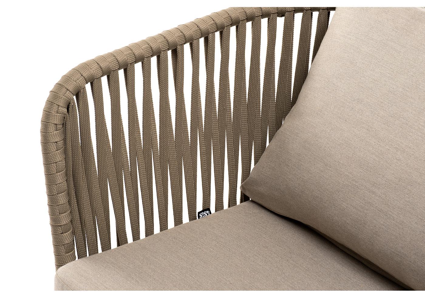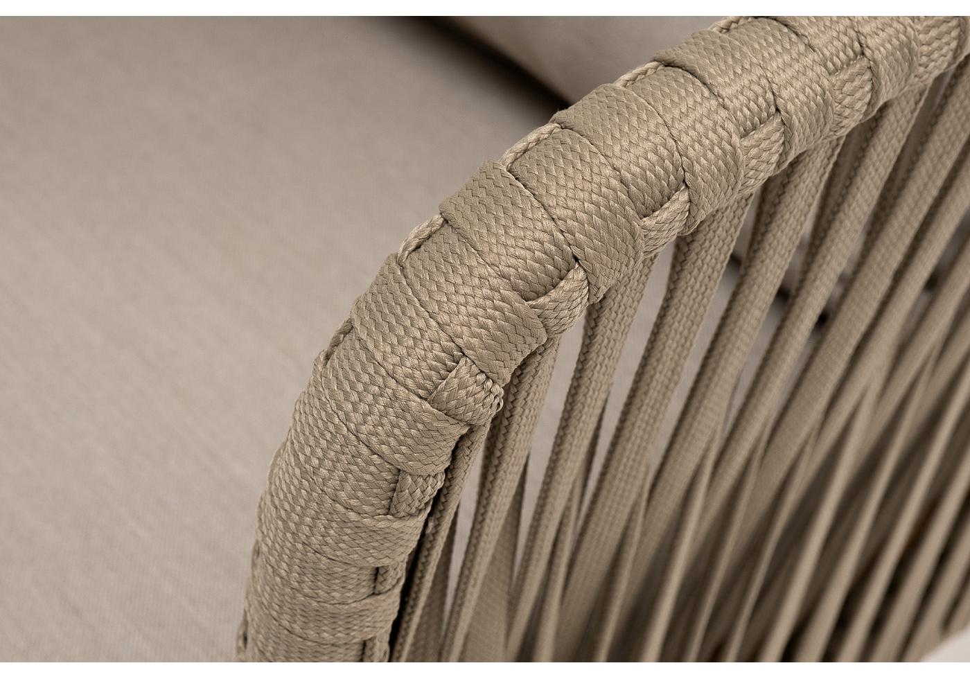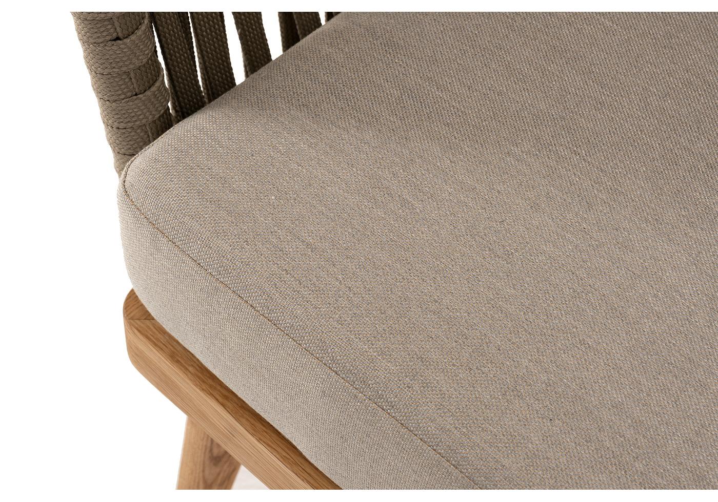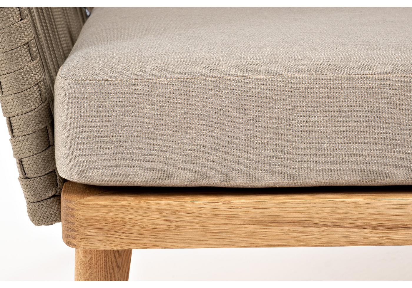 "Мальорка" кресло плетеное из роупа, основание дуб, роуп серо-коричневый 23мм, ткань бежевая 052