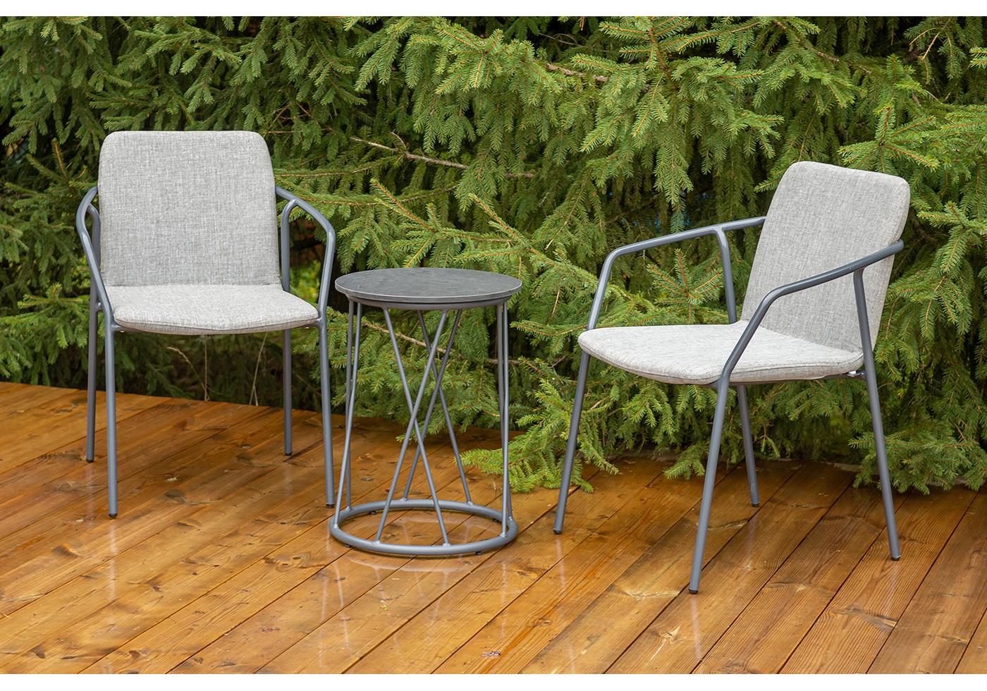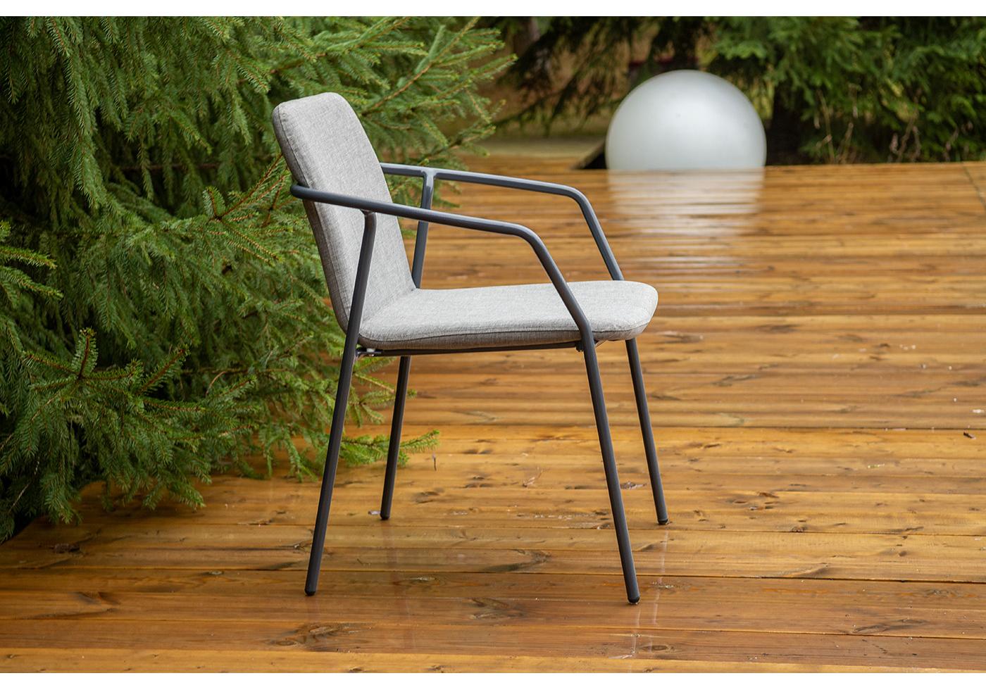 Стул «Марокко» изготовлен из современного материала — текстилена Nanotex. Каркас выполнен из алюминия, окрашенного в темно‑серый цвет (RAL 7024), что обеспечивает прочность и лёгкость конструкции. Размеры стула — 575×600×800 мм. Модель отличается износостойкостью, устойчивостью к влаге и ультрафиолету, проста в уходе и подходит для использования на террасе, веранде, в кафе или загородном доме.