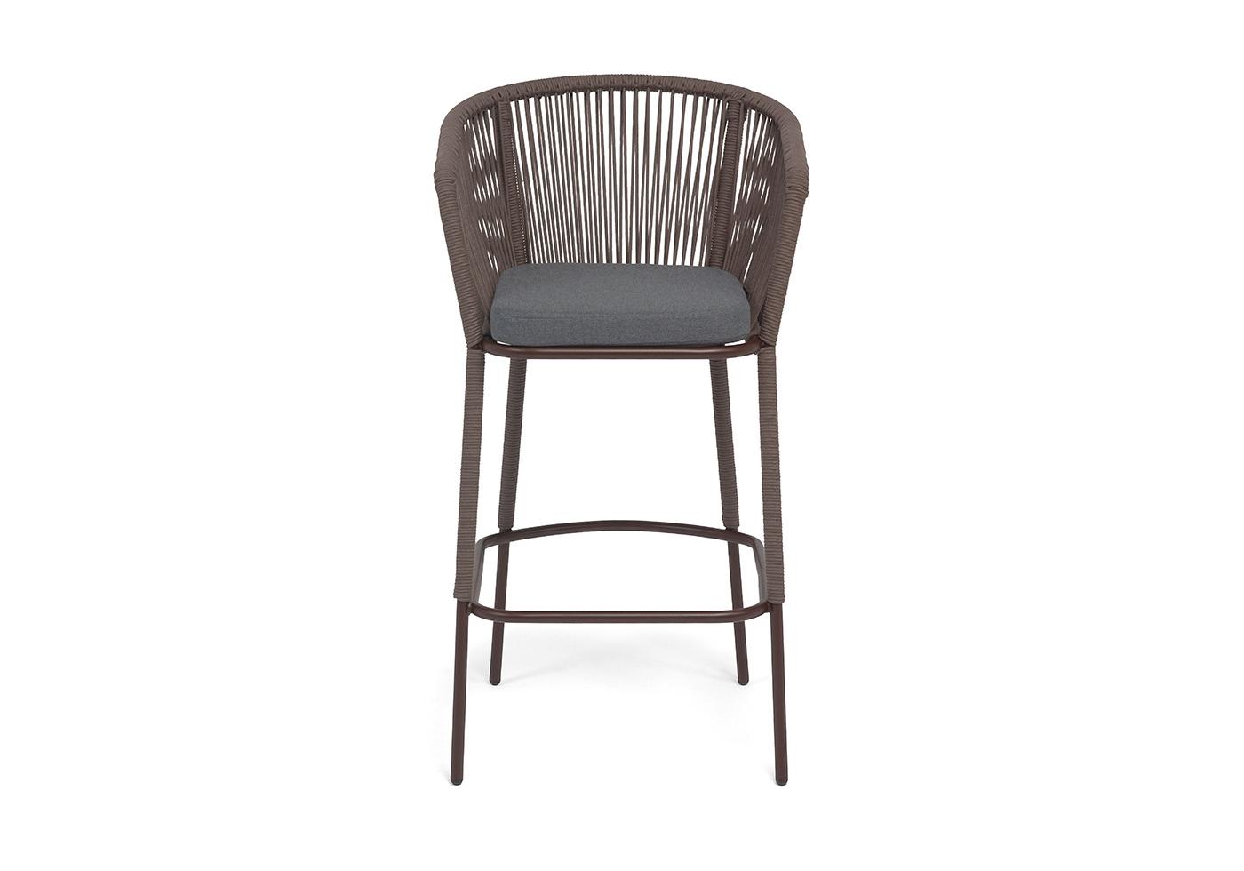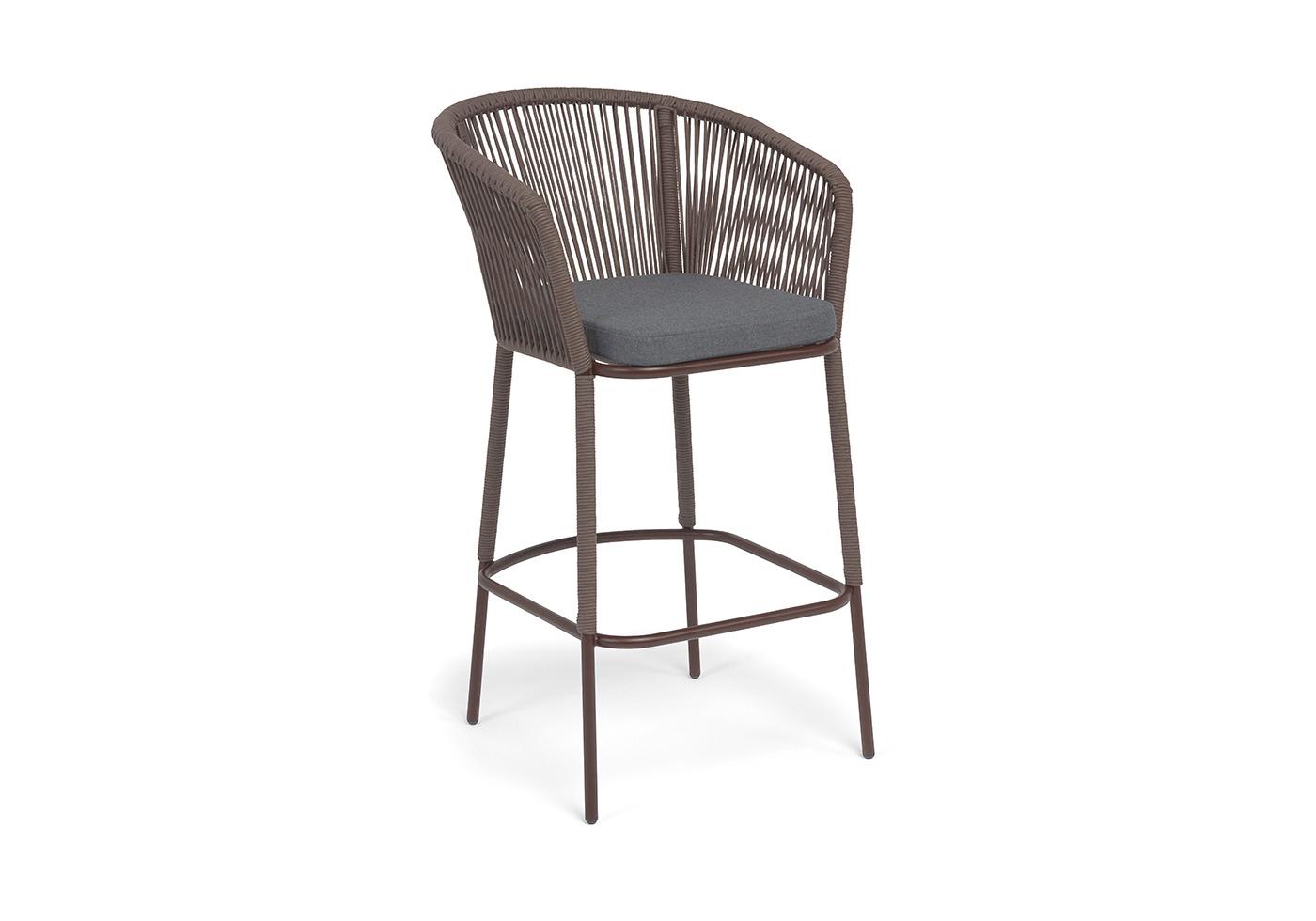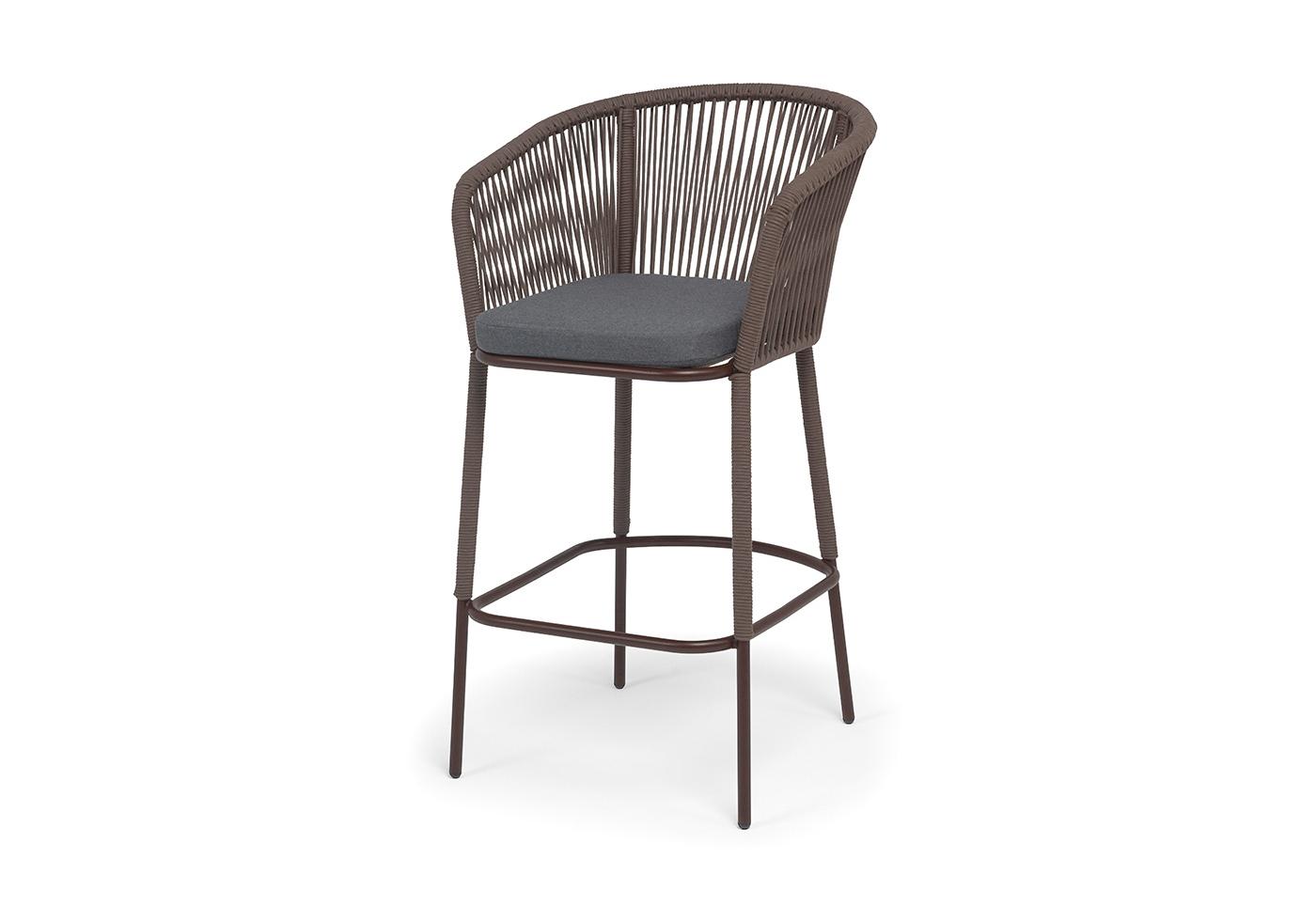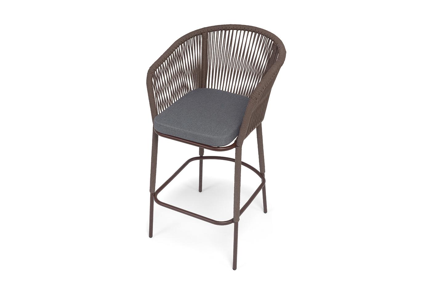"Марсель" стул барный плетеный из роупа, каркас из стали коричневый (RAL8016) муар, роуп коричневый круглый, ткань темно-серая 027 NEW