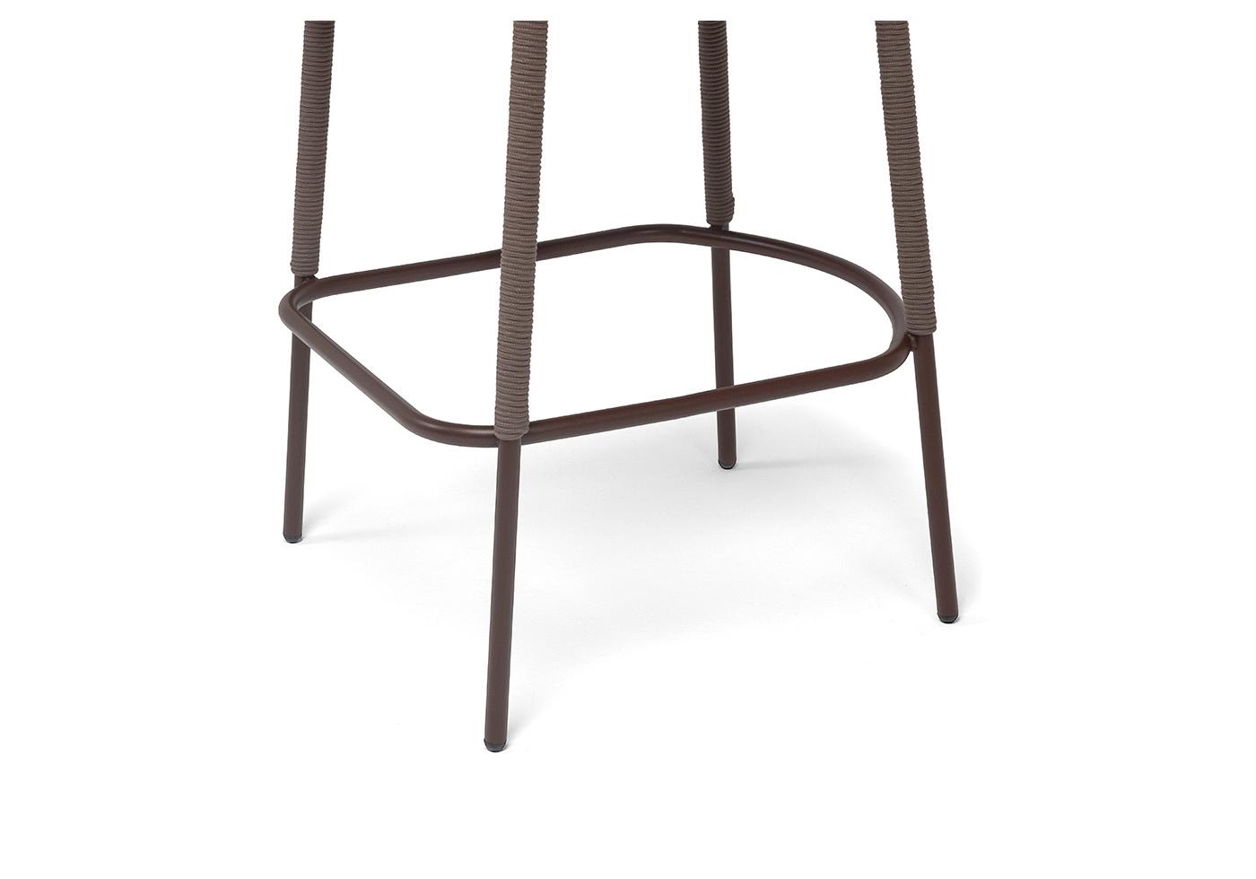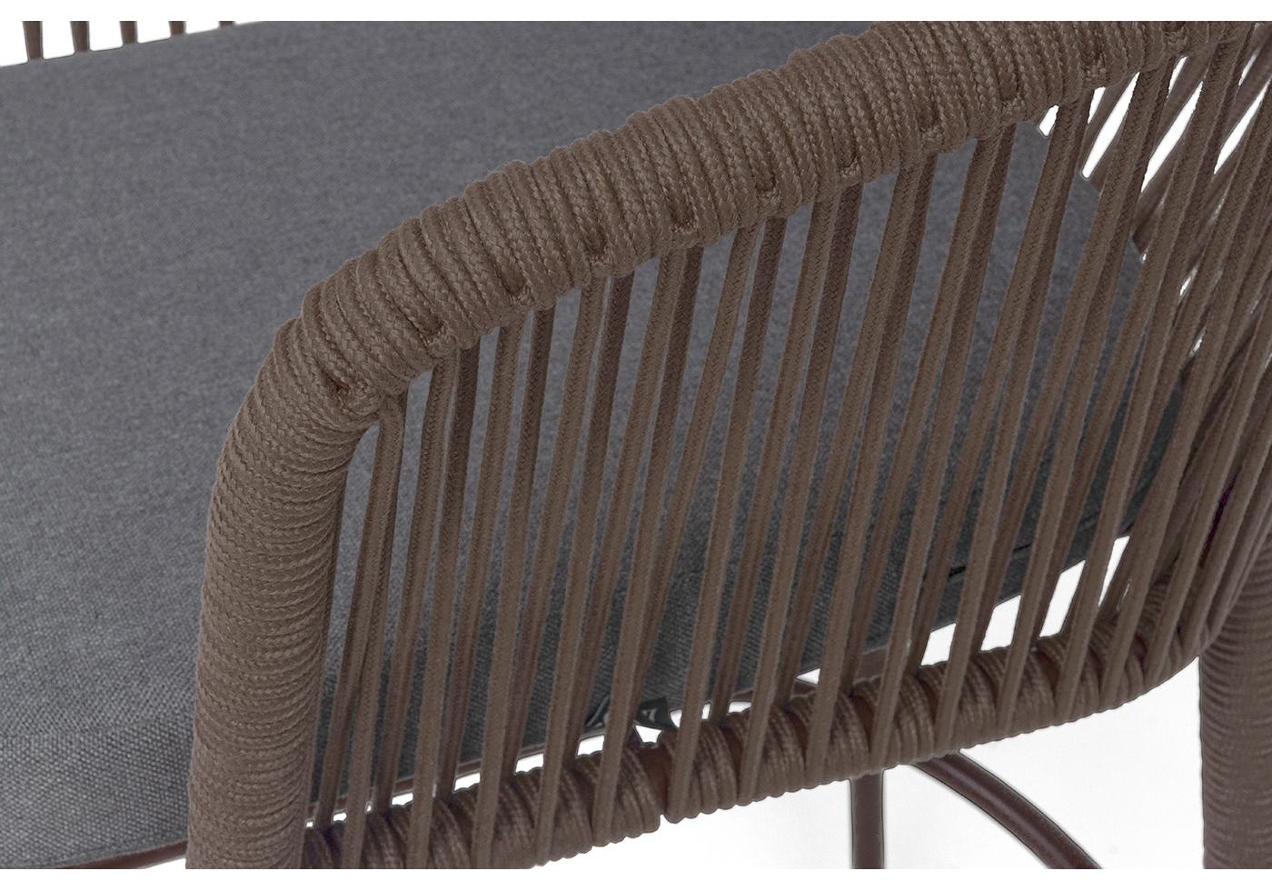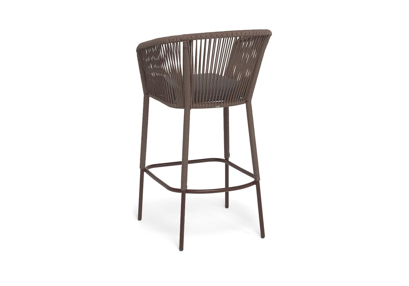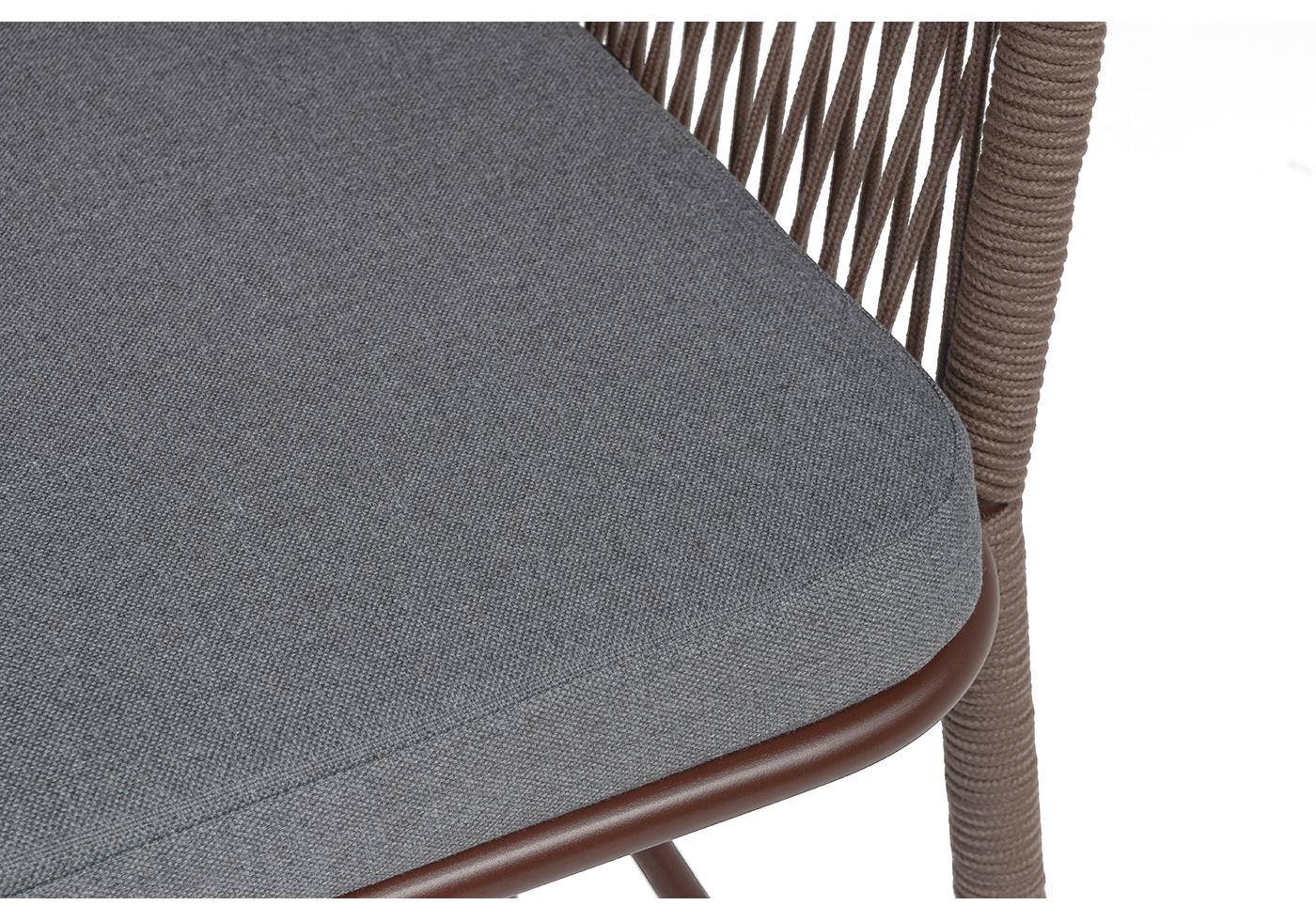 "Марсель" стул барный плетеный из роупа, каркас из стали коричневый (RAL8016) муар, роуп коричневый круглый, ткань темно-серая 027 NEW