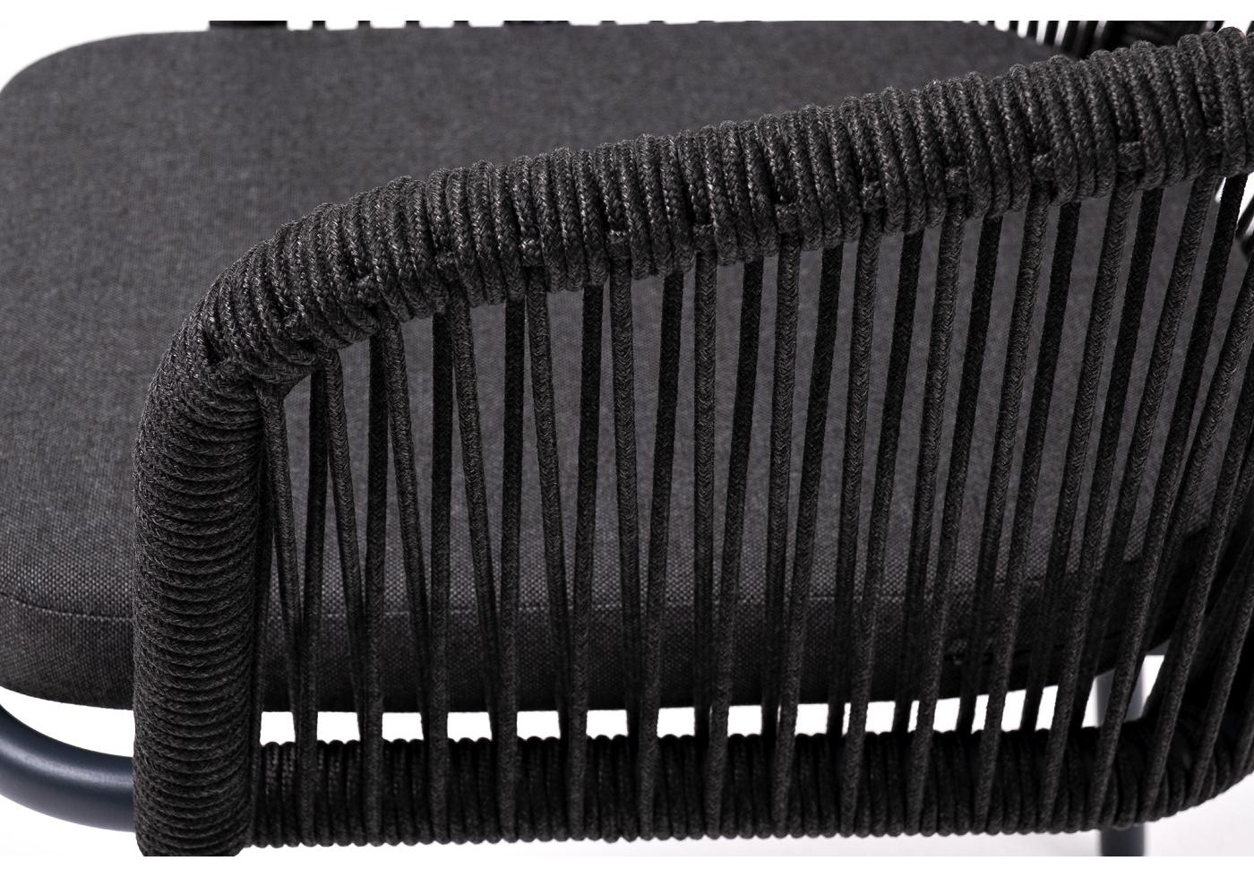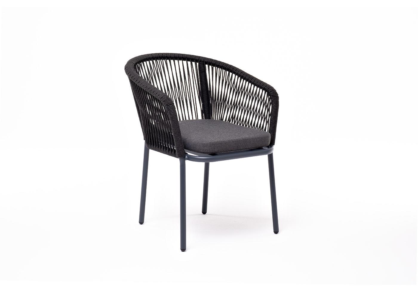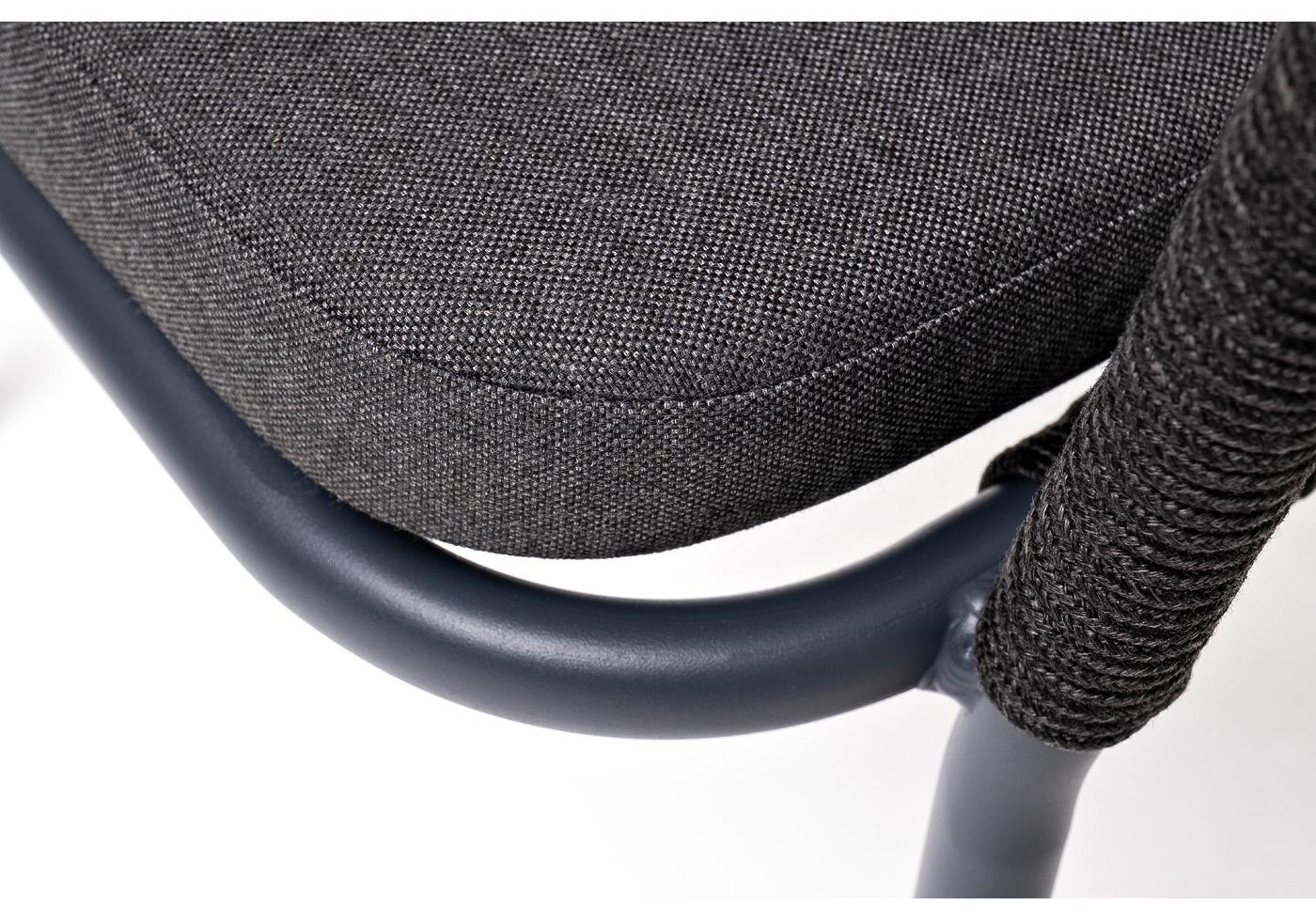 "Марсель" стул плетеный из роупа, каркас алюминий темно-серый (RAL7024) муар, роуп темно-серый круглый, ткань темно-серая 027