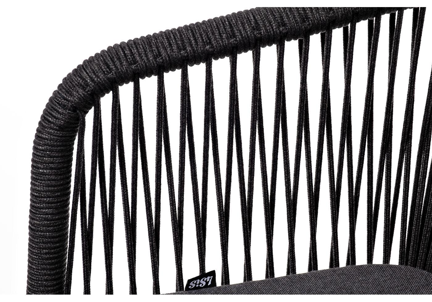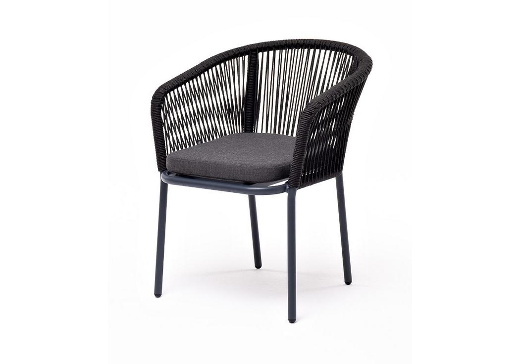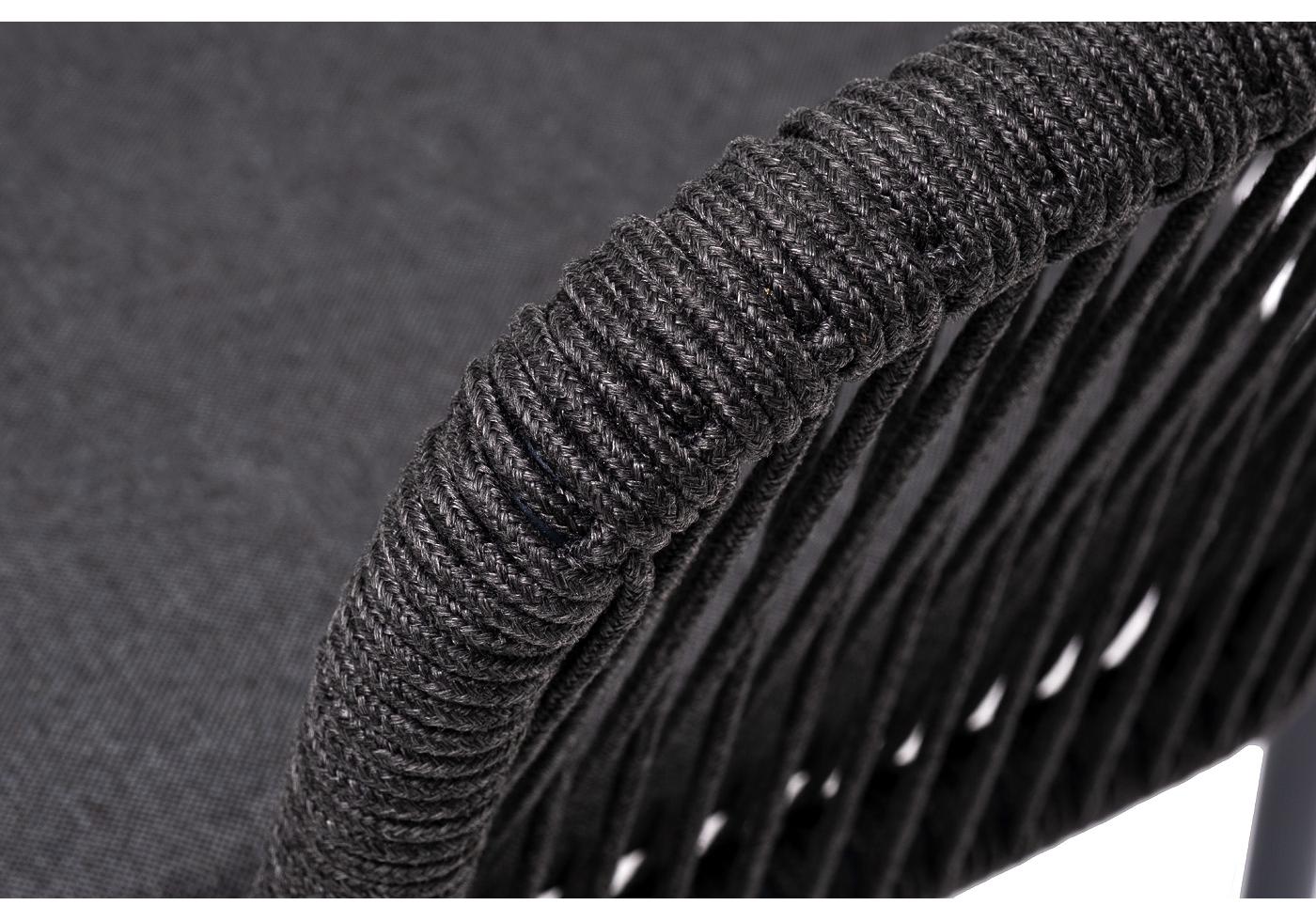 "Марсель" стул плетеный из роупа, каркас алюминий темно-серый (RAL7024) муар, роуп темно-серый круглый, ткань темно-серая 027