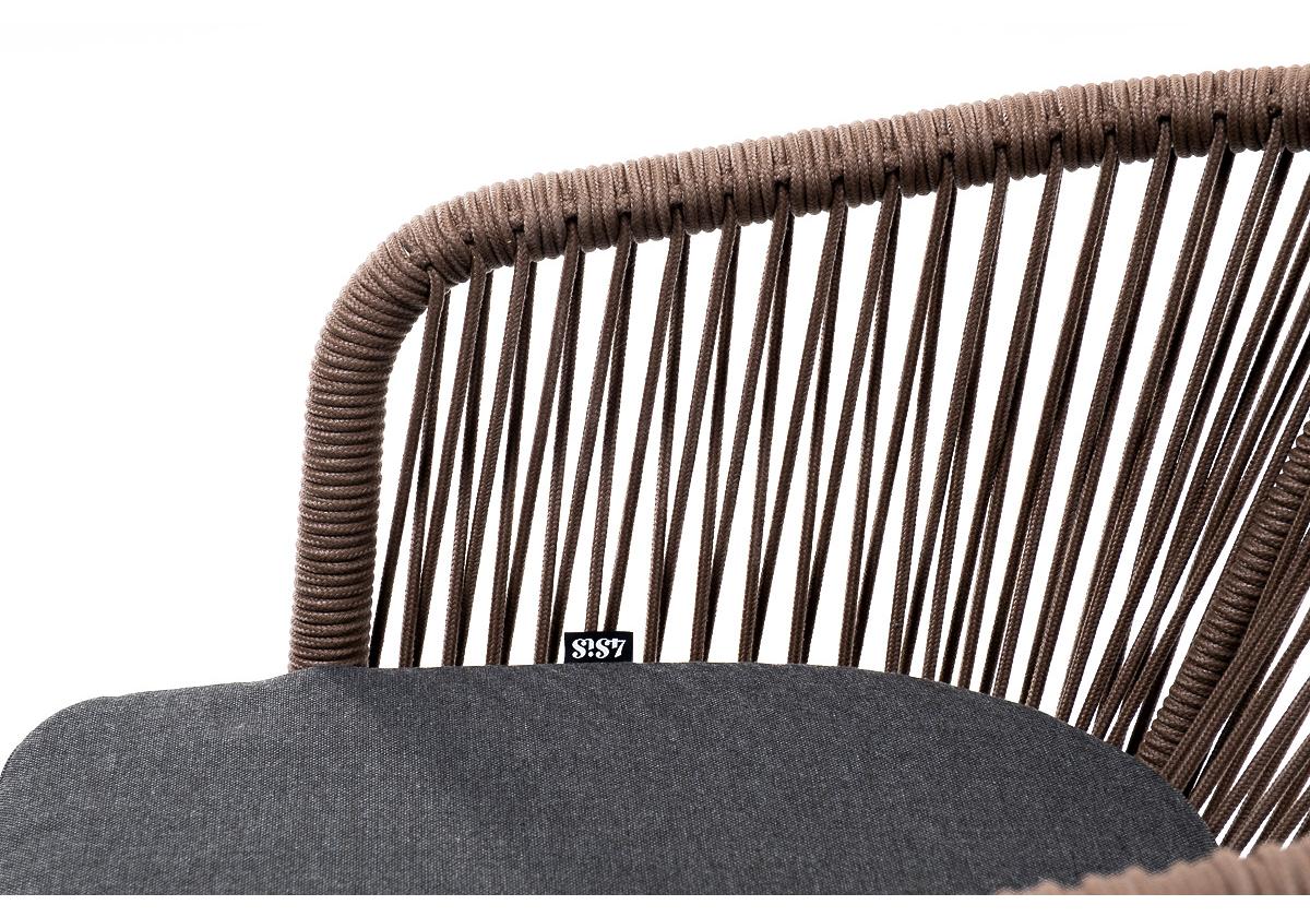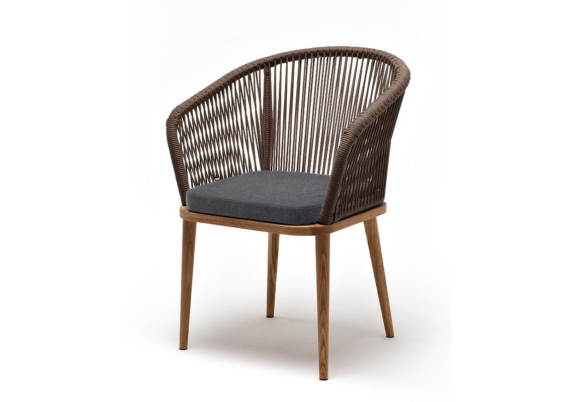 "Марсель" стул плетеный из роупа, основание дуб, роуп коричневый круглый, ткань темно-серая 027