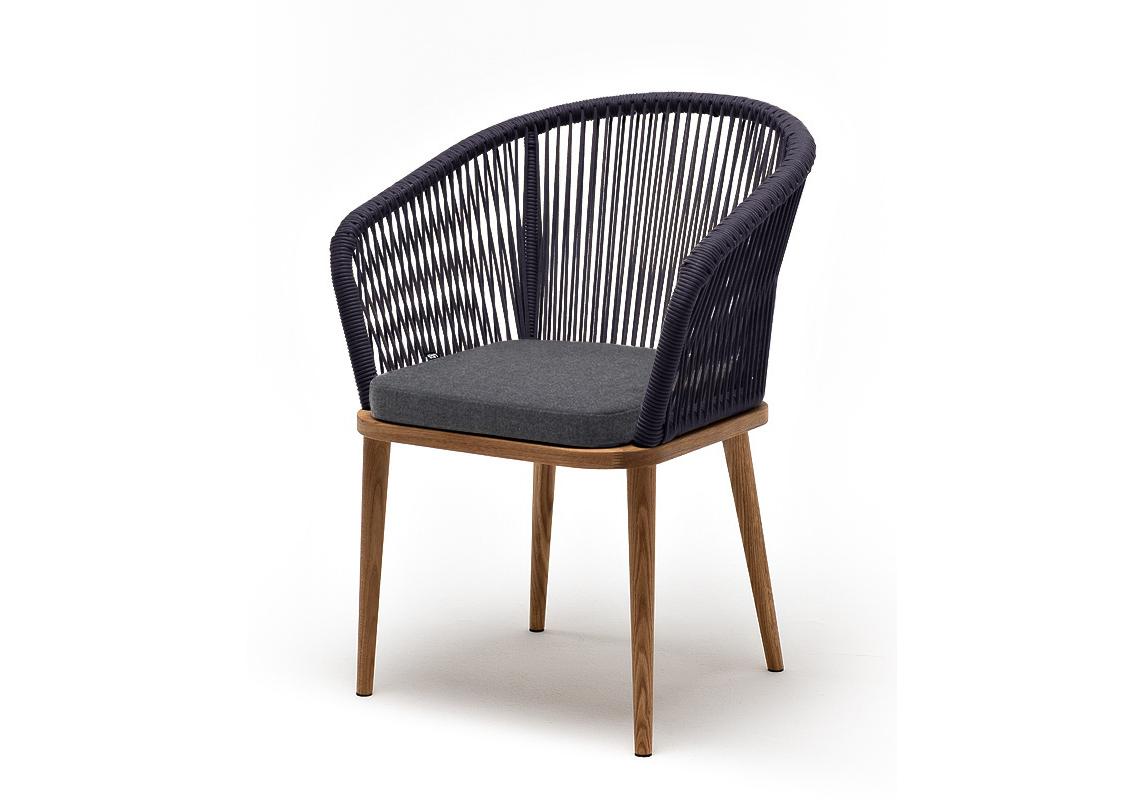 "Марсель" стул плетеный из роупа, основание дуб, роуп темно-серый круглый, ткань темно-серая 027