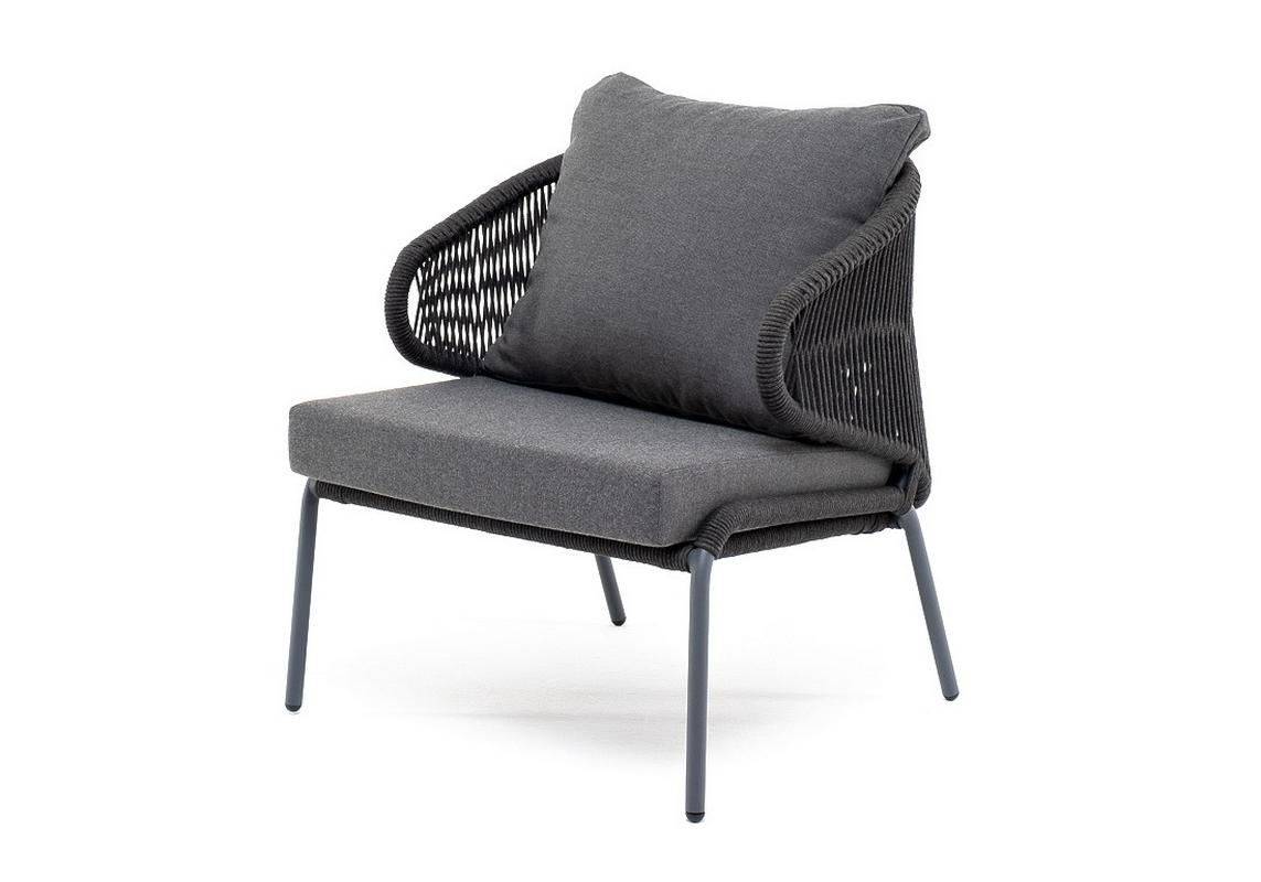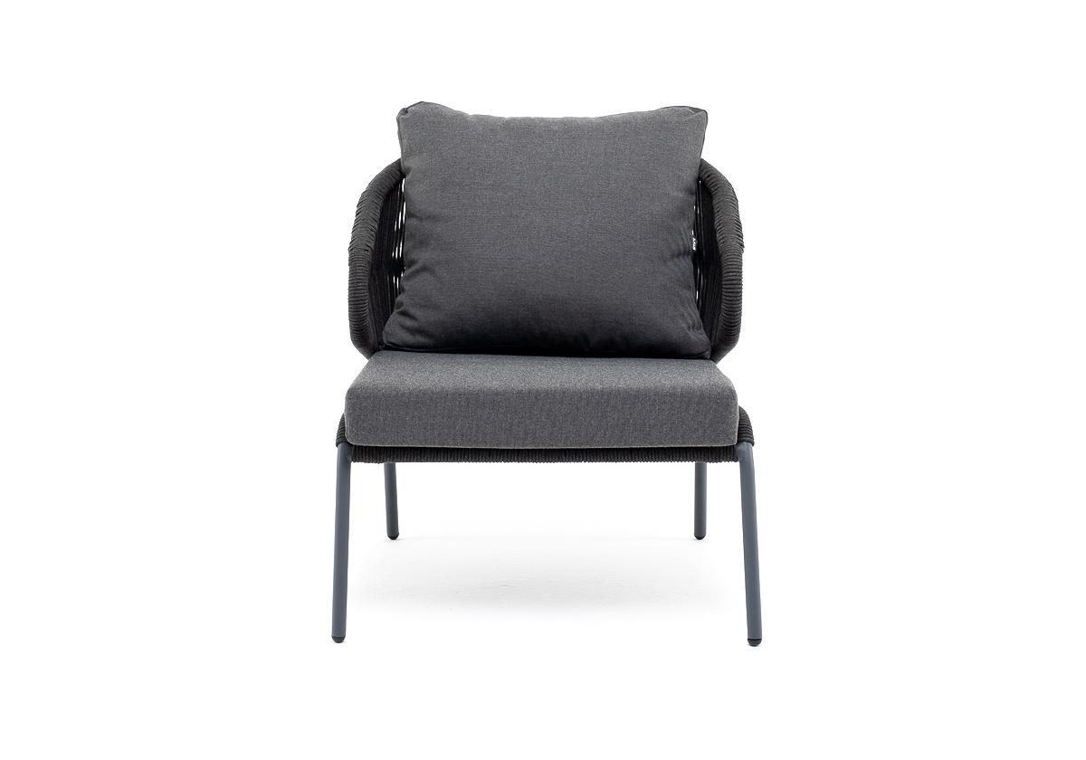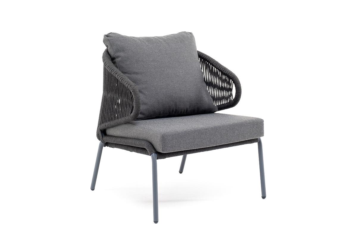"Милан" кресло плетеное из роупа, каркас алюминий темно-серый (RAL7024) муар, роуп темно-серый круглый, ткань темно-серая 027